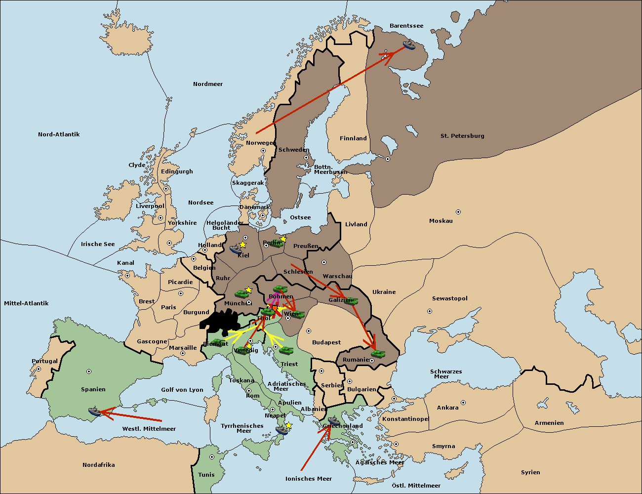 • Die Flotte in St. Petersburg (Nordküste) move nach Norwegen.