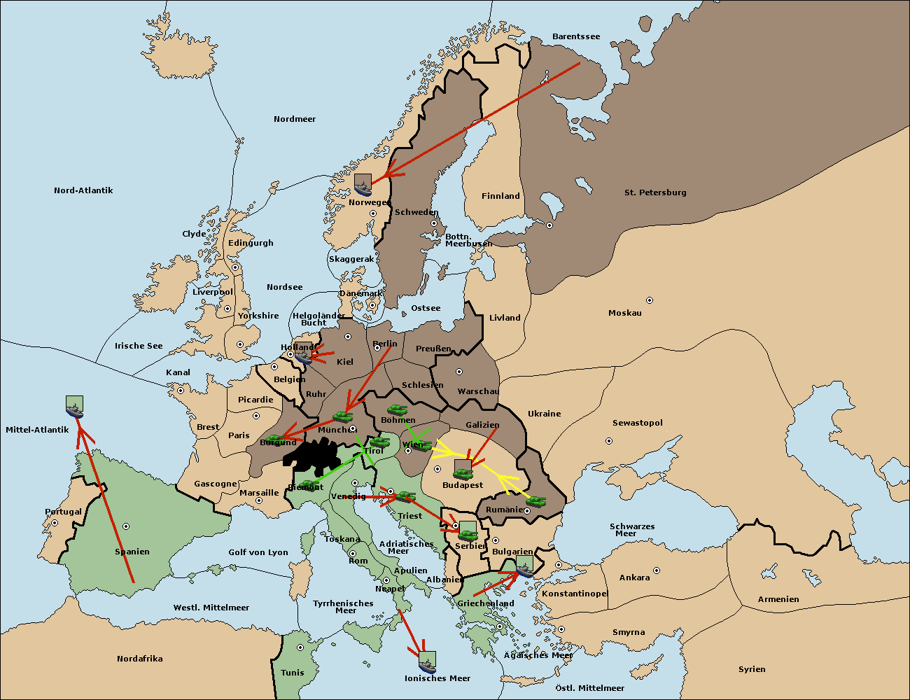 • Die Armee in Wien support move nach Budapest von Galizien.