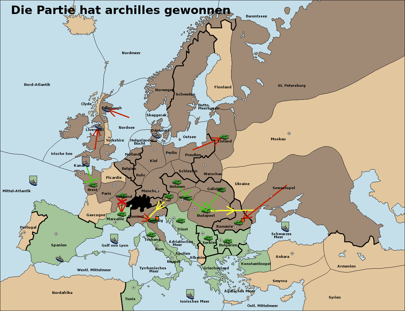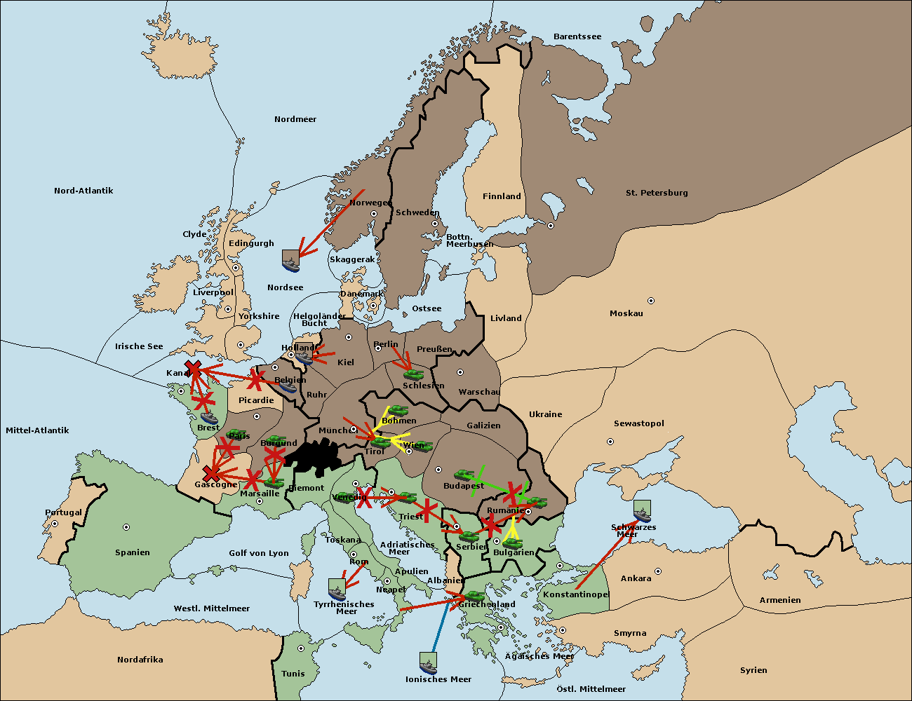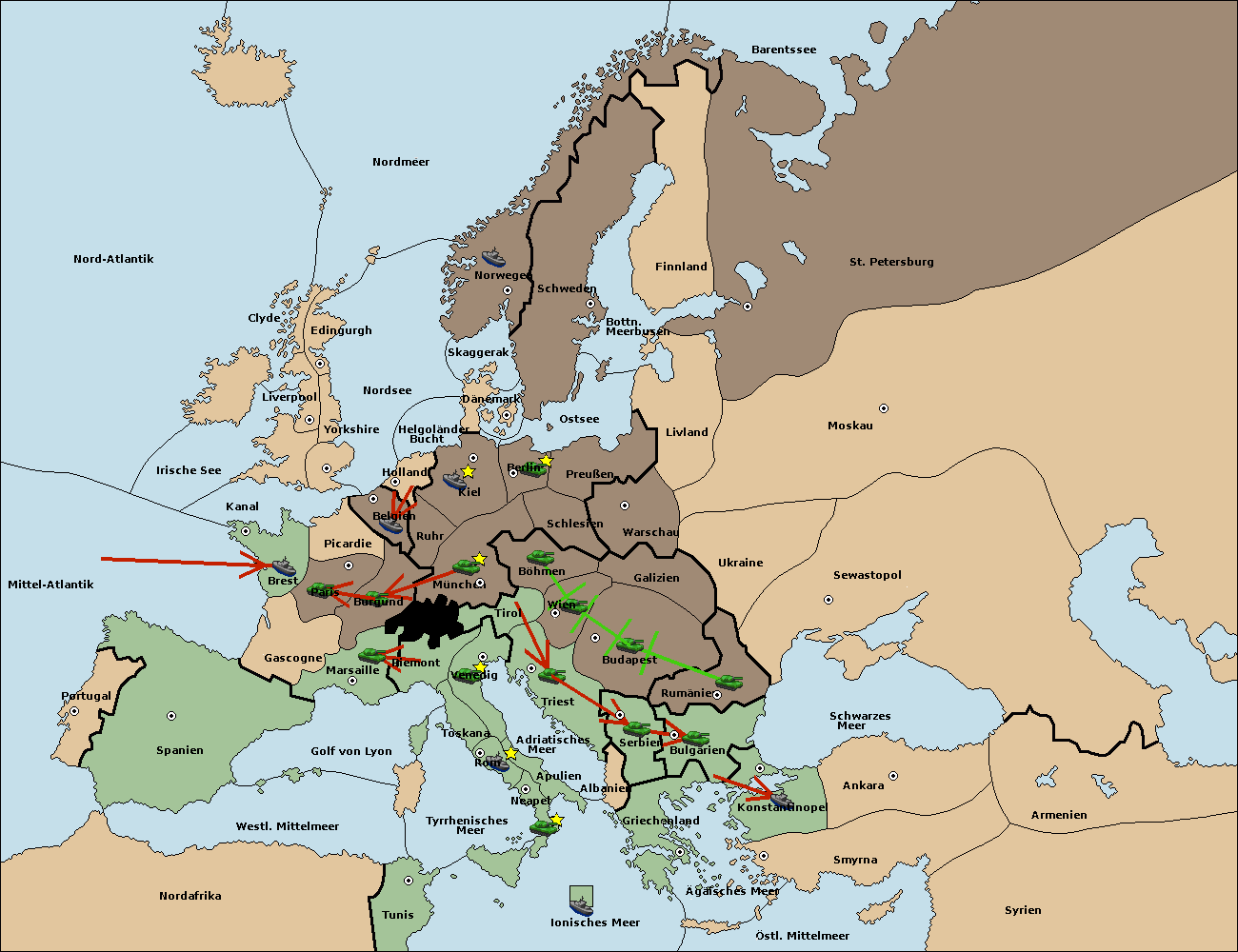 • Die Flotte in Bulgarien (Südküste) move nach Konstantinopel.