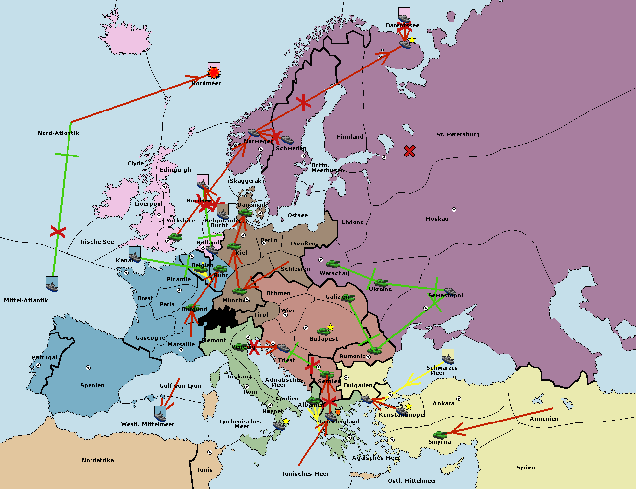 • Die Flotte in St. Petersburg (Nordküste) move nach Barentssee.