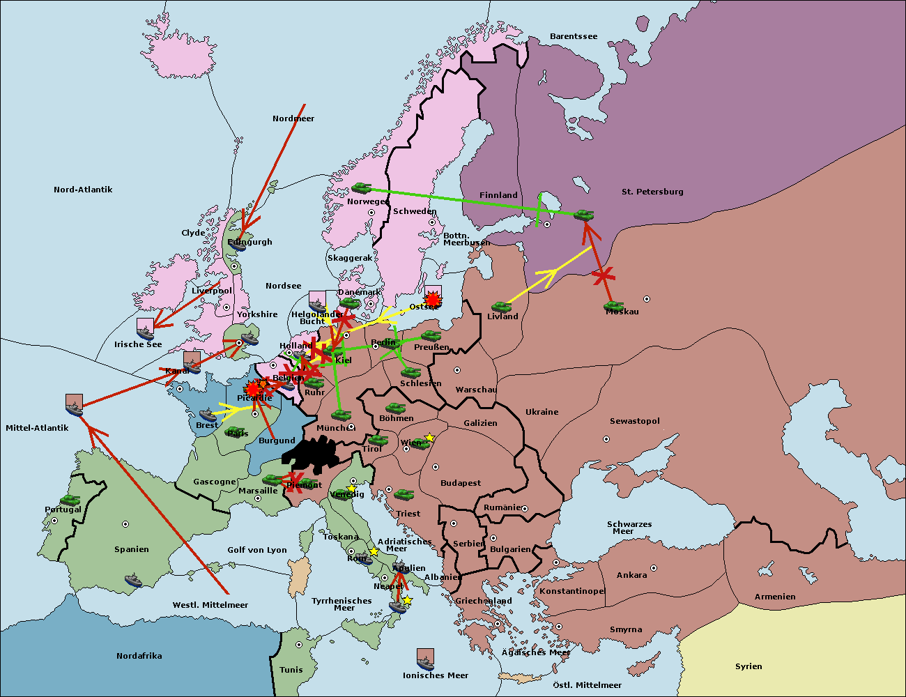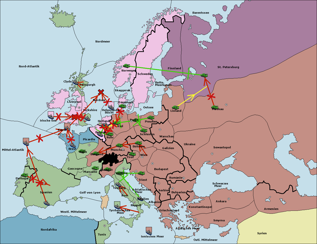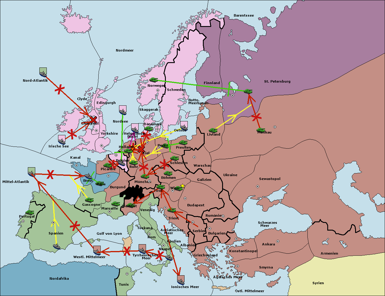 • Die Flotte in St. Petersburg (Nordküste) move nach Barentssee.