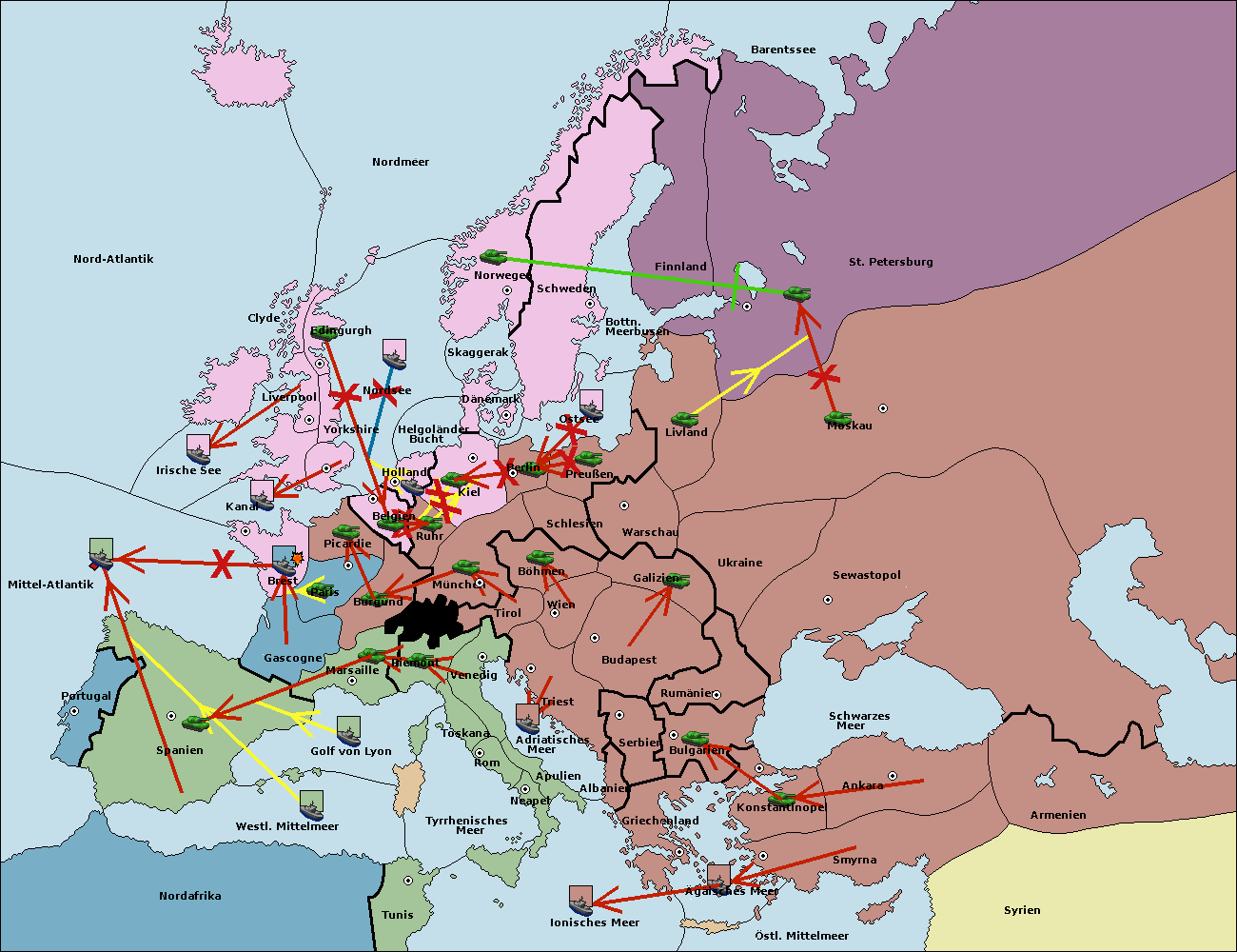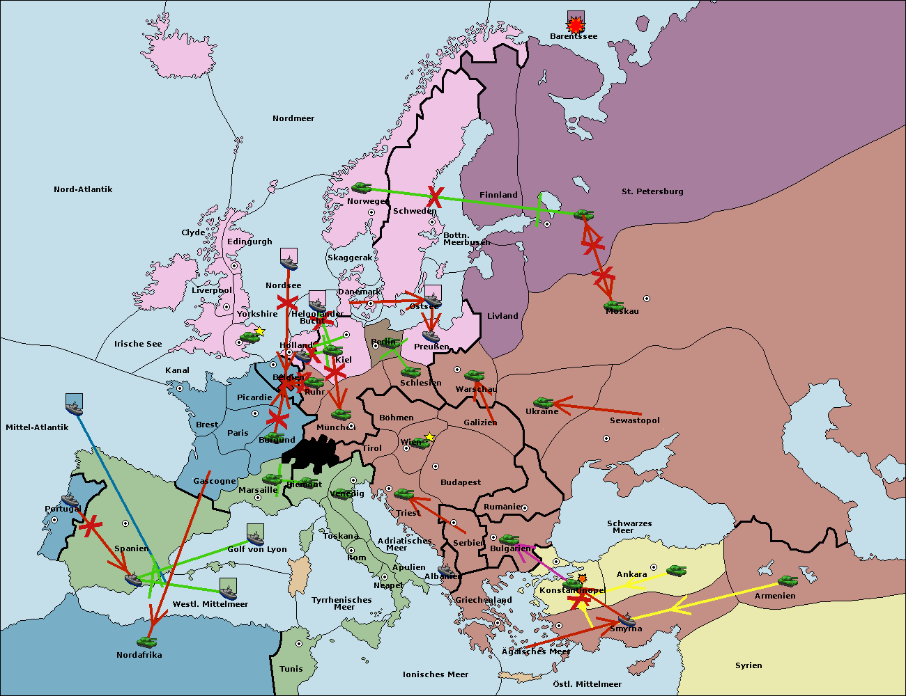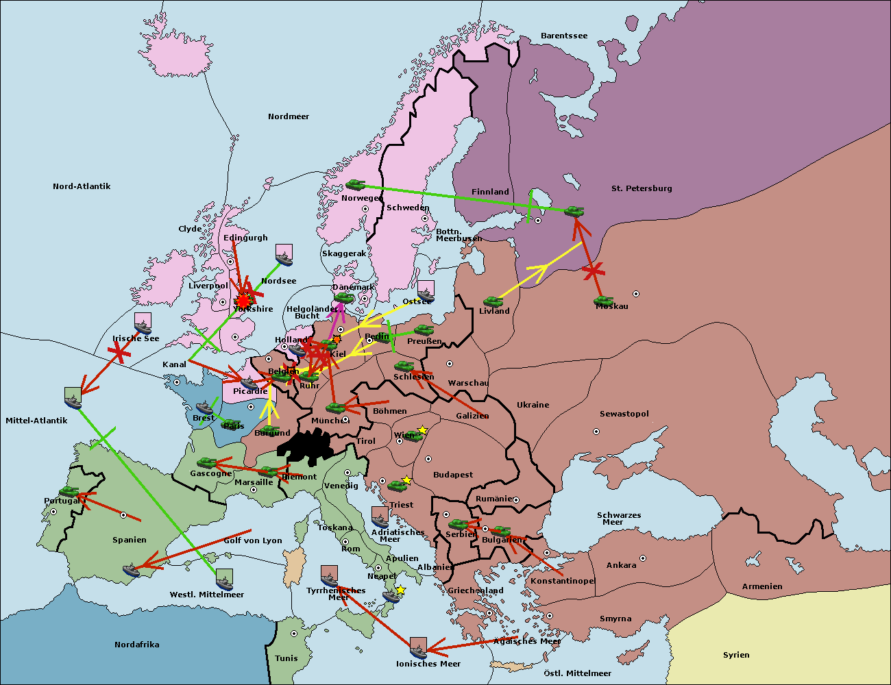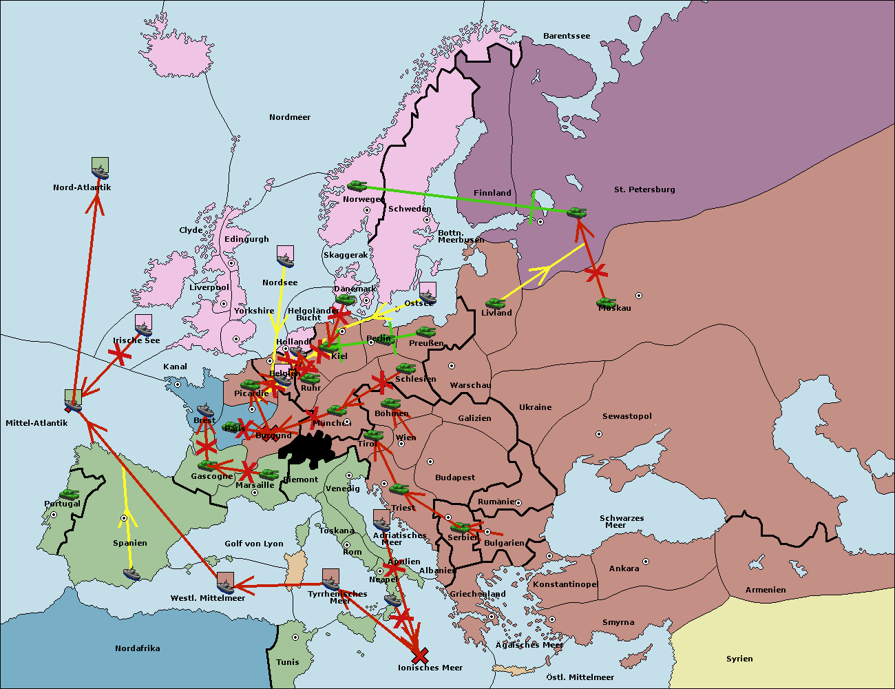 • Die Flotte in St. Petersburg (Nordküste) move nach Barentssee.
