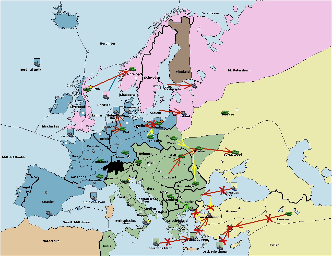 • Die Flotte in Bulgarien (Südküste) support move nach Konstantinopel von Smyrna.