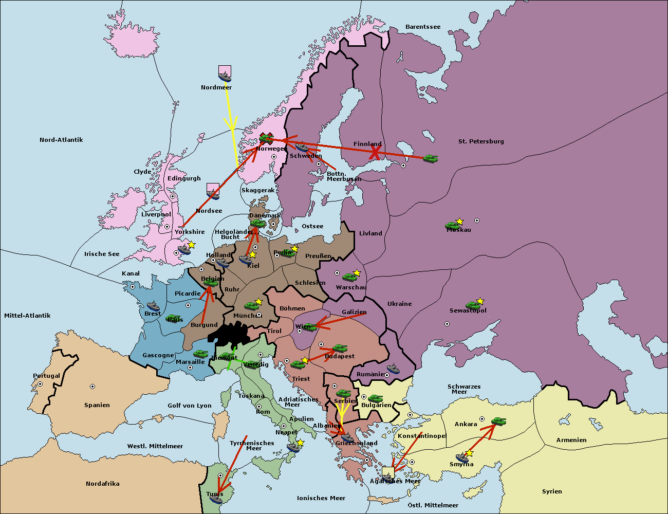• Die Armee in St. Petersburg move nach Norwegen. (gescheitert)