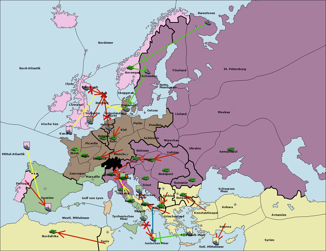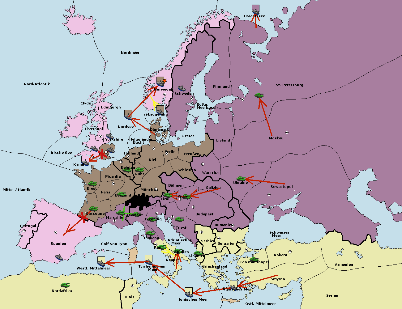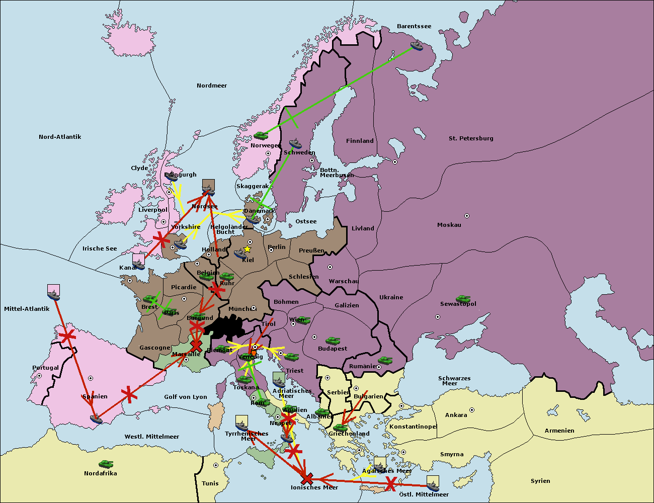 • Die Flotte in St. Petersburg (Nordküste) move nach Barentssee.