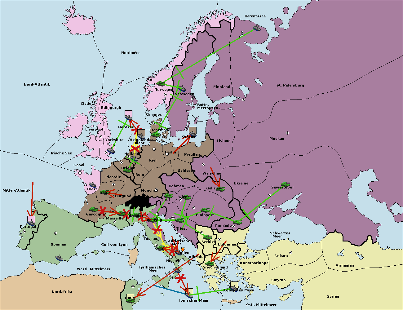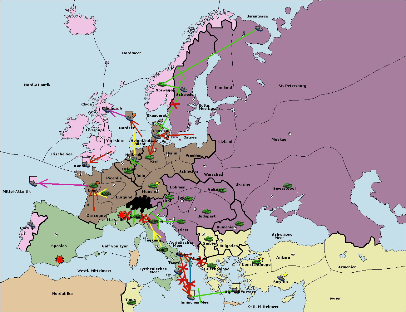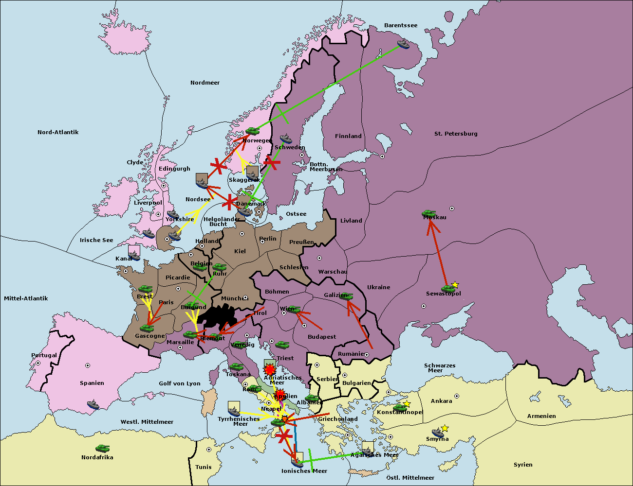 • Die Flotte in St. Petersburg (Nordküste) move nach Barentssee.