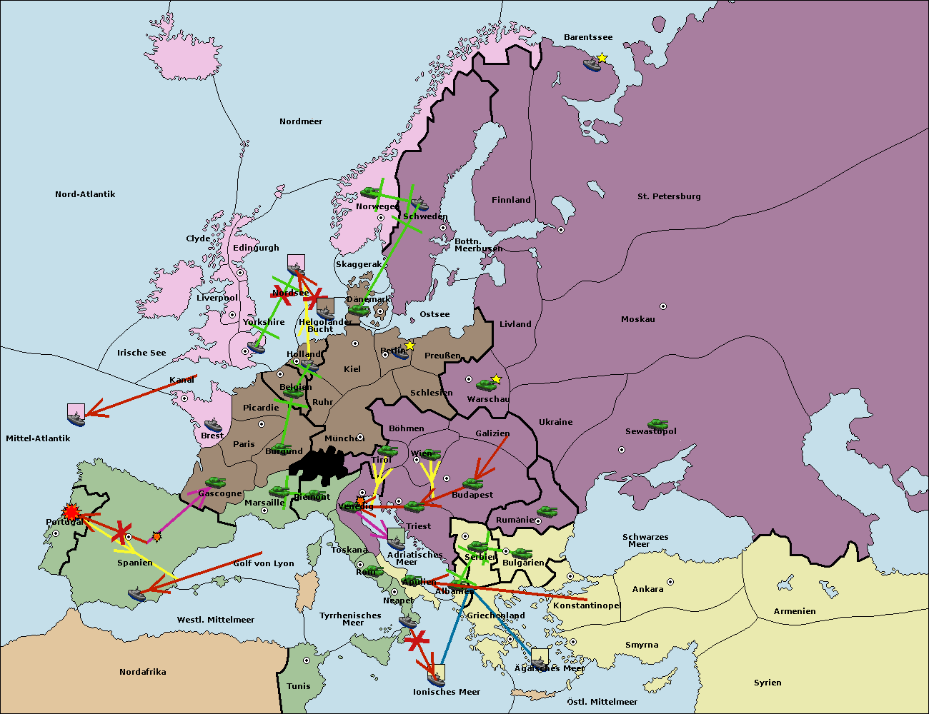 • Die Flotte in Spanien (Südküste) move nach Portugal.