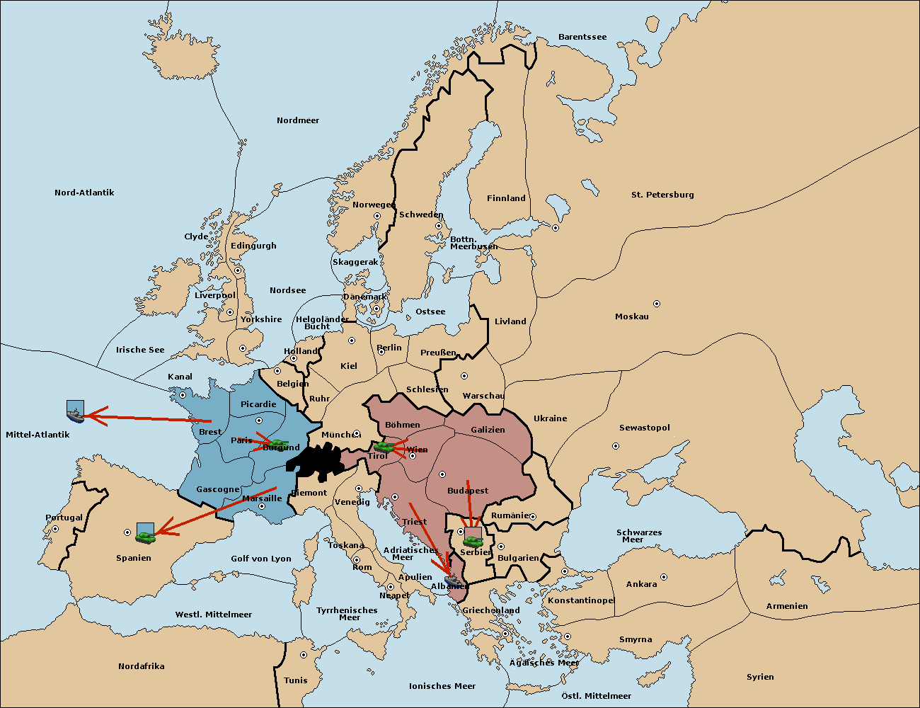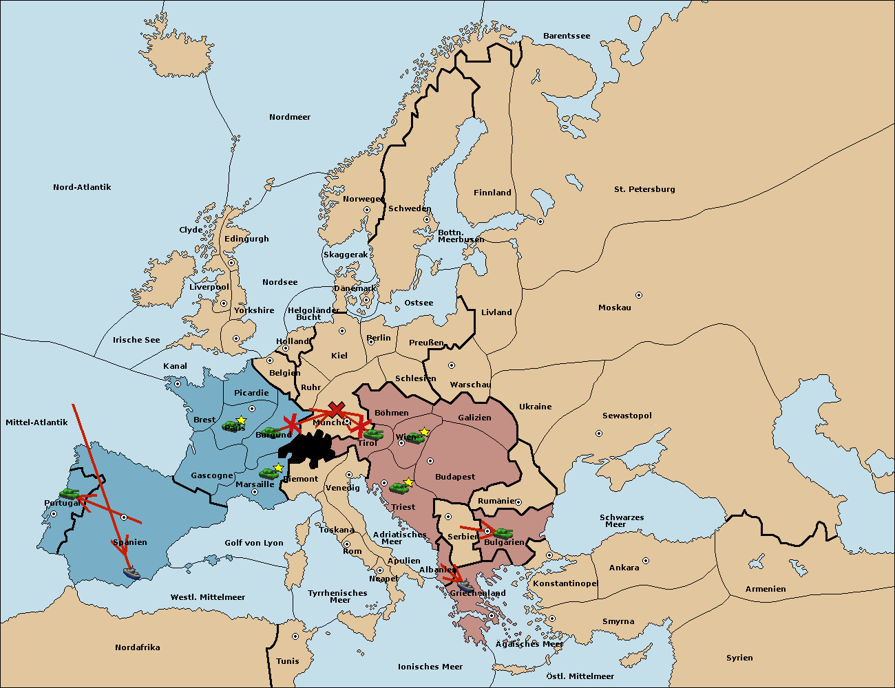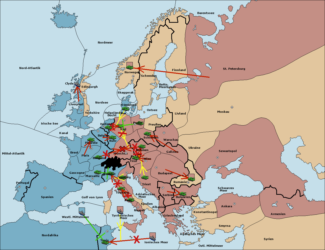 • Die Armee in Triest support move nach Tirol von Wien.