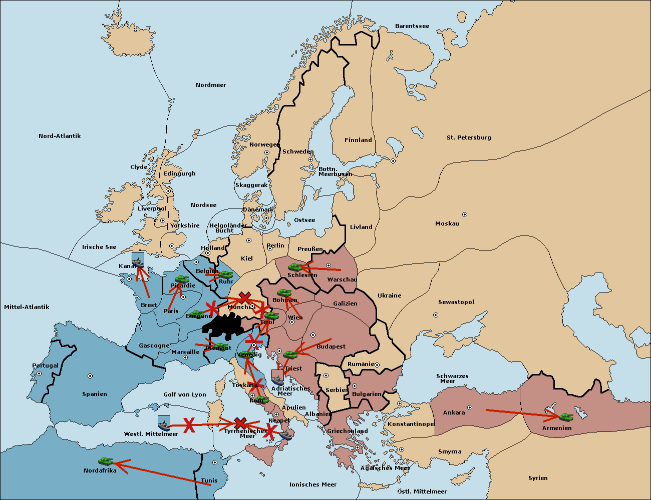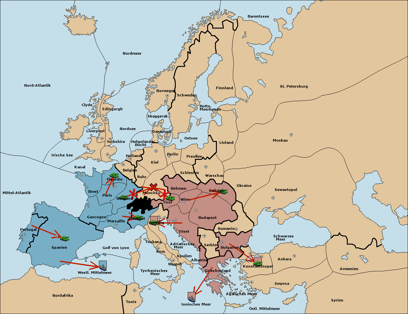 • Die Armee in Berlin support move nach München von Böhmen.