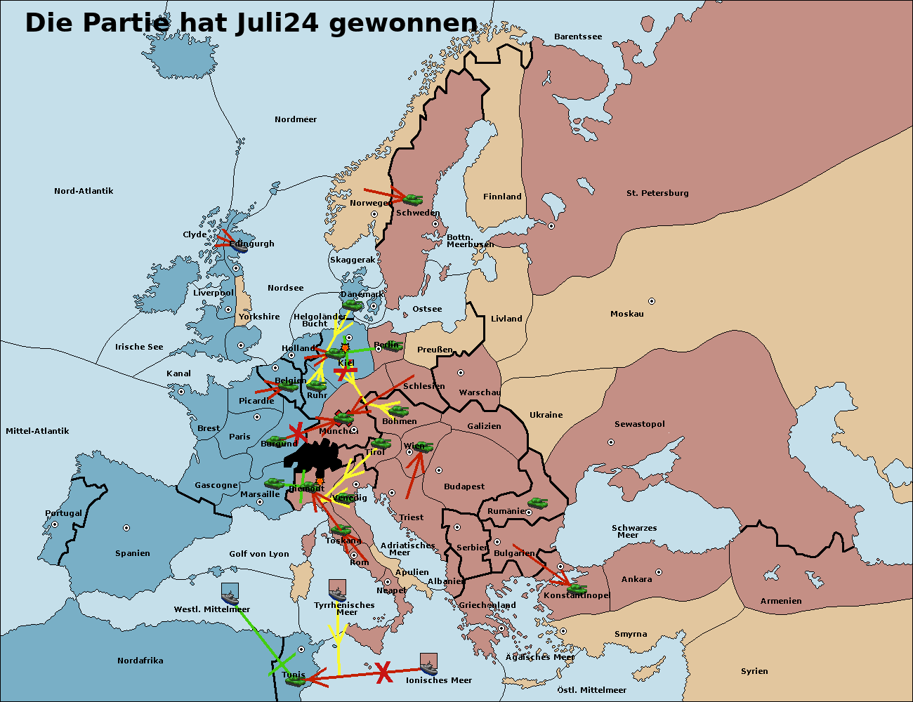 • Die Armee in Kiel support move nach München von Burgund.