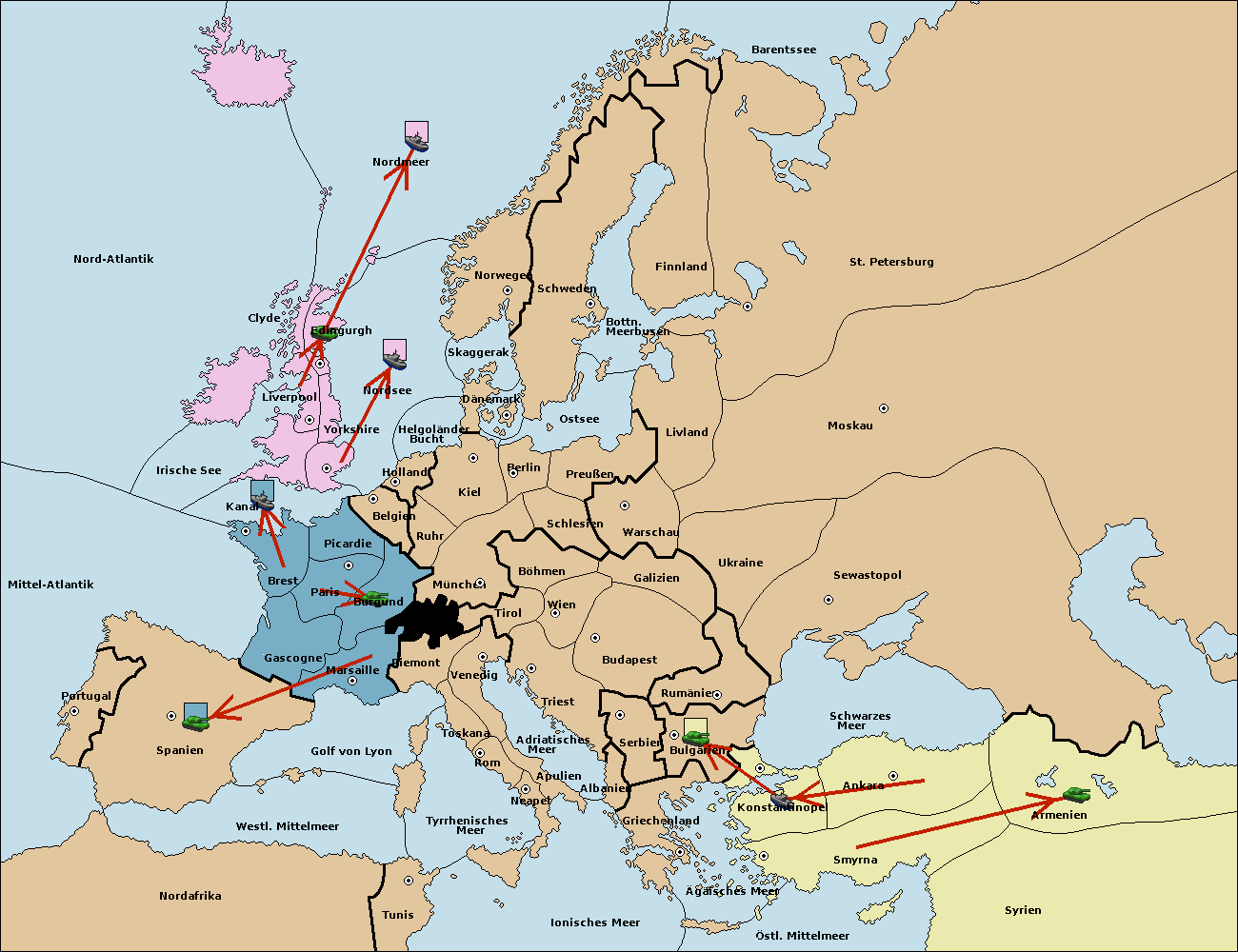 • Die Armee in Burgund support move nach Belgien von Konstantinopel.