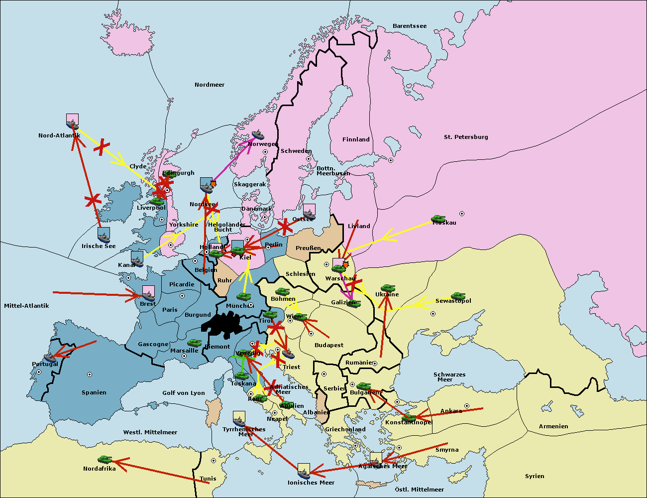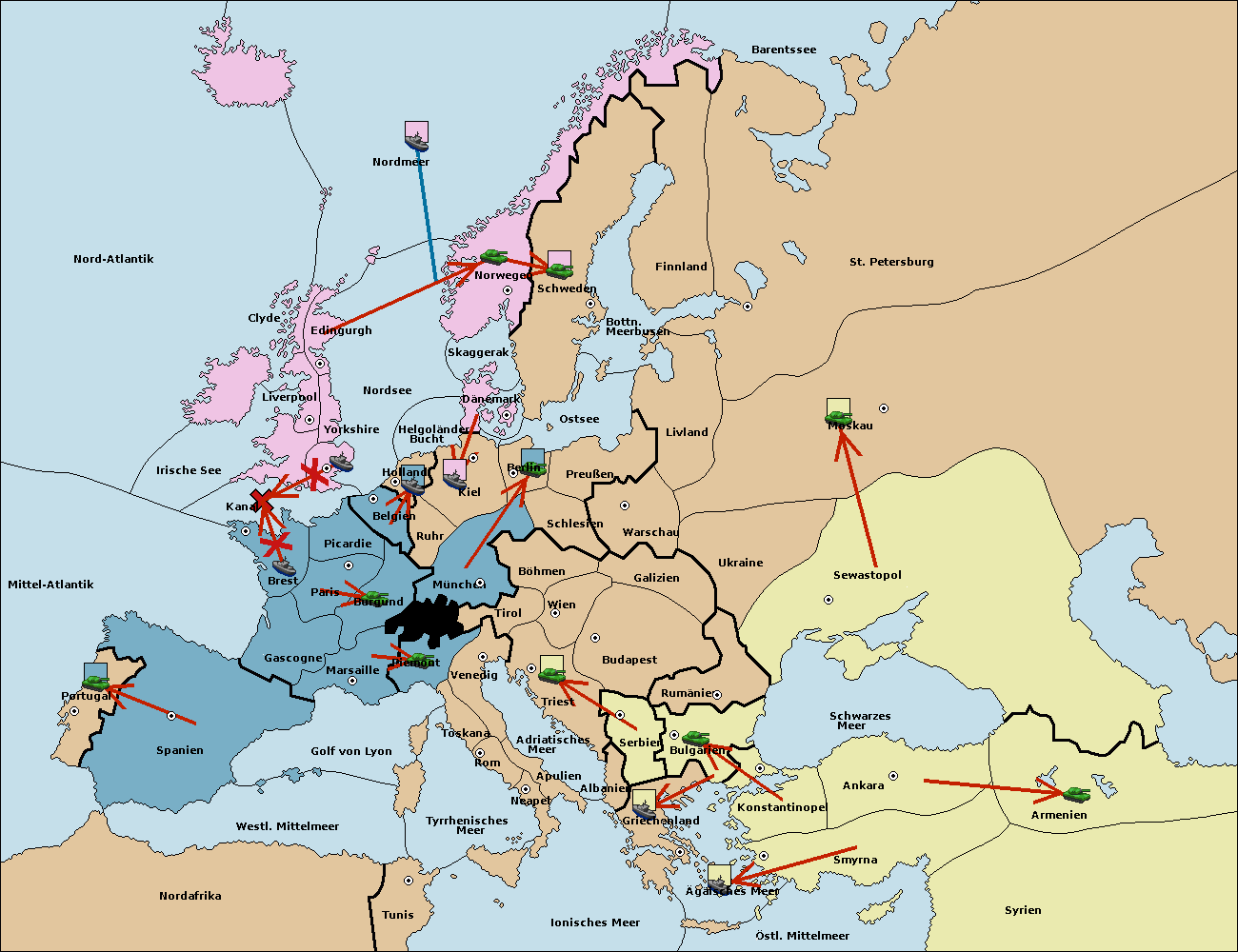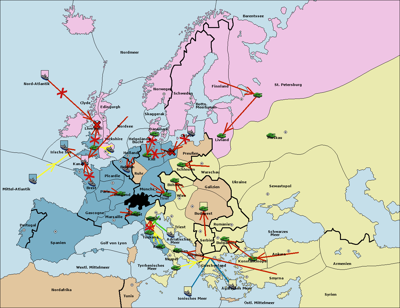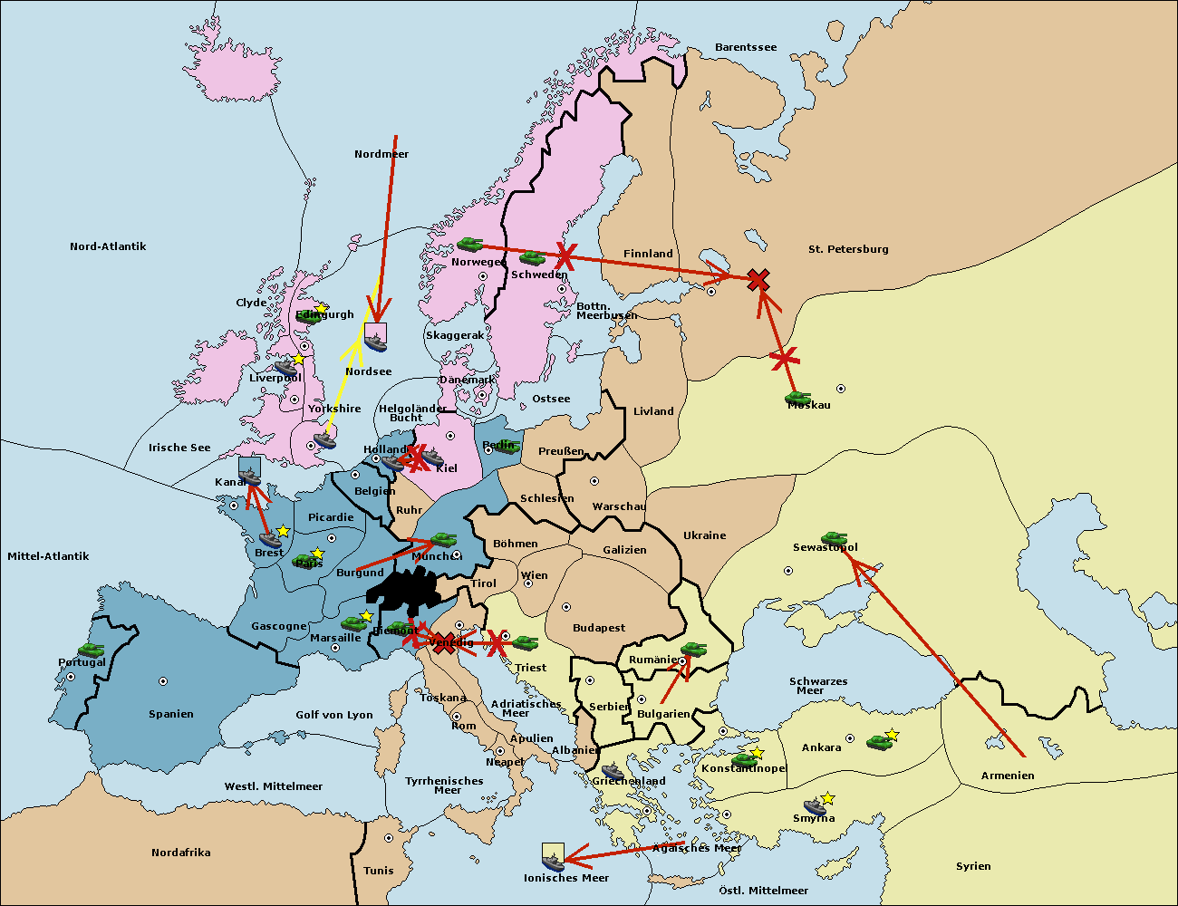 • Die Flotte in Bulgarien (Südküste) move nach Griechenland.