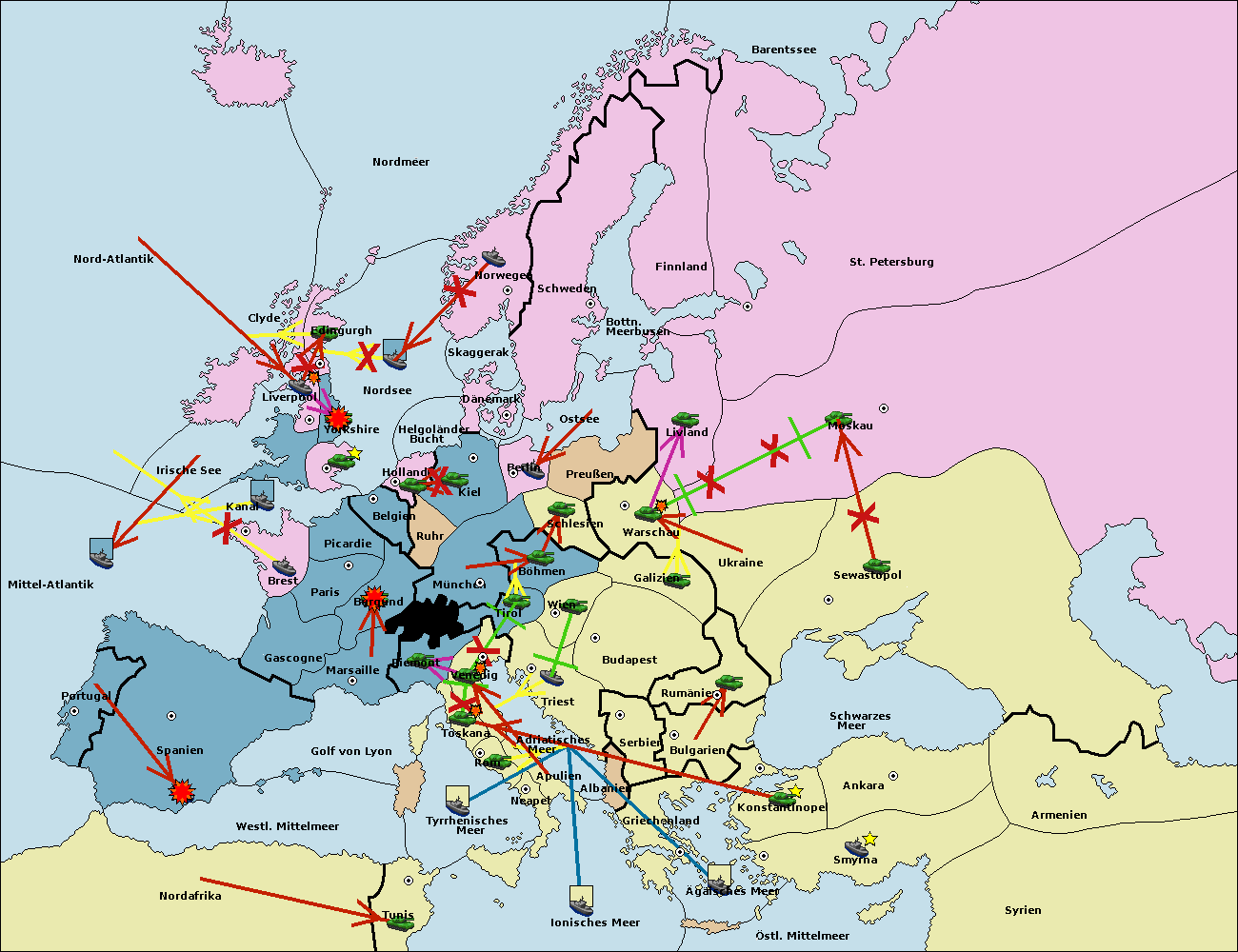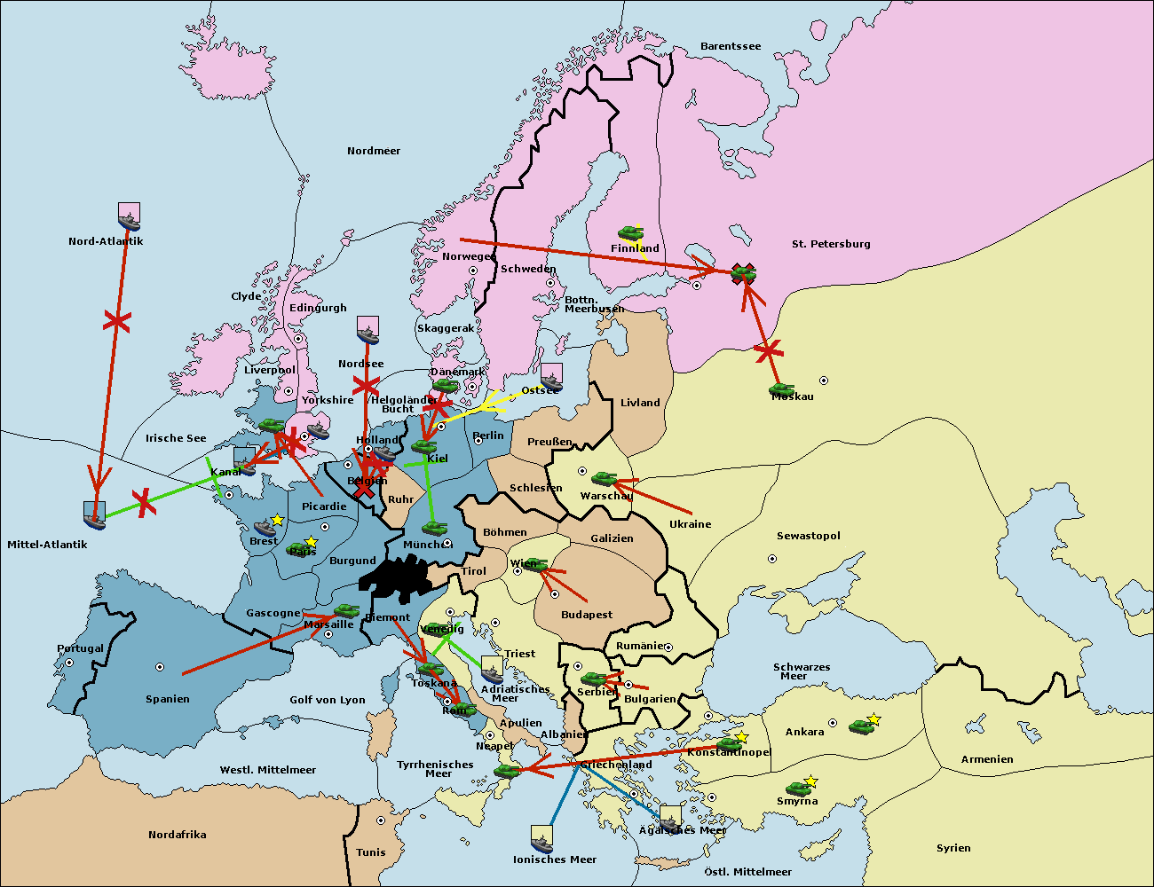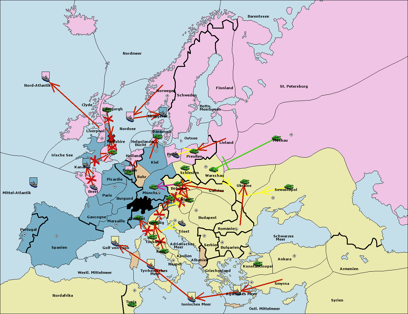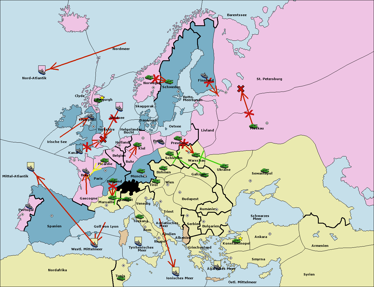• Die Flotte in Bulgarien (Südküste) move nach Griechenland.
