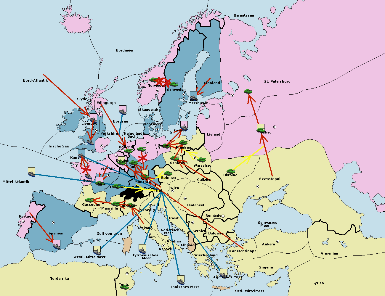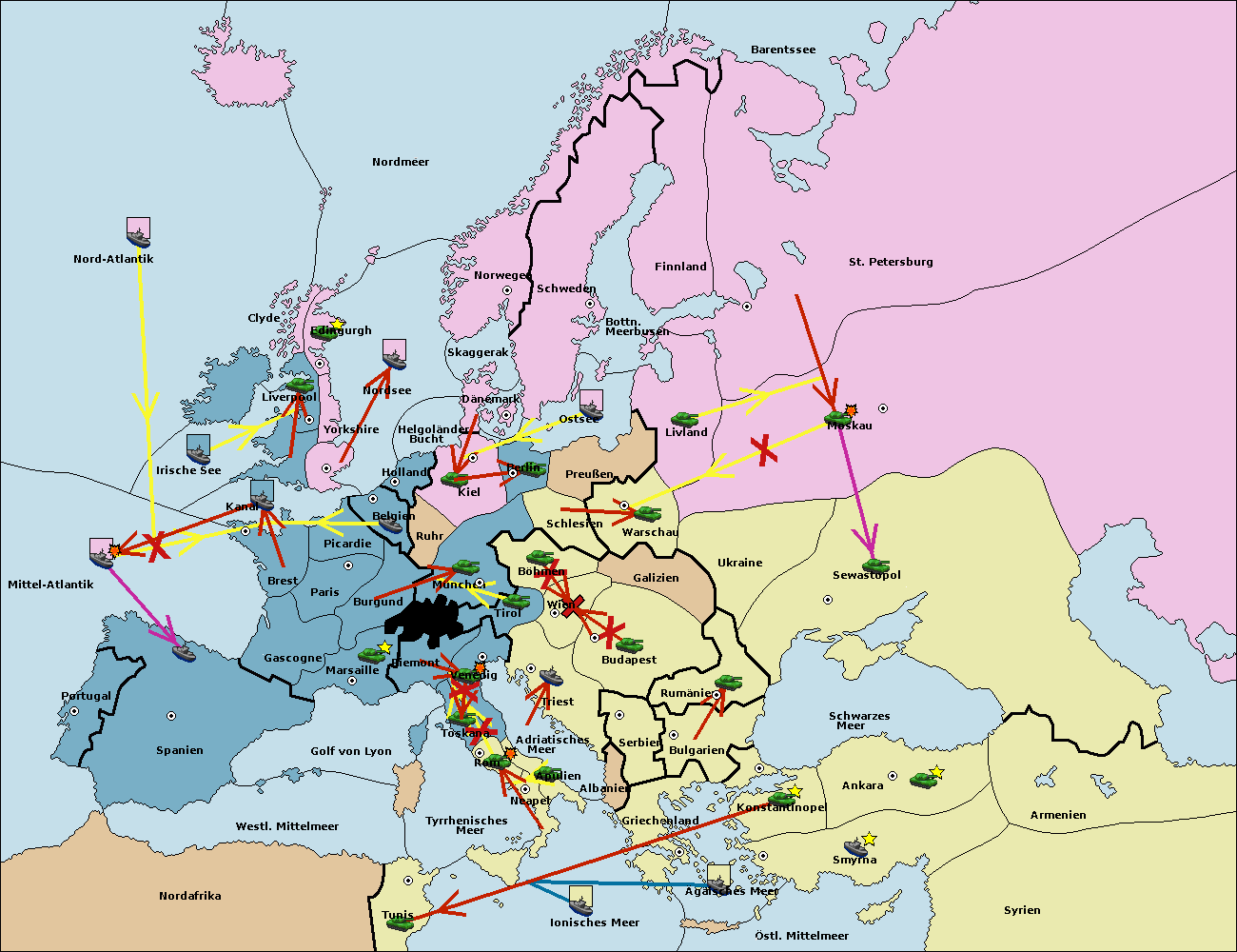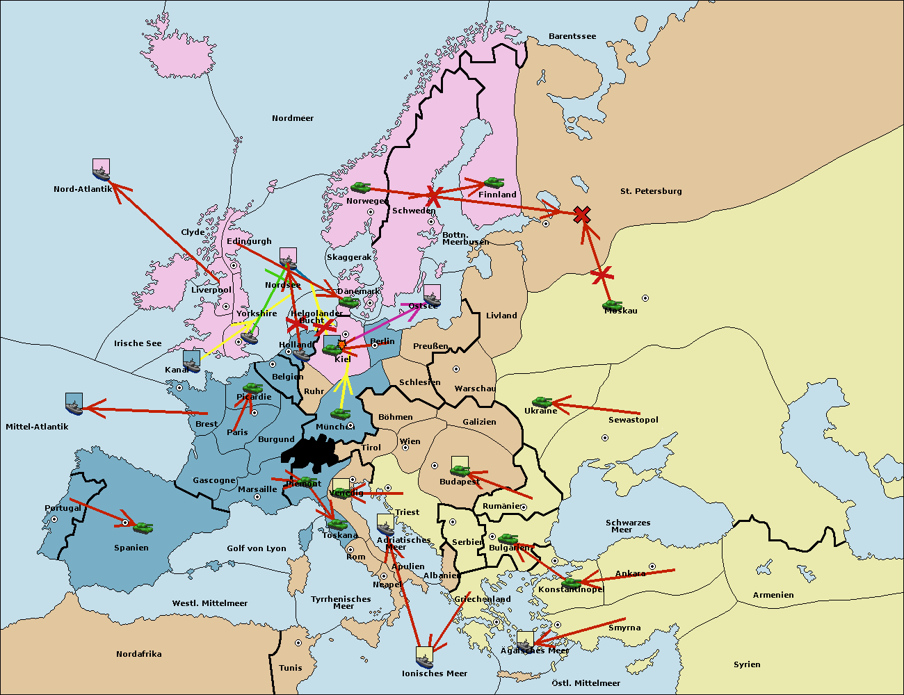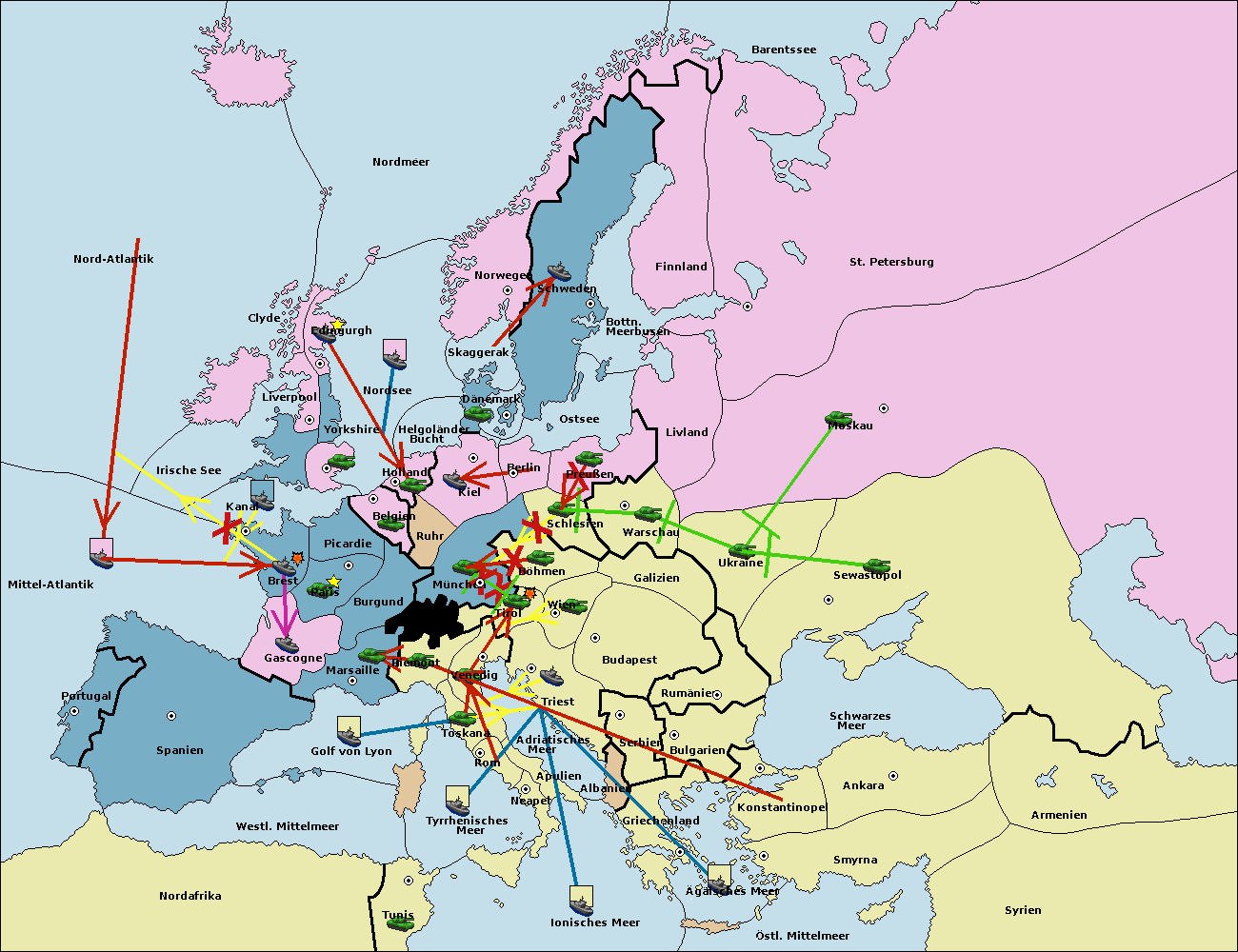 • Die Flotte in Bulgarien (Südküste) move nach Griechenland.