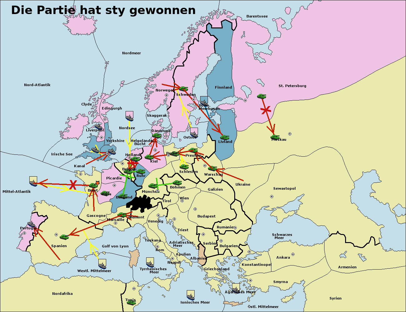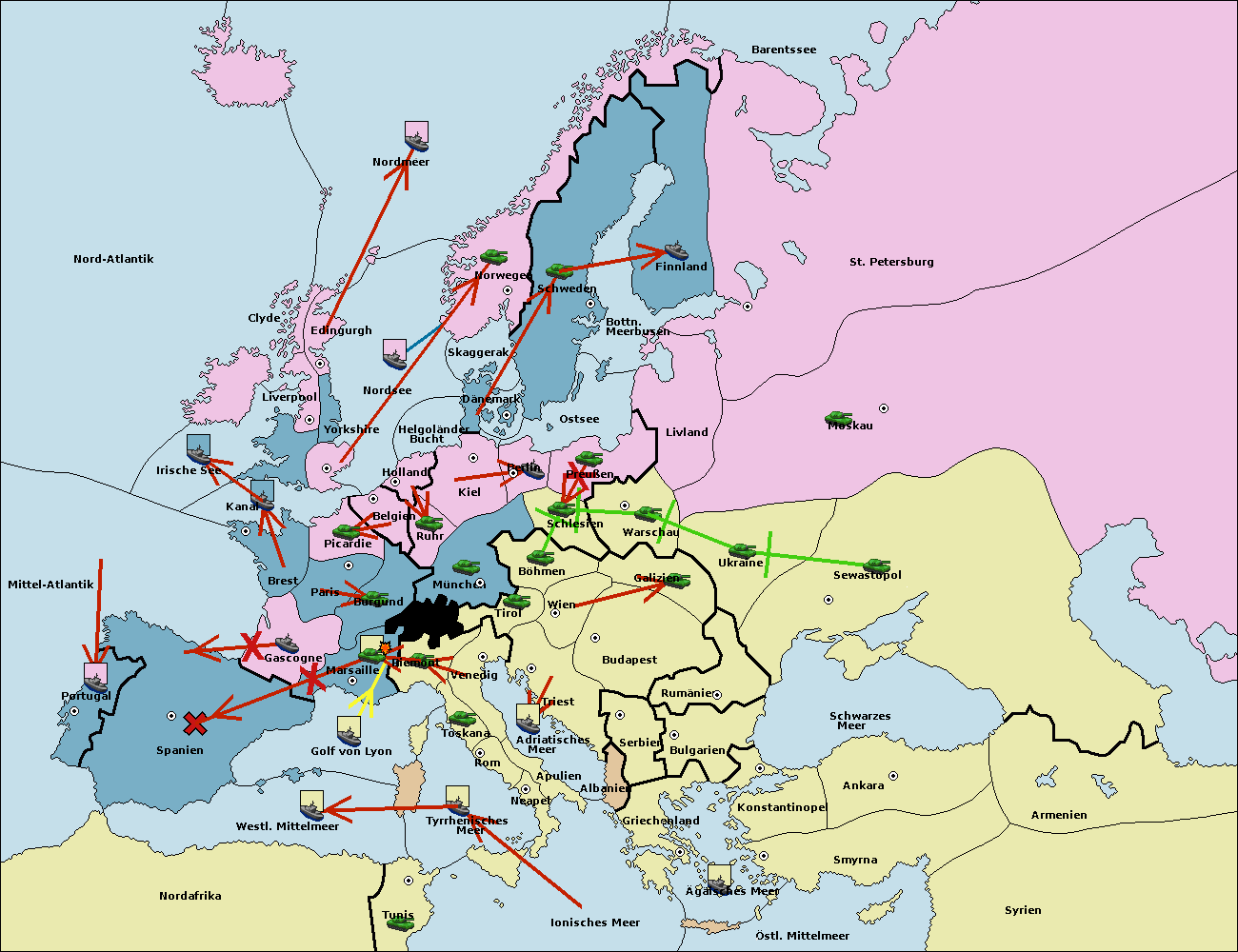 • Die Flotte in Spanien (Südküste) move nach Portugal.