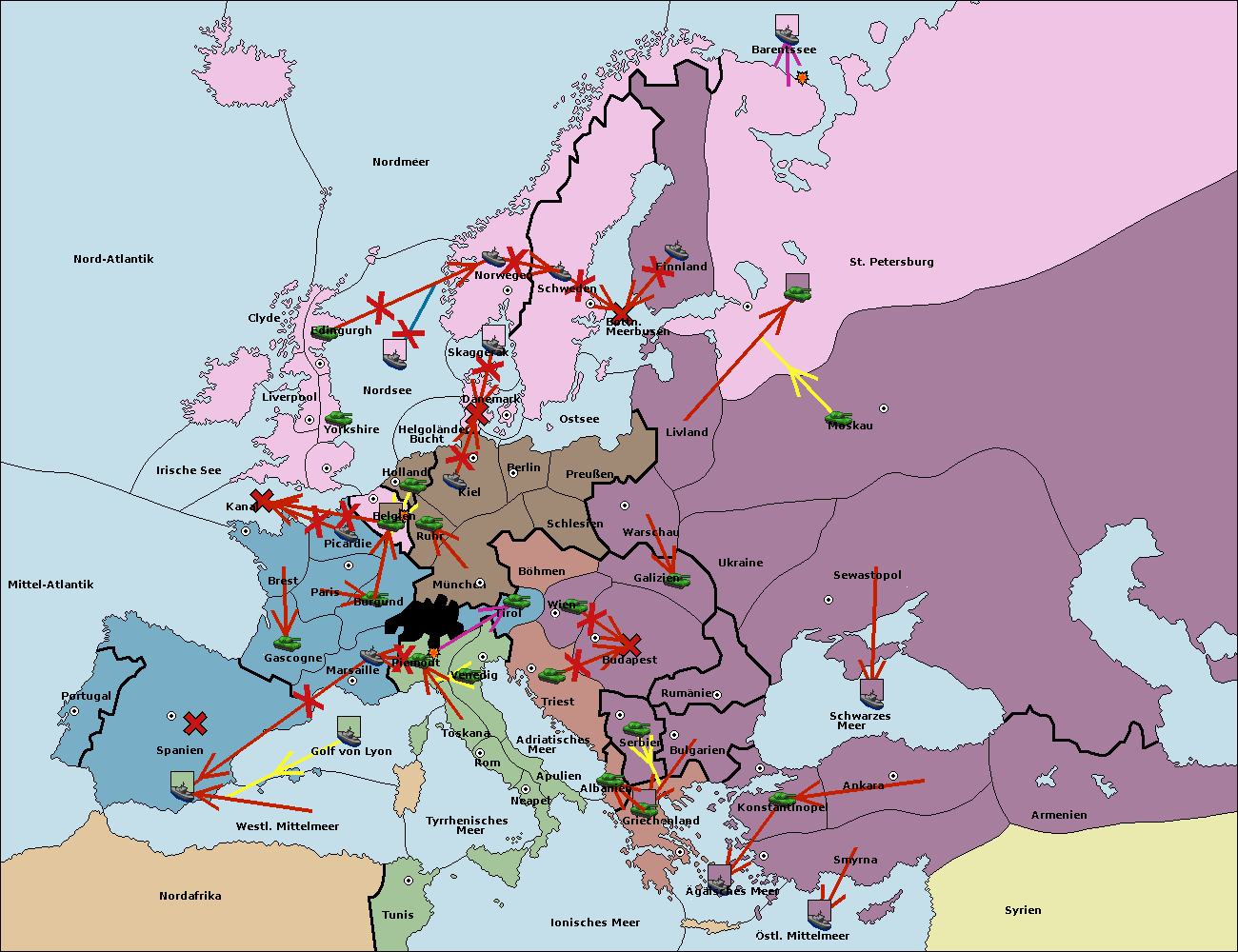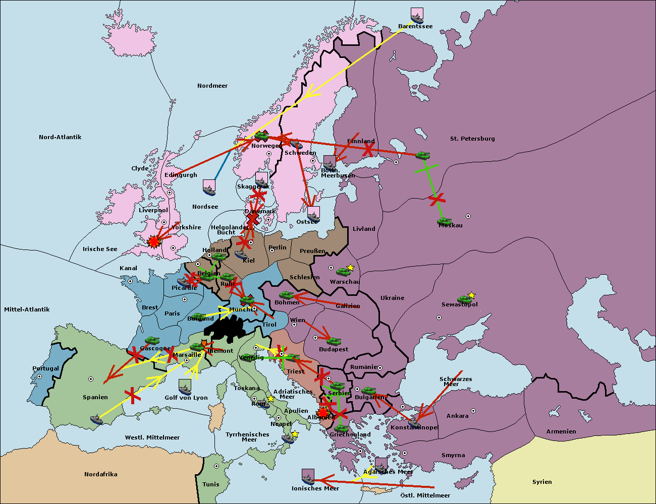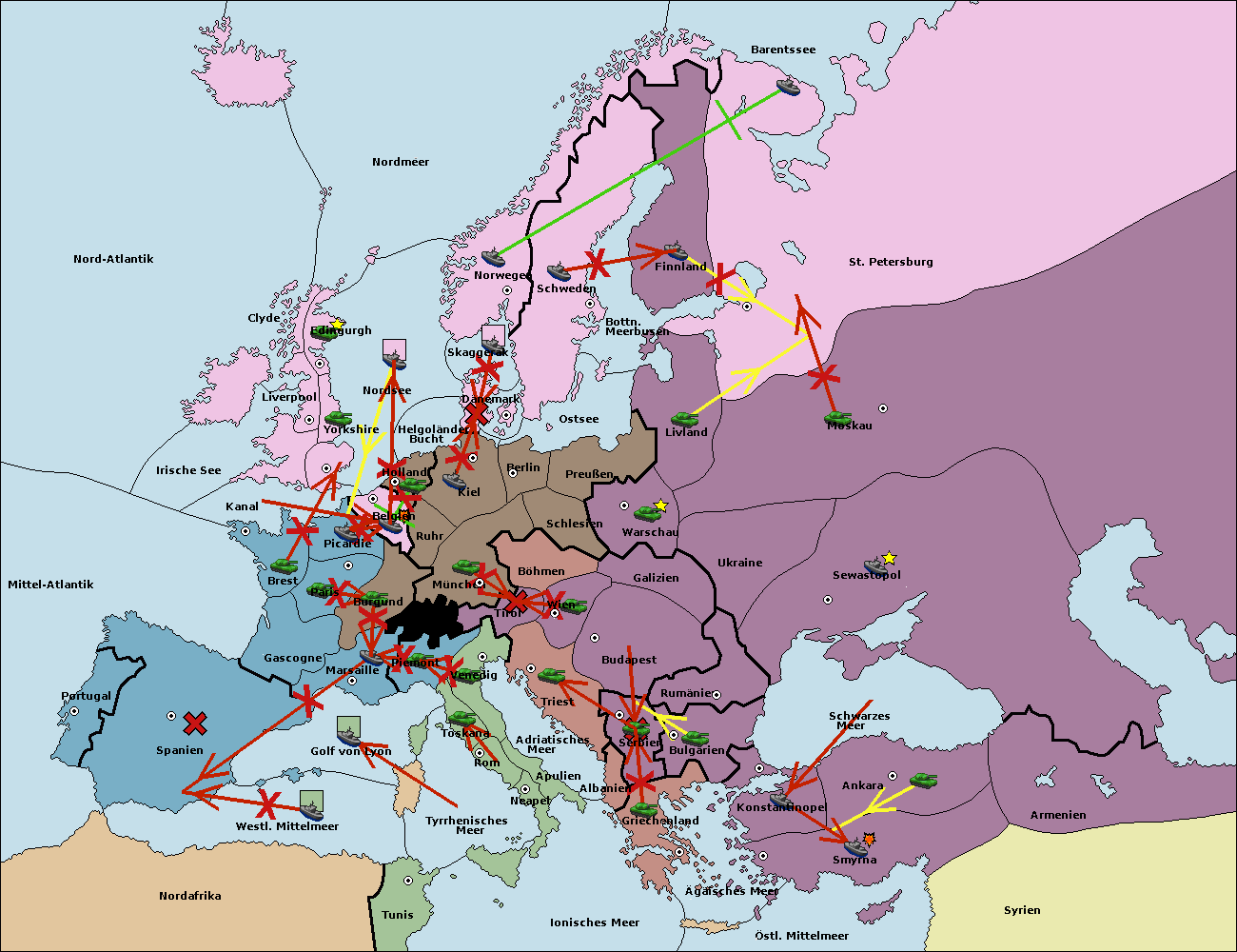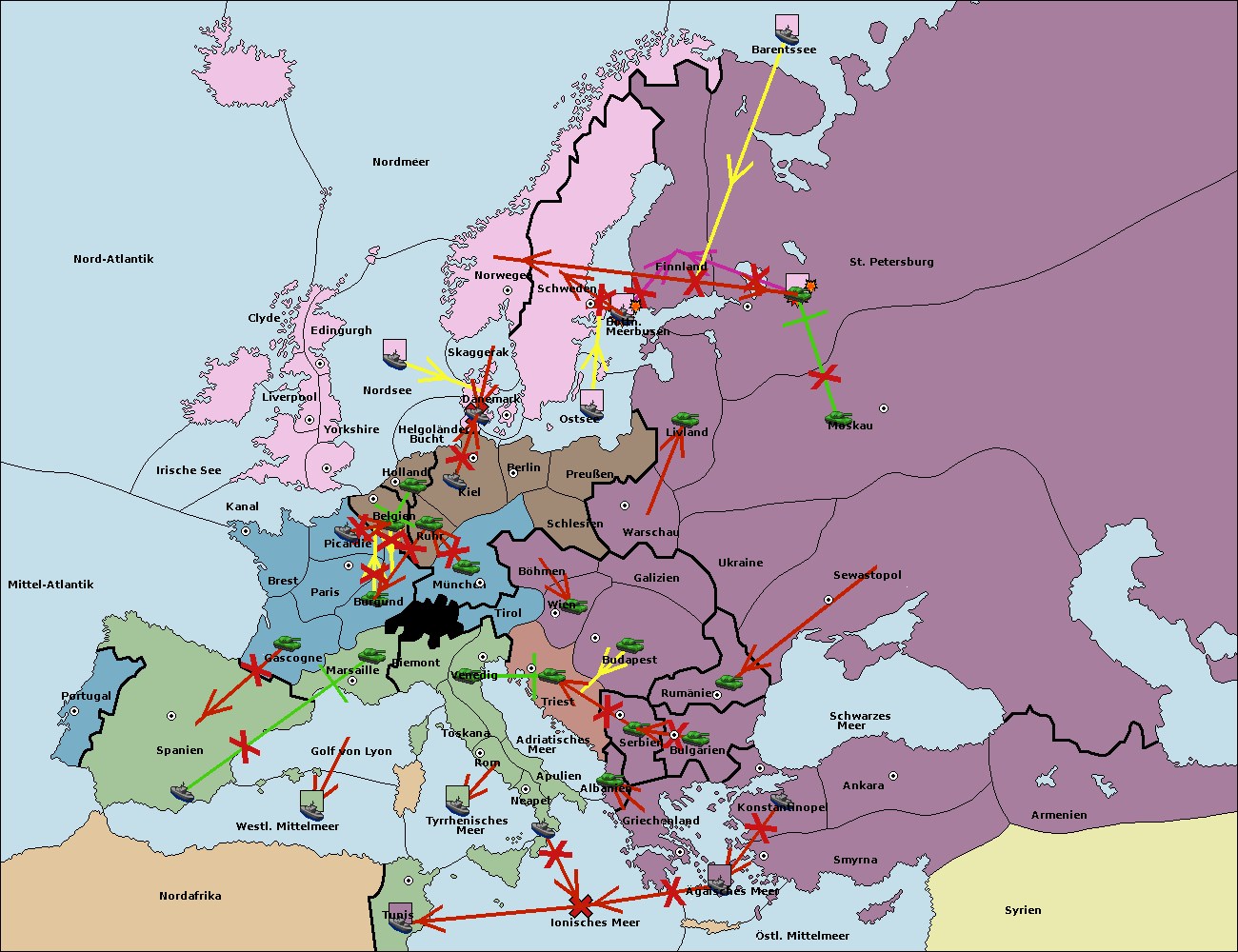 • Die Flotte in St. Petersburg (Nordküste) move nach Norwegen. (gescheitert)