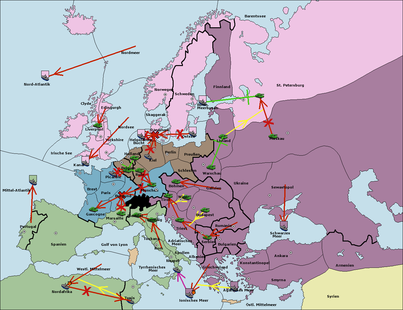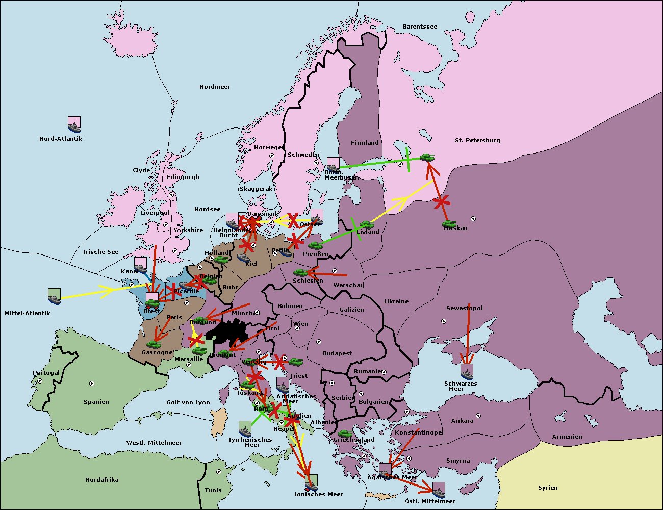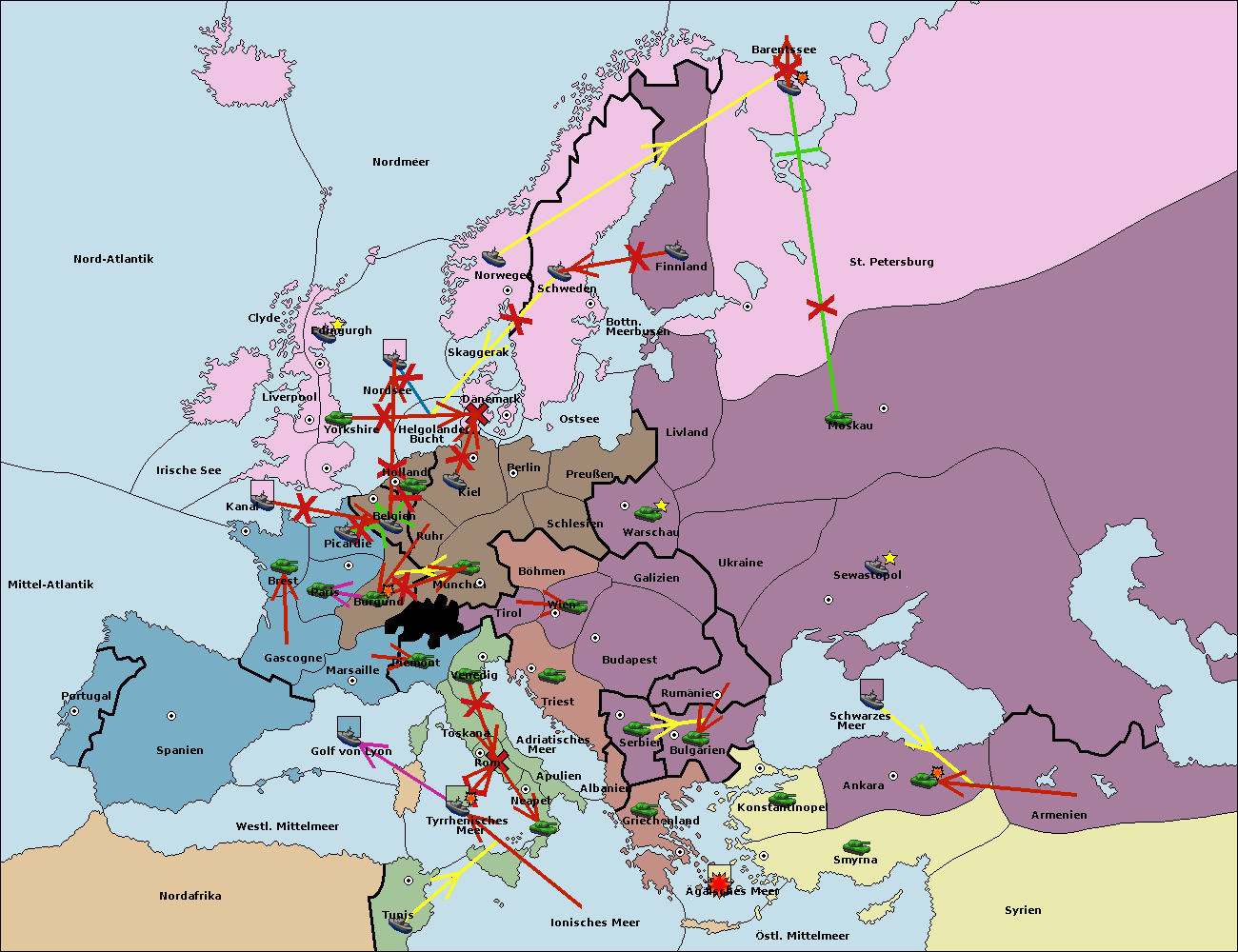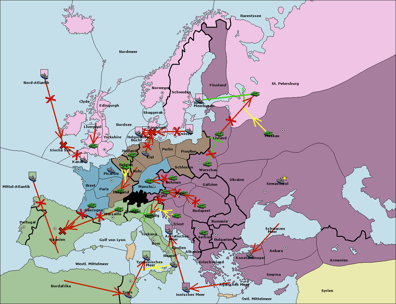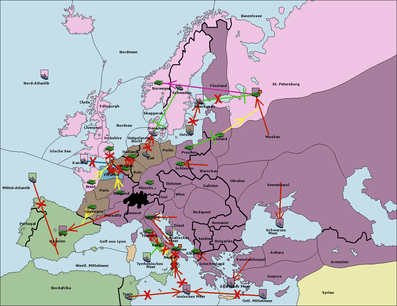 • Die Flotte in St. Petersburg (Nordküste) move nach Norwegen. (gescheitert)