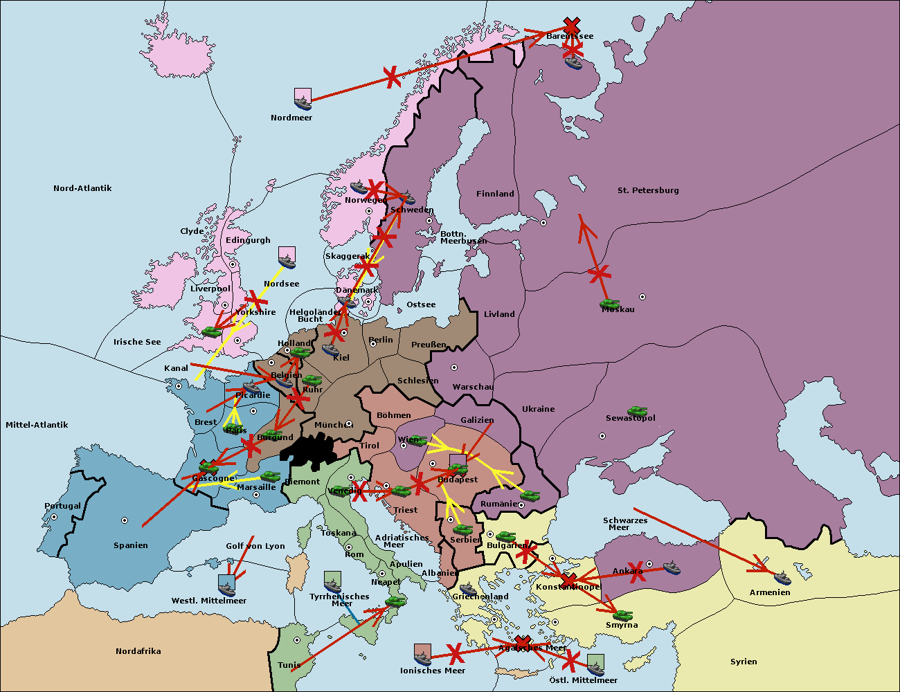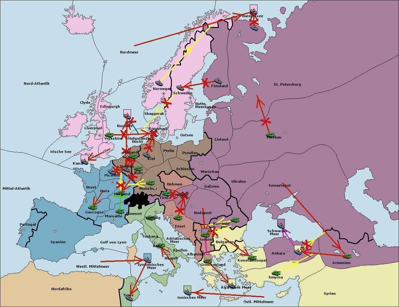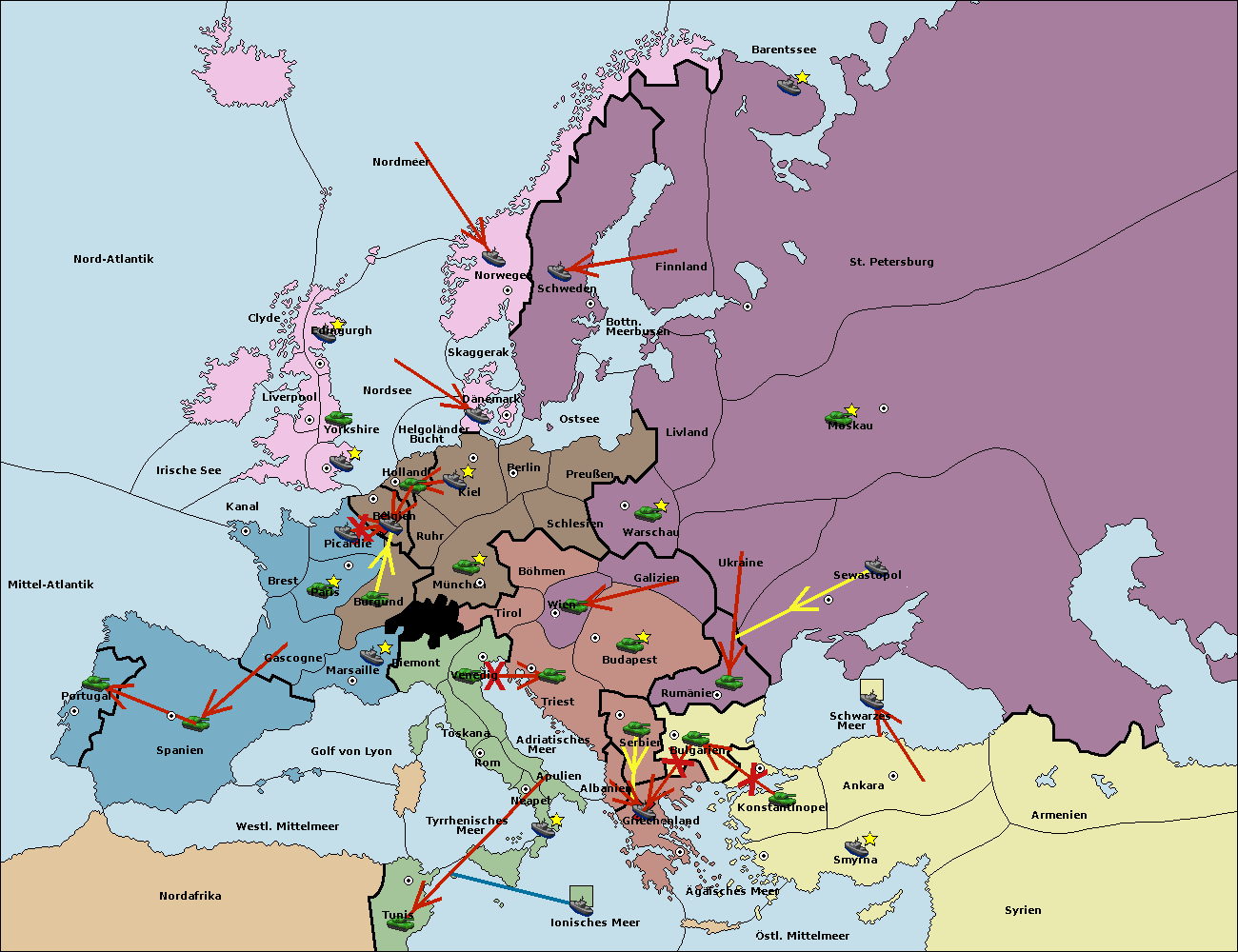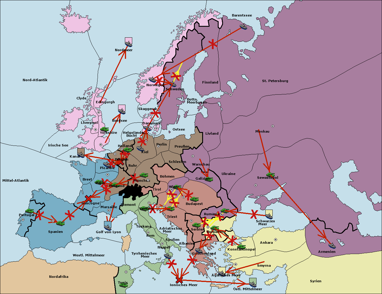 • Die Flotte in St. Petersburg (Nordküste) move nach Norwegen. (gescheitert)
