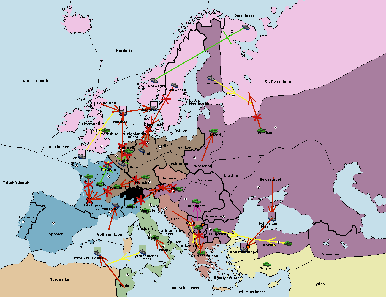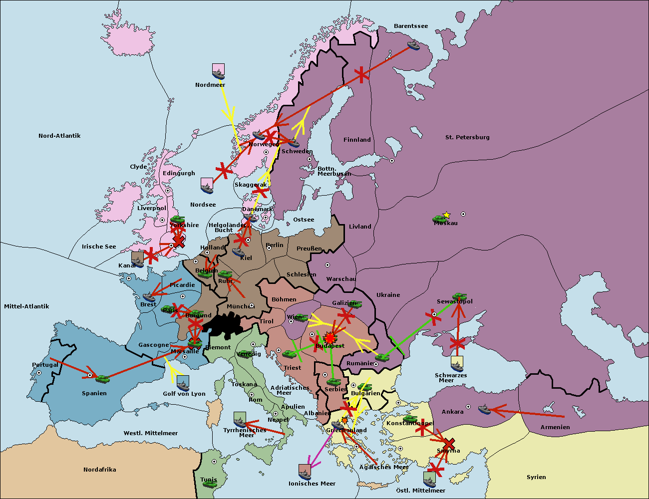 • Die Armee in Wien support move nach Budapest von Galizien.