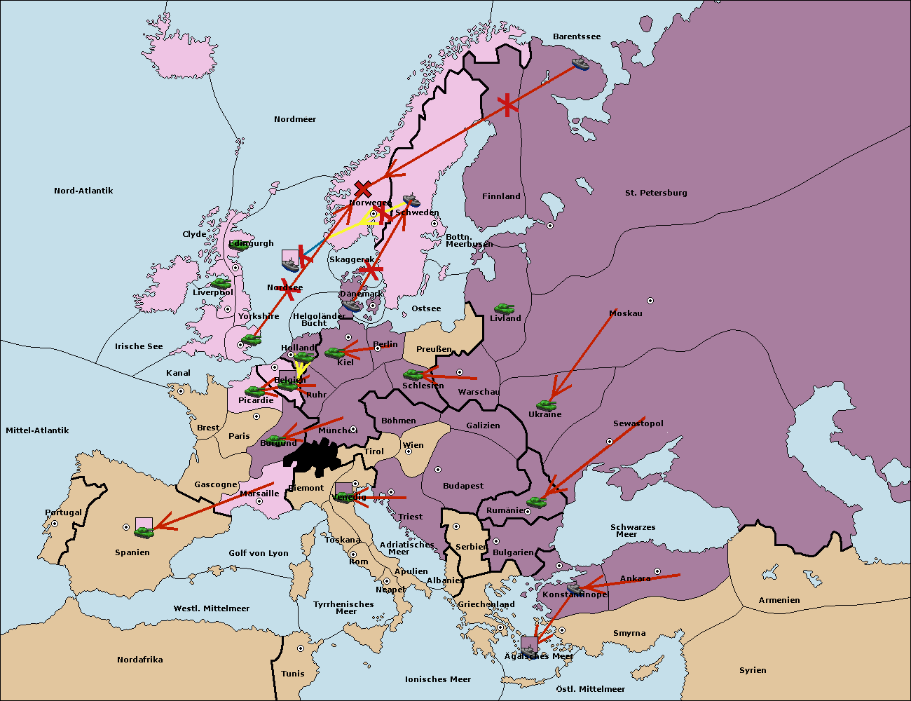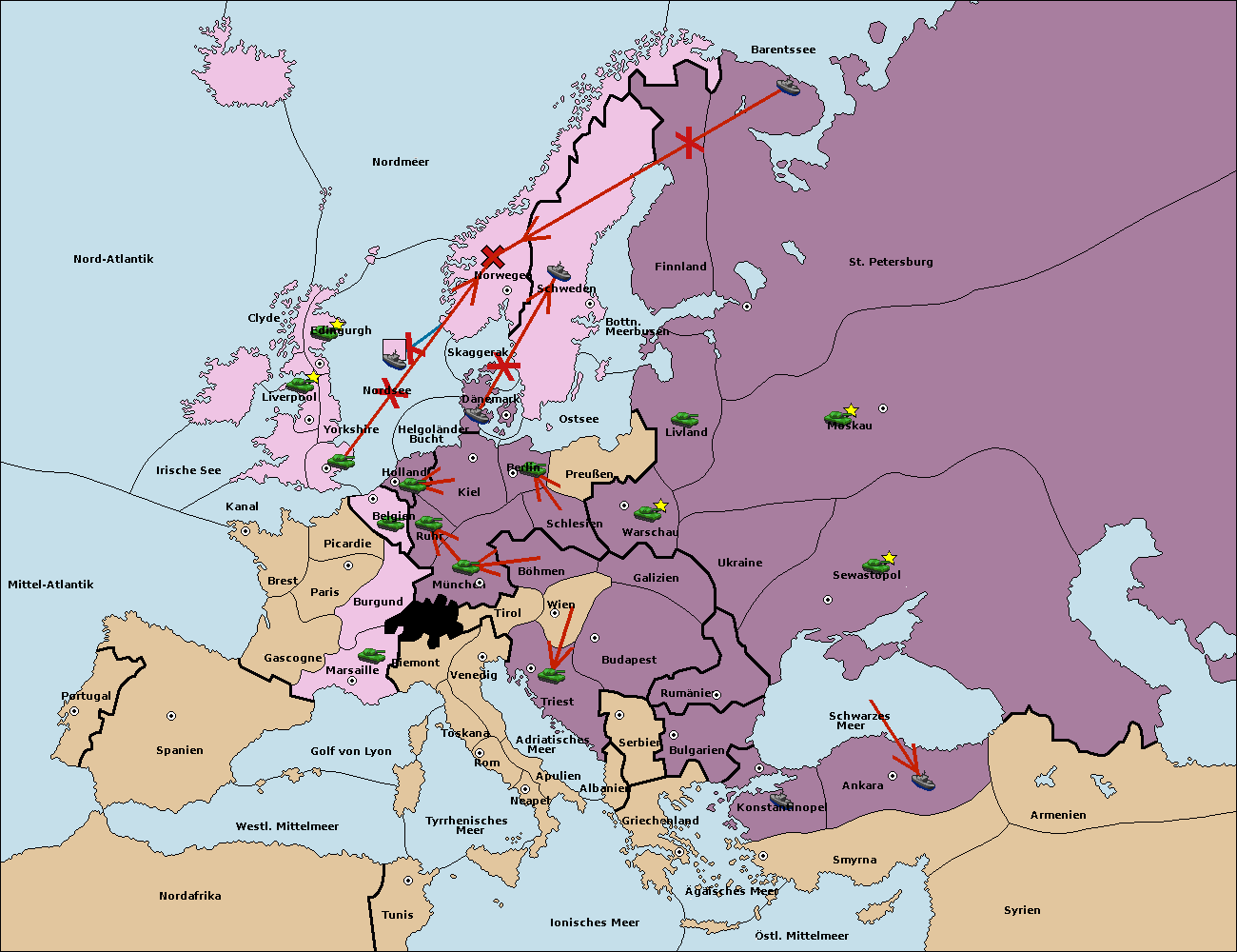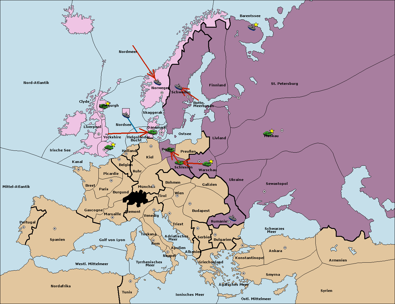 • Die Flotte in St. Petersburg (Nordküste) move nach Norwegen.