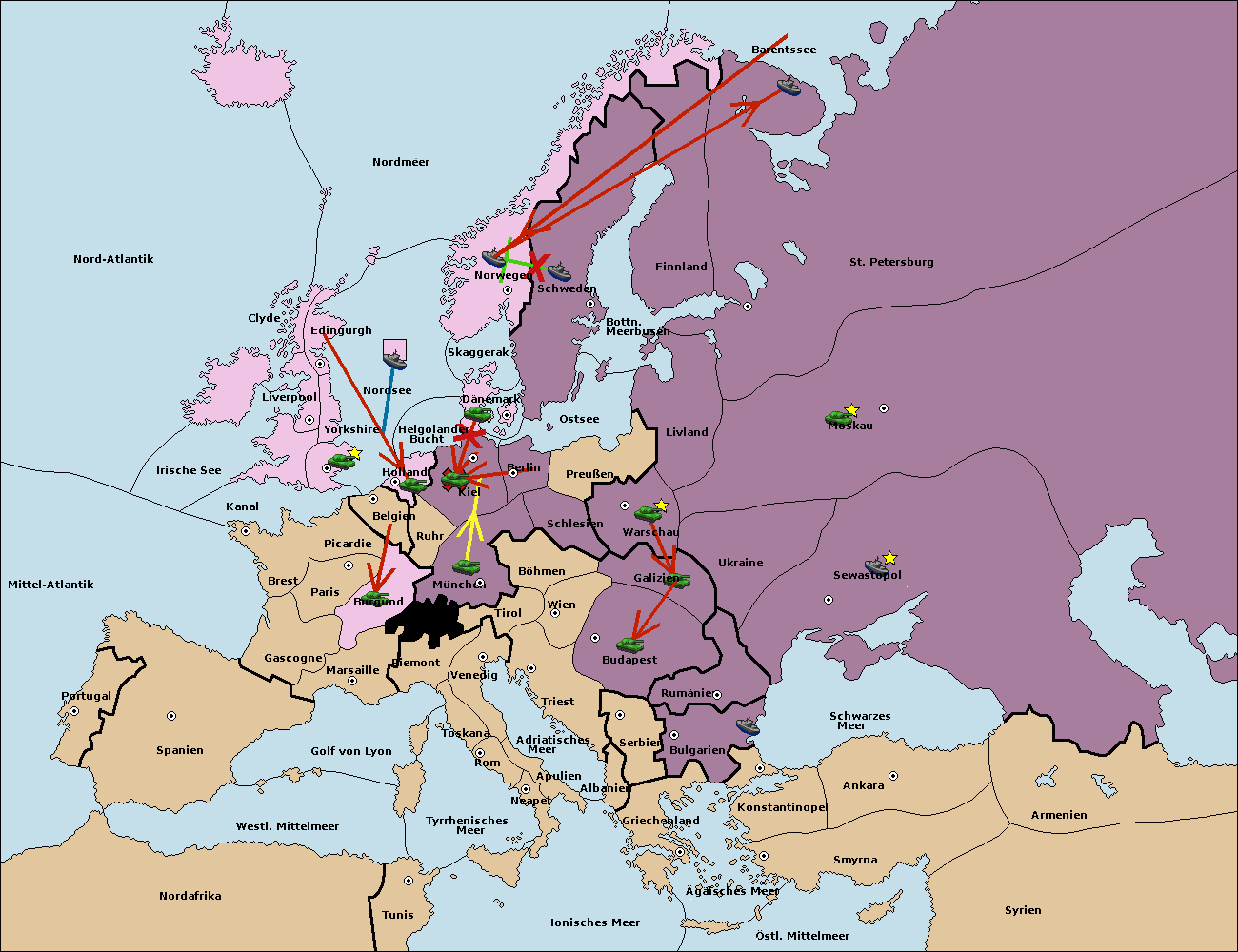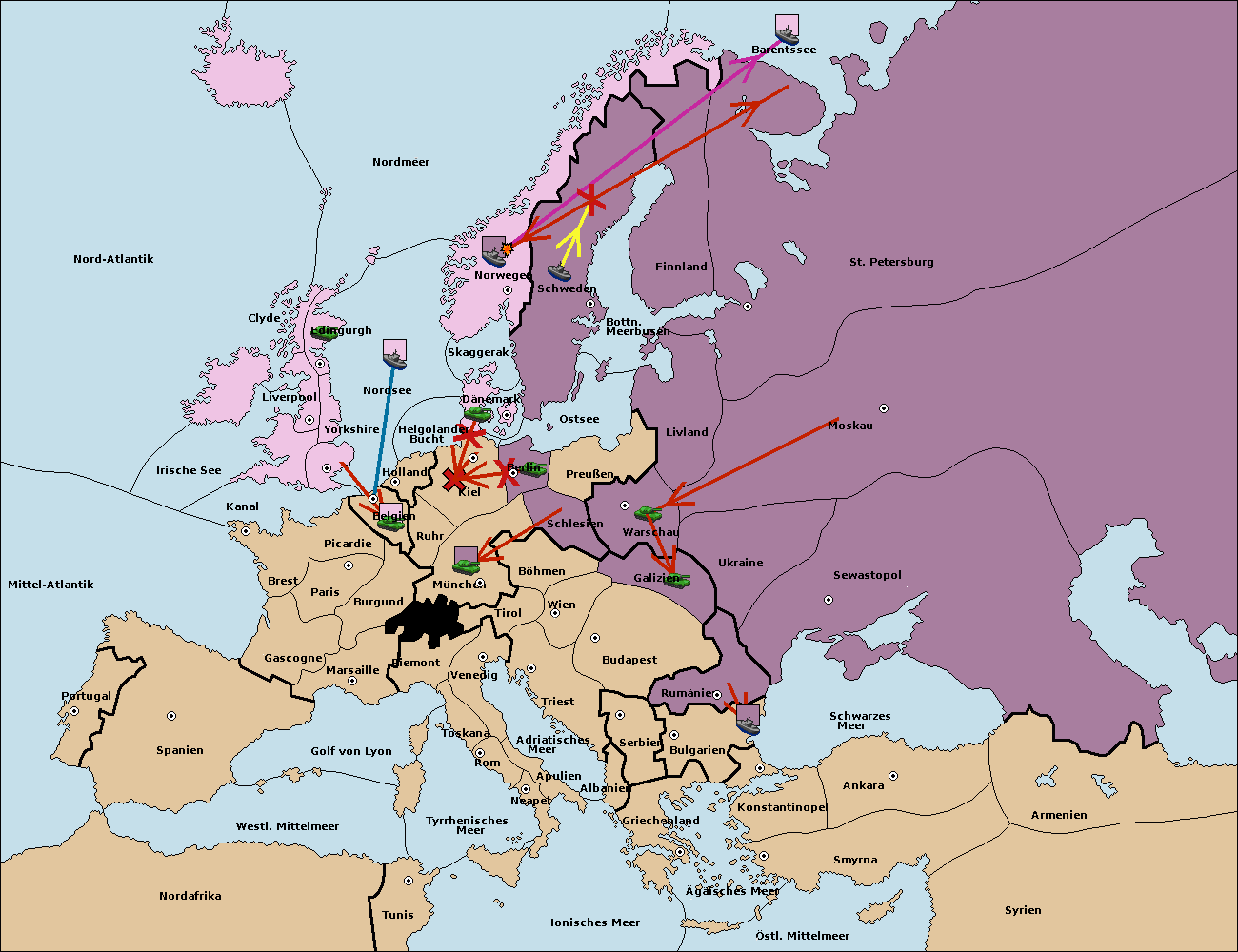 • Die Flotte in St. Petersburg (Nordküste) move nach Norwegen. (gescheitert)