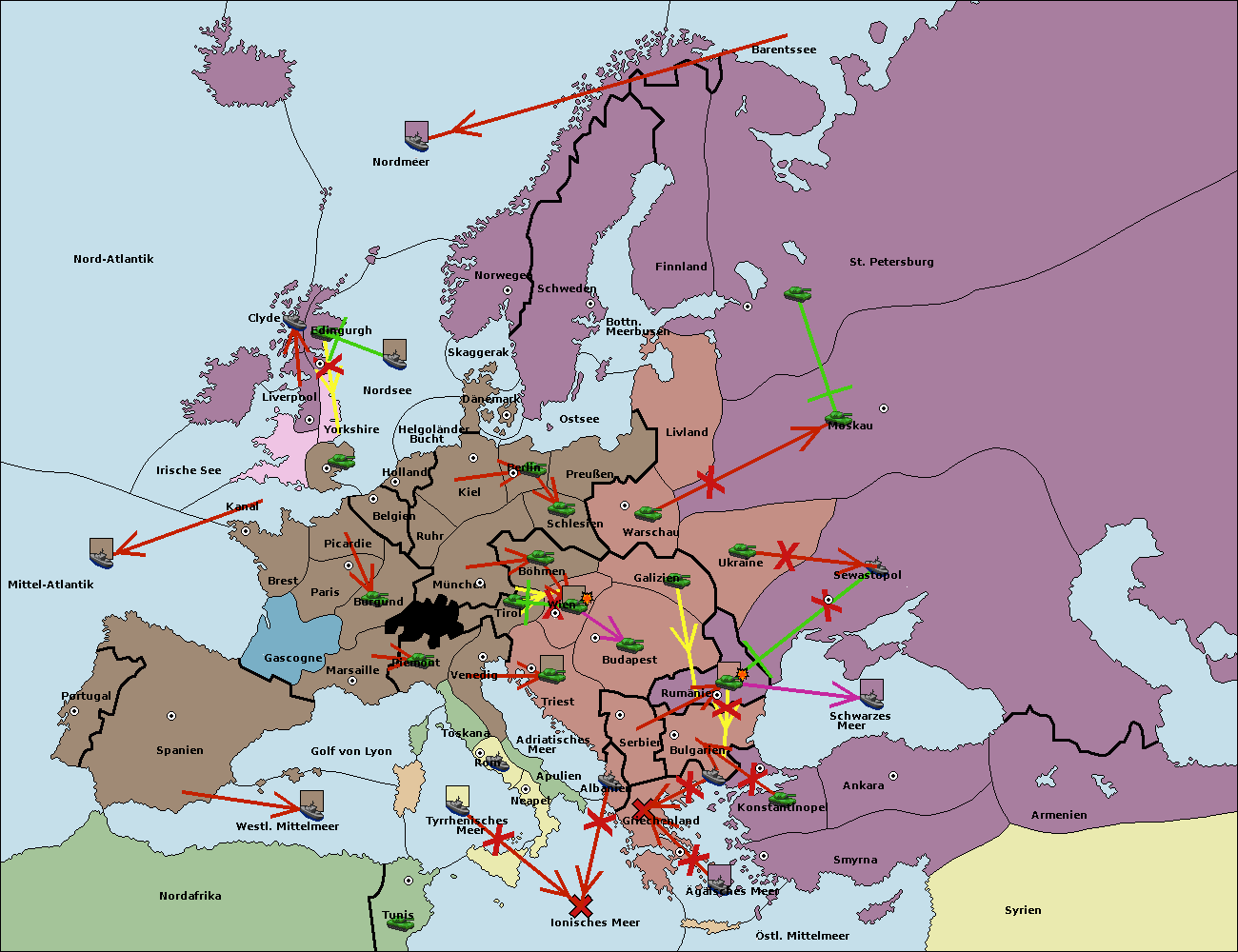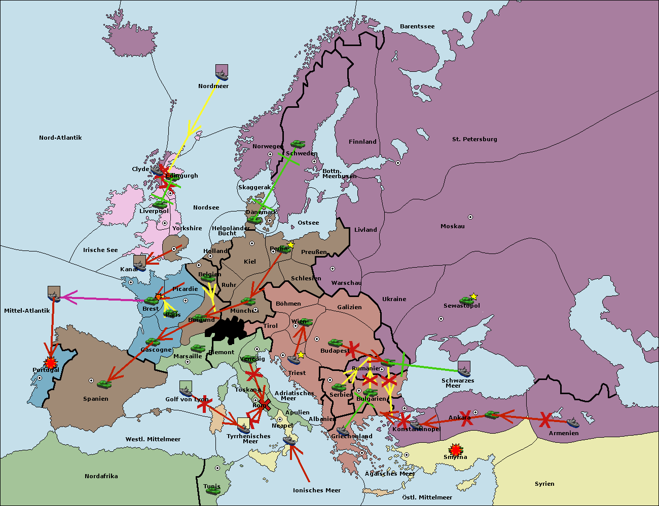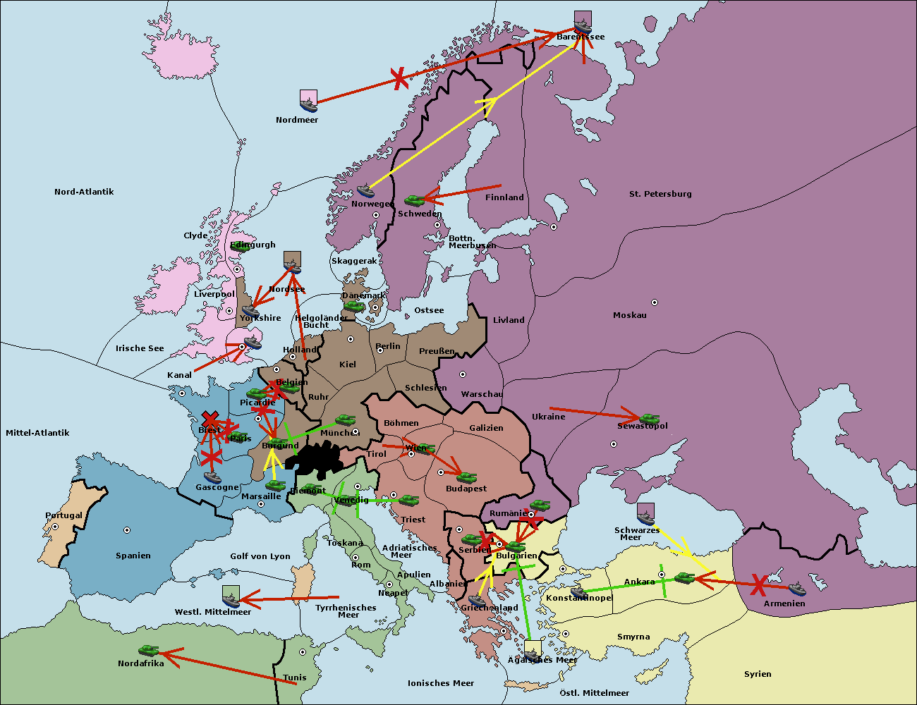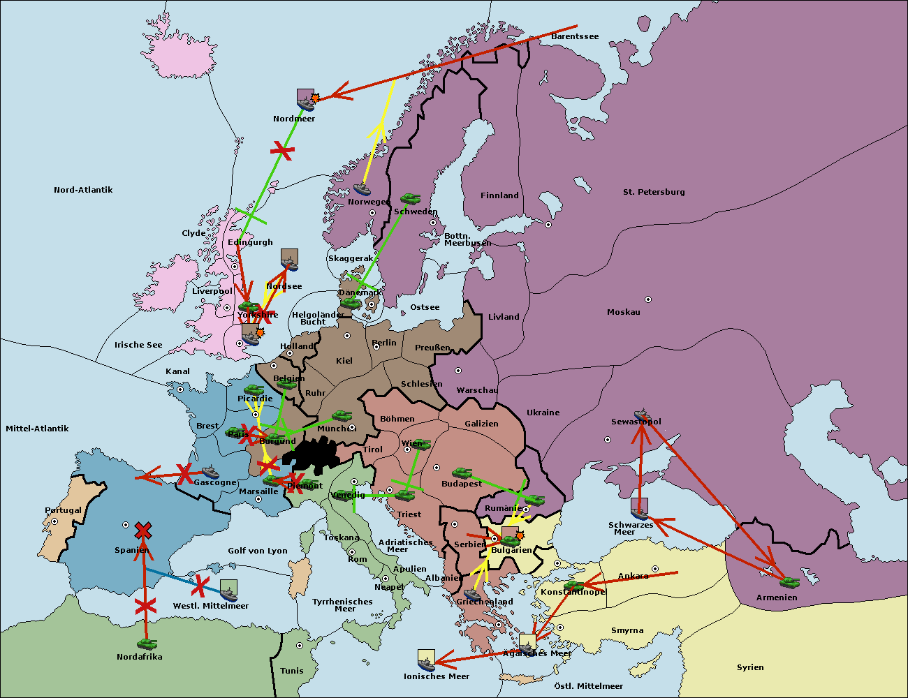 • Die Armee in Konstantinopel support hold nach Bulgarien.