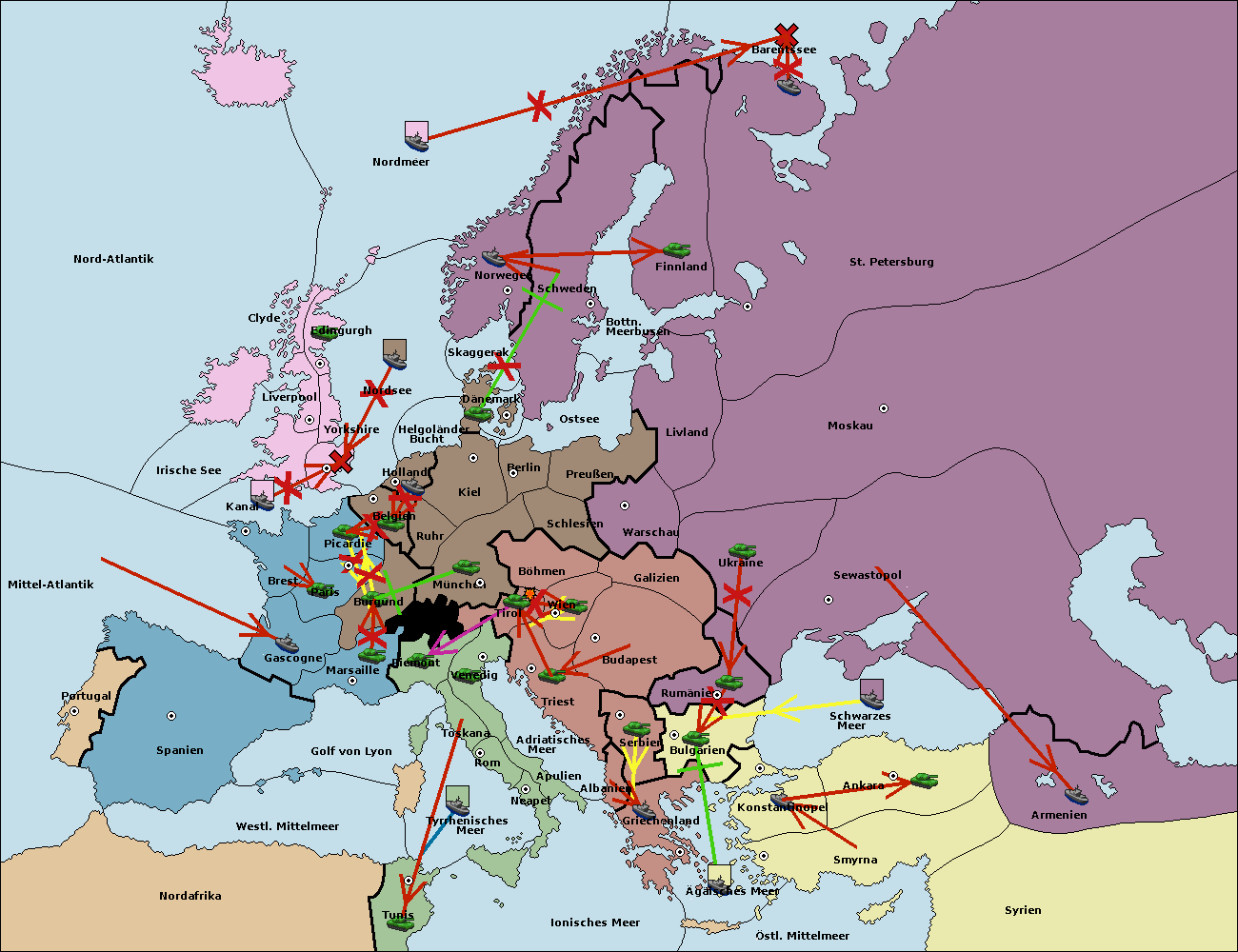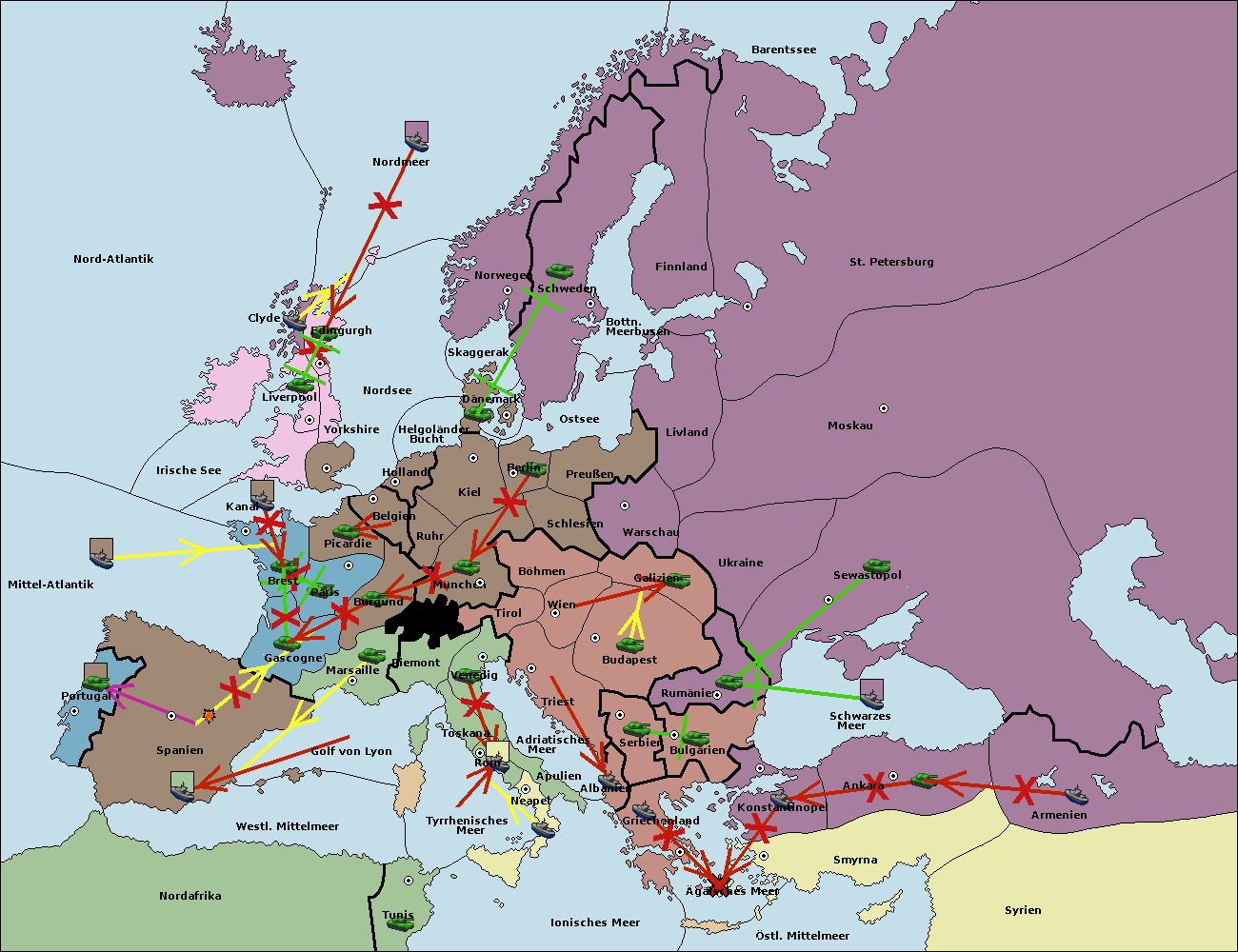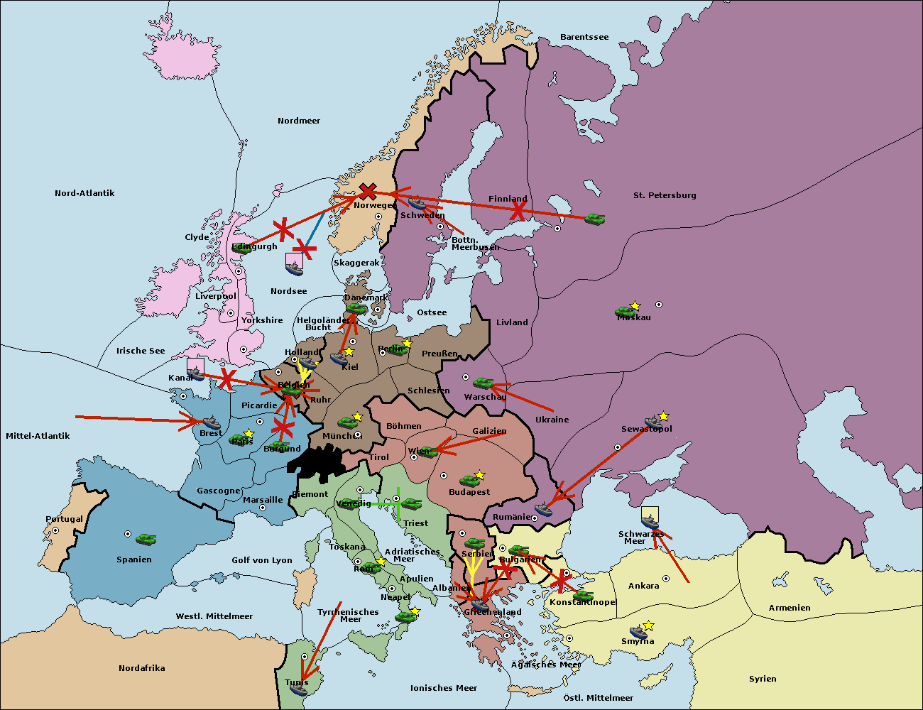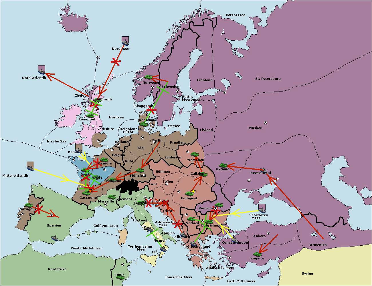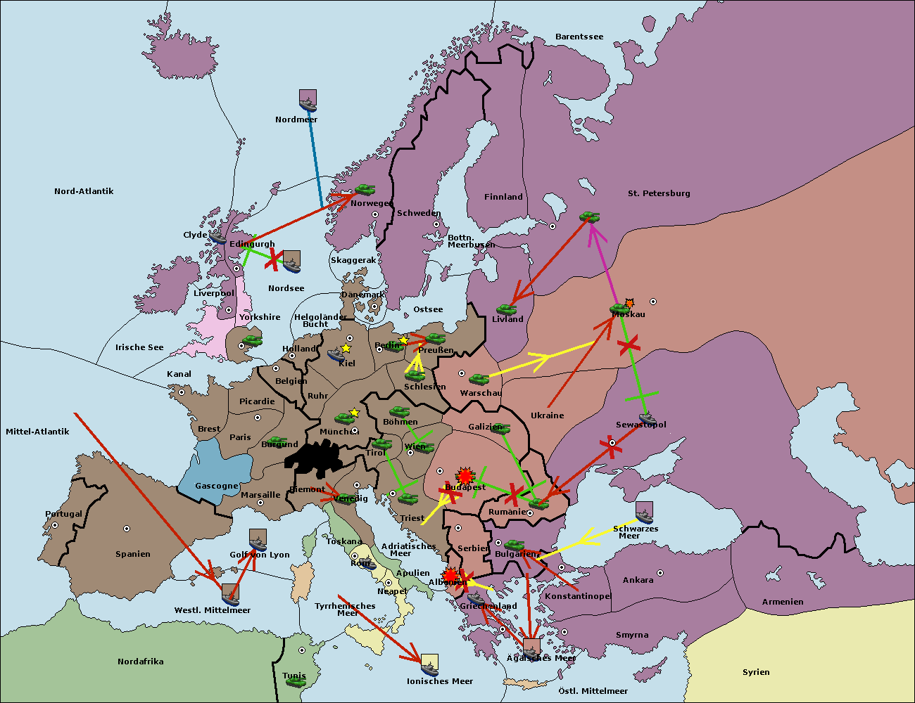 • Die Armee in Konstantinopel support hold nach Bulgarien.