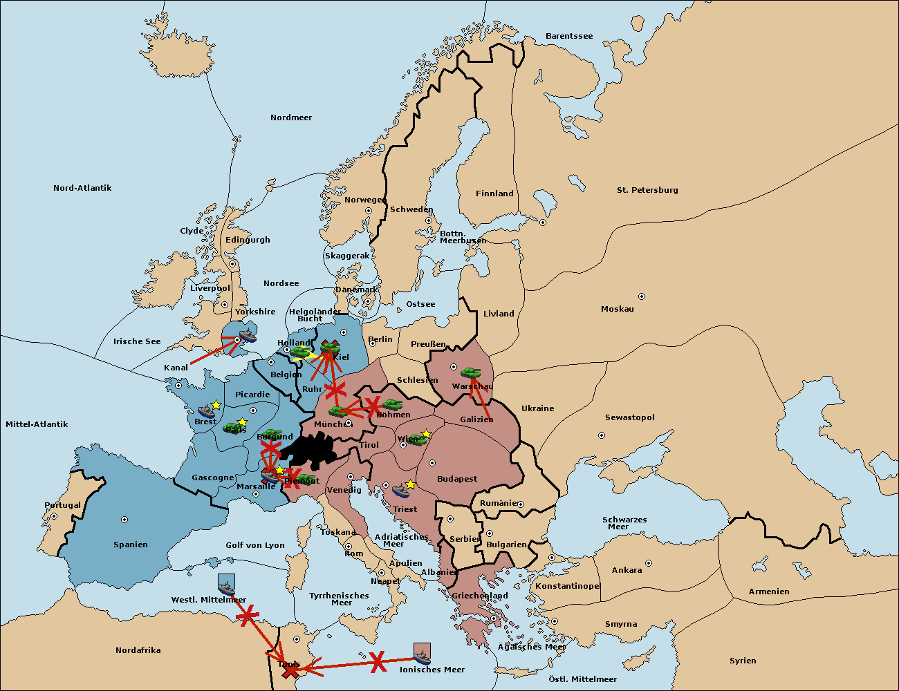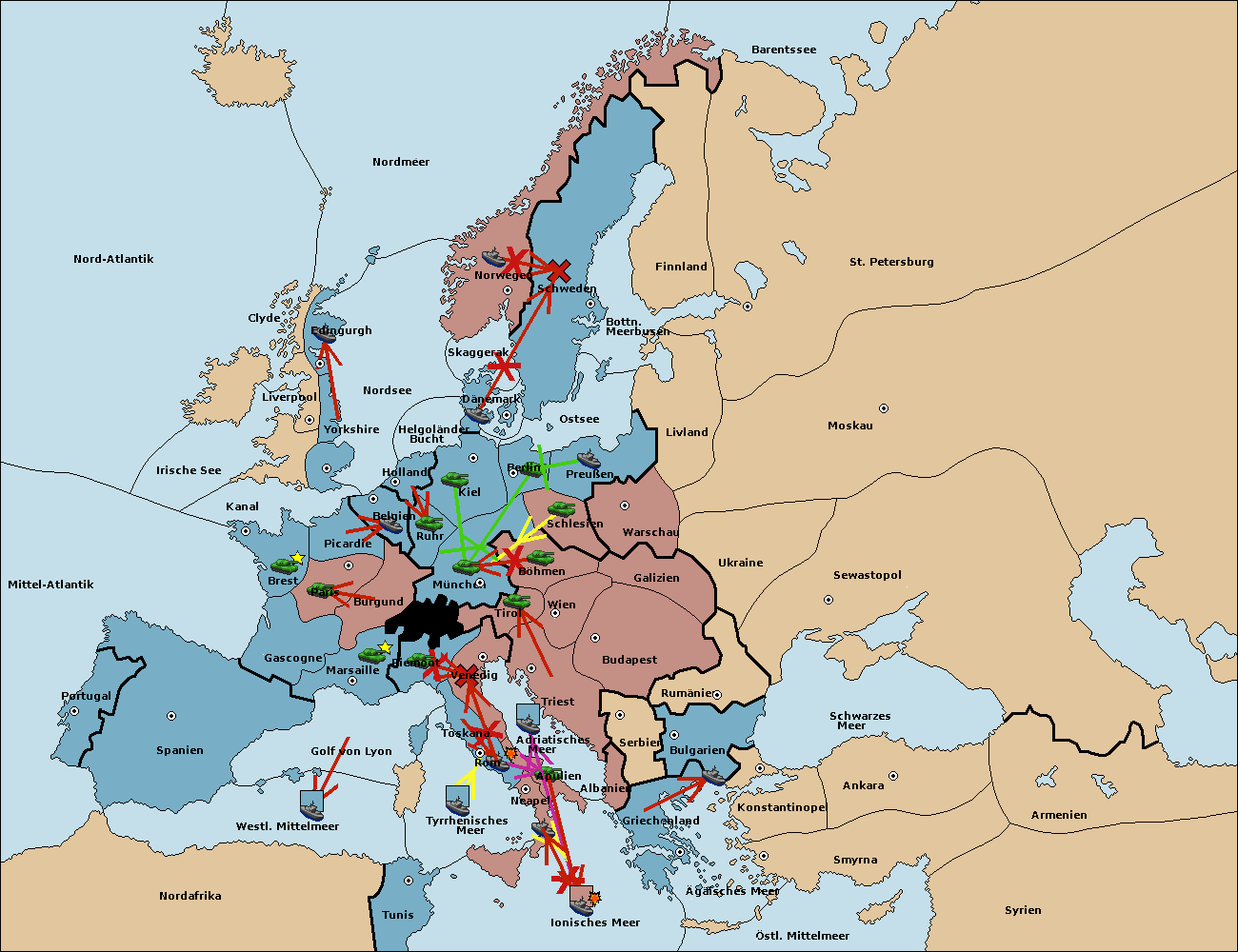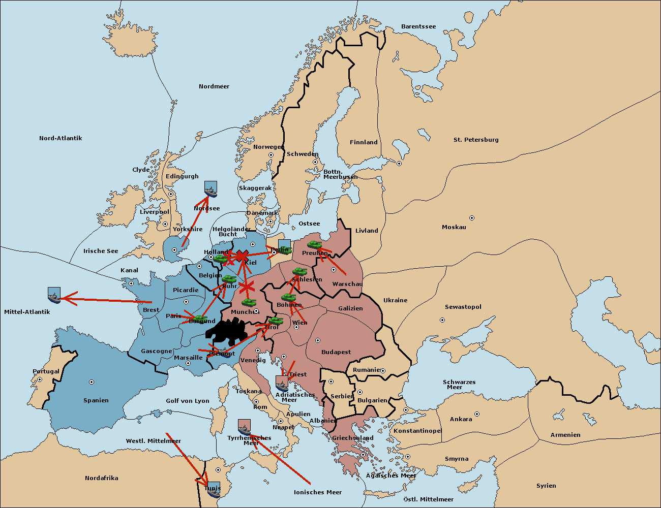 • Die Armee in Kiel support move nach München von Burgund. (gescheitert)