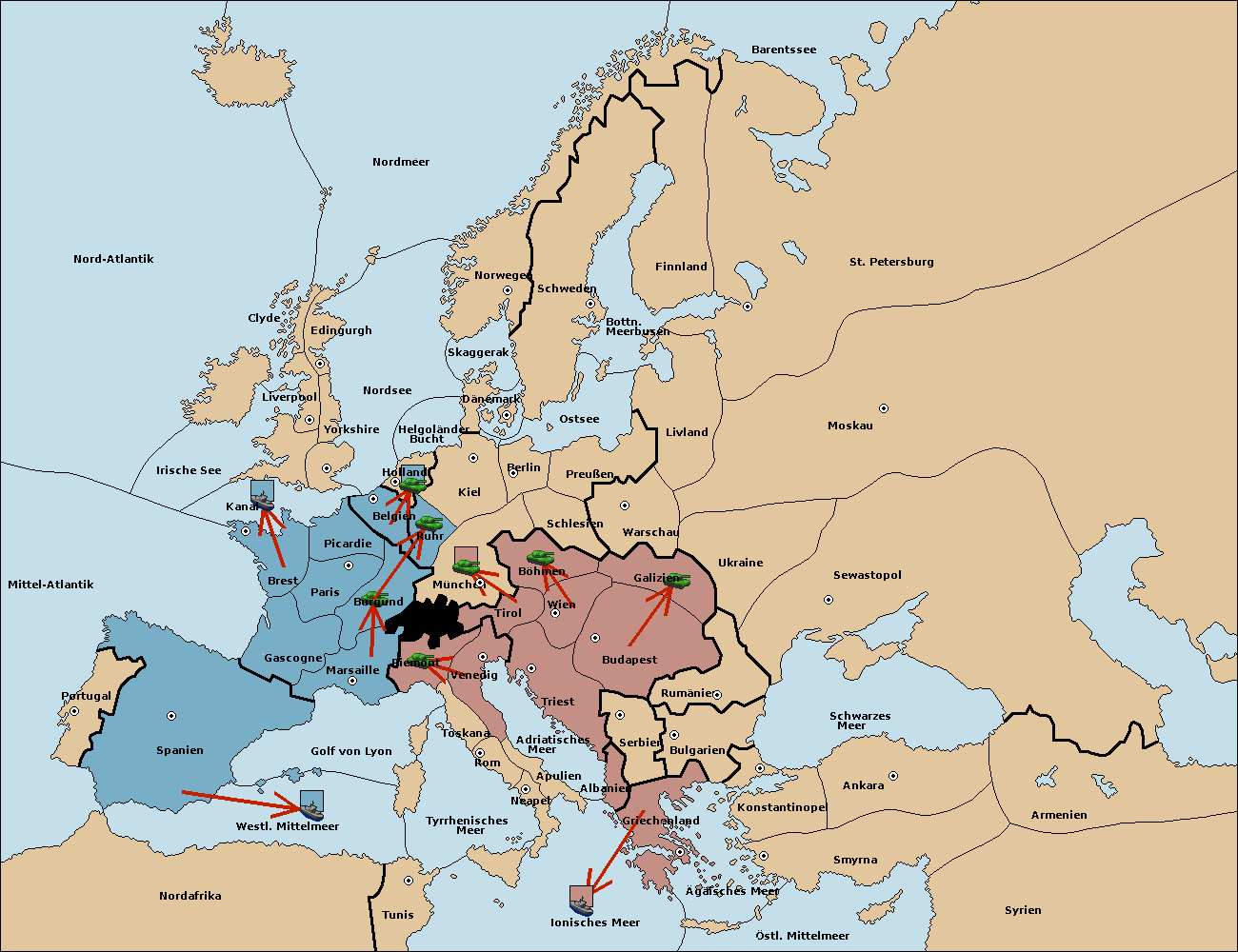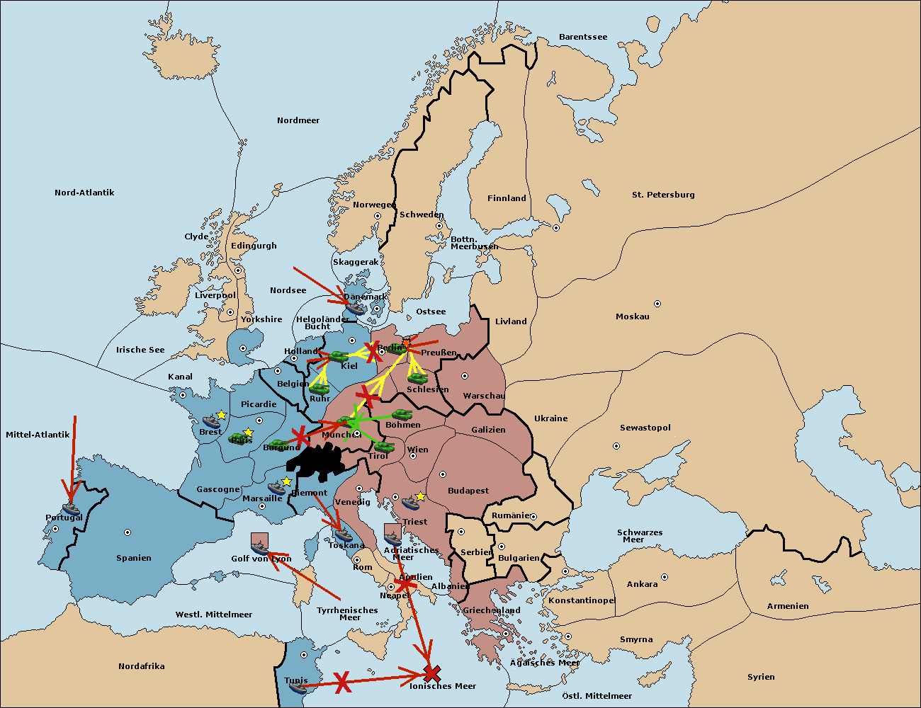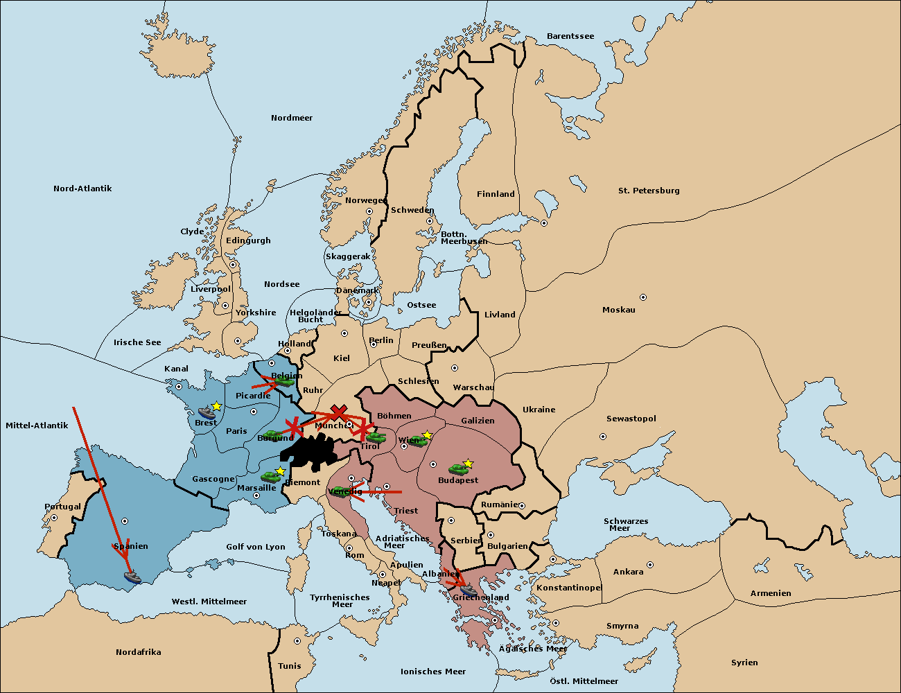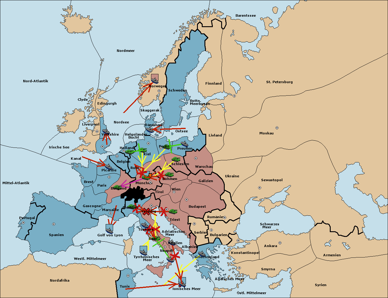 • Die Armee in Kiel support move nach München von Burgund. (gescheitert)