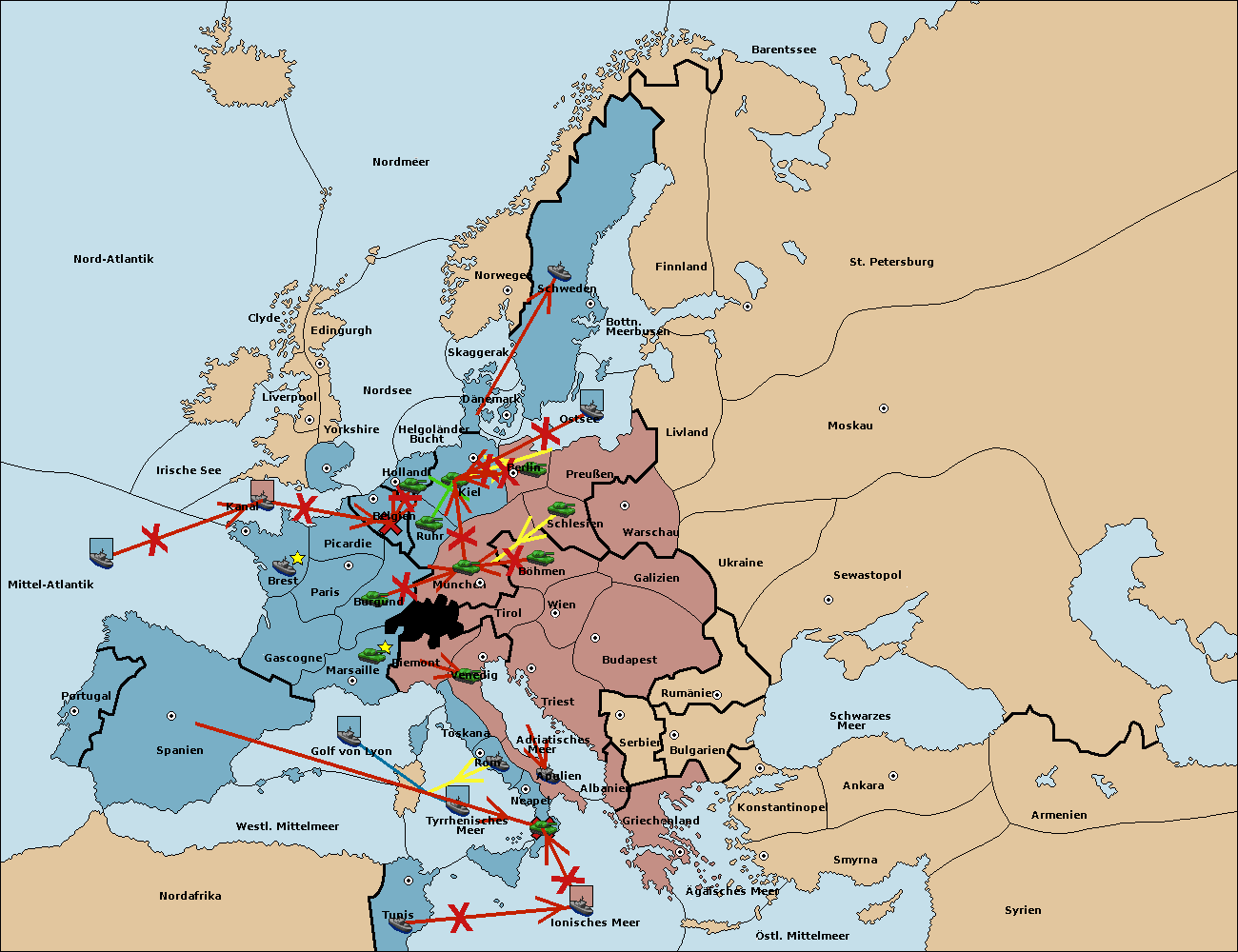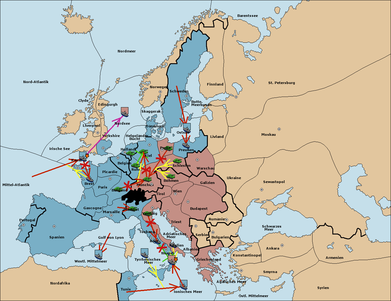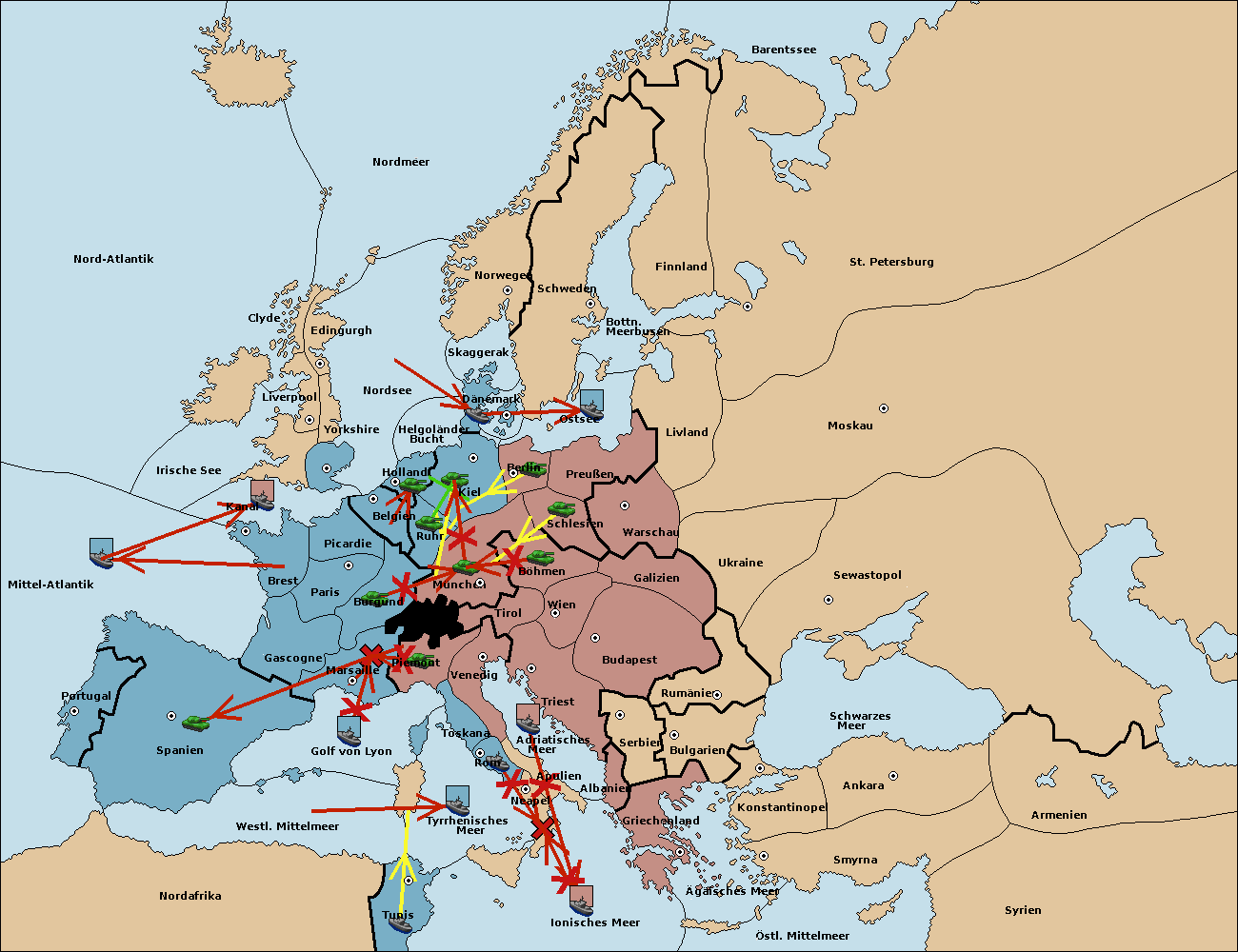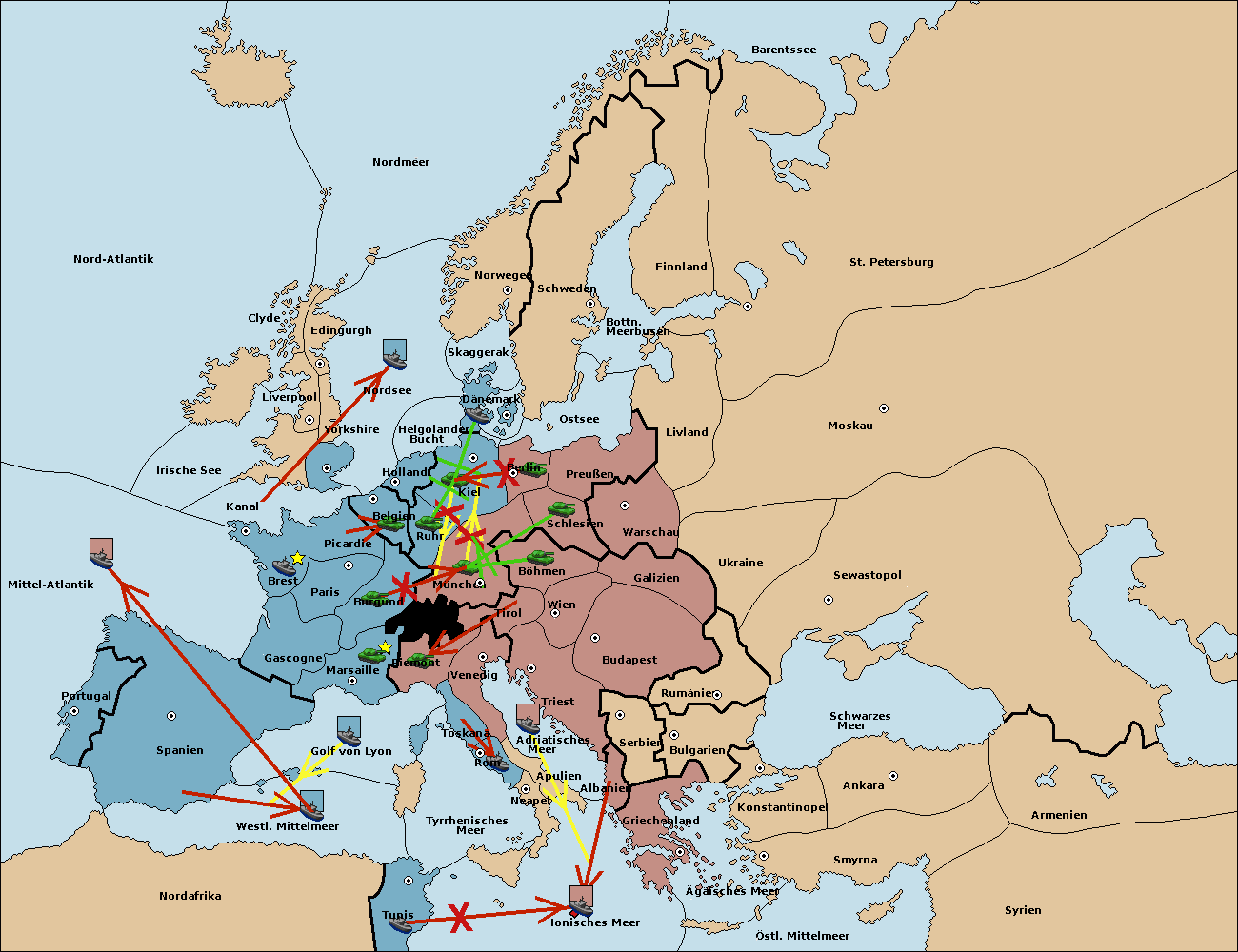• Die Flotte in Spanien (Südküste) move nach westl. Mittelmeer.