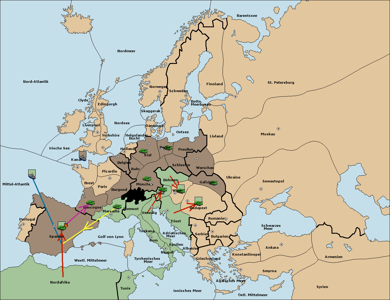 • Die Armee in Böhmen wird zerstörtFlotte in Böhmen gebaut.