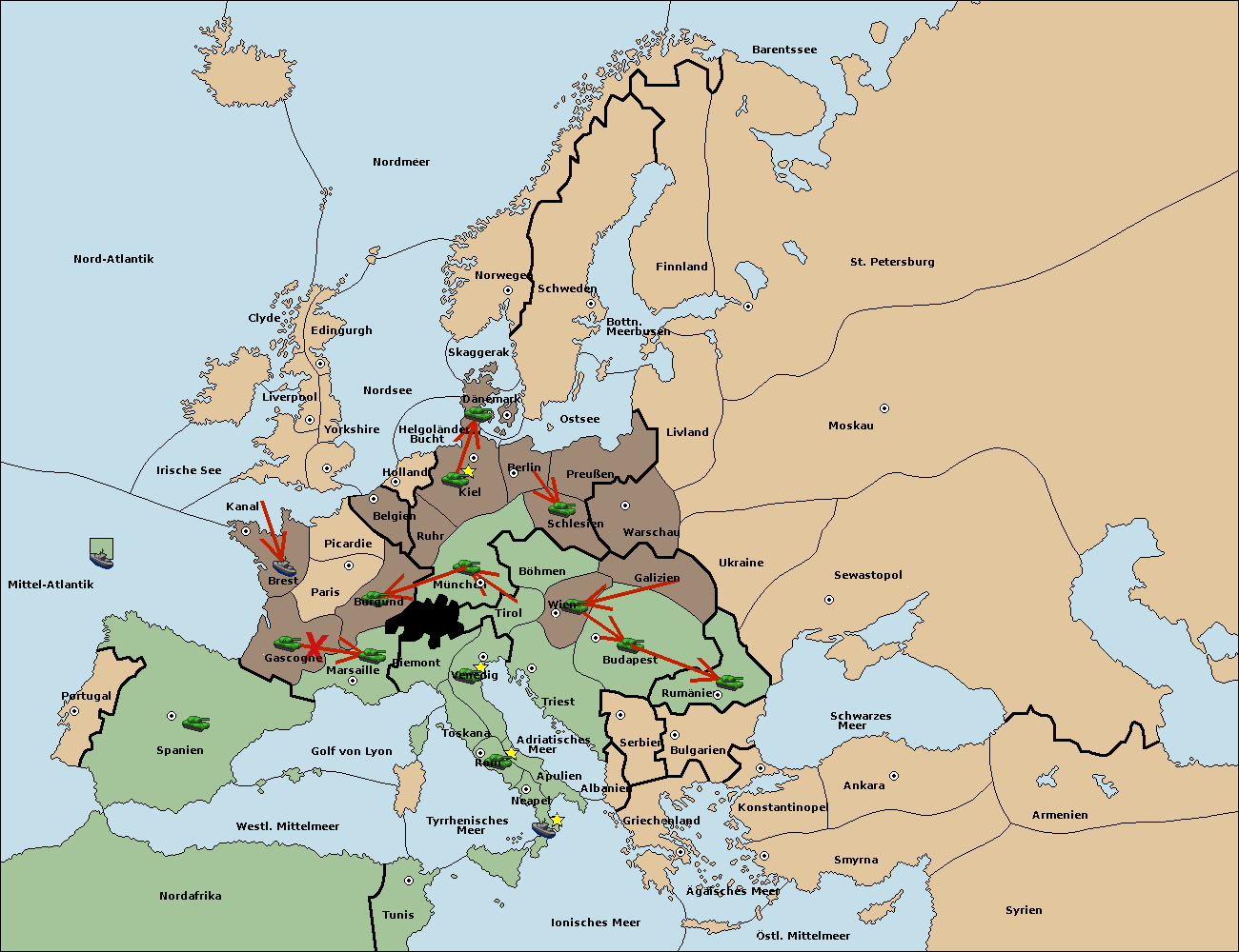 • Die Armee in Budapest move nach Triest. (gescheitert)