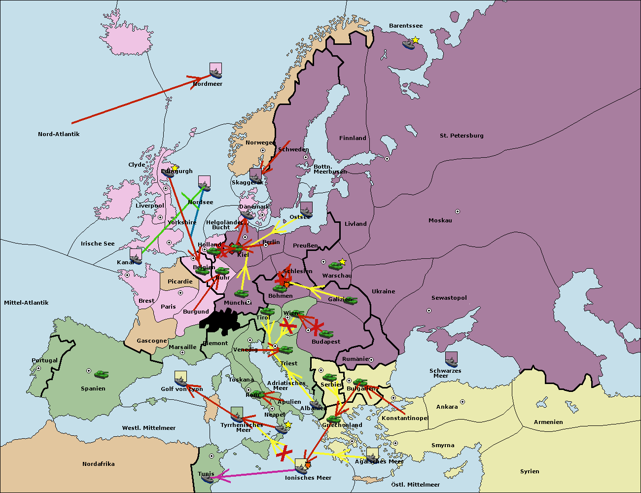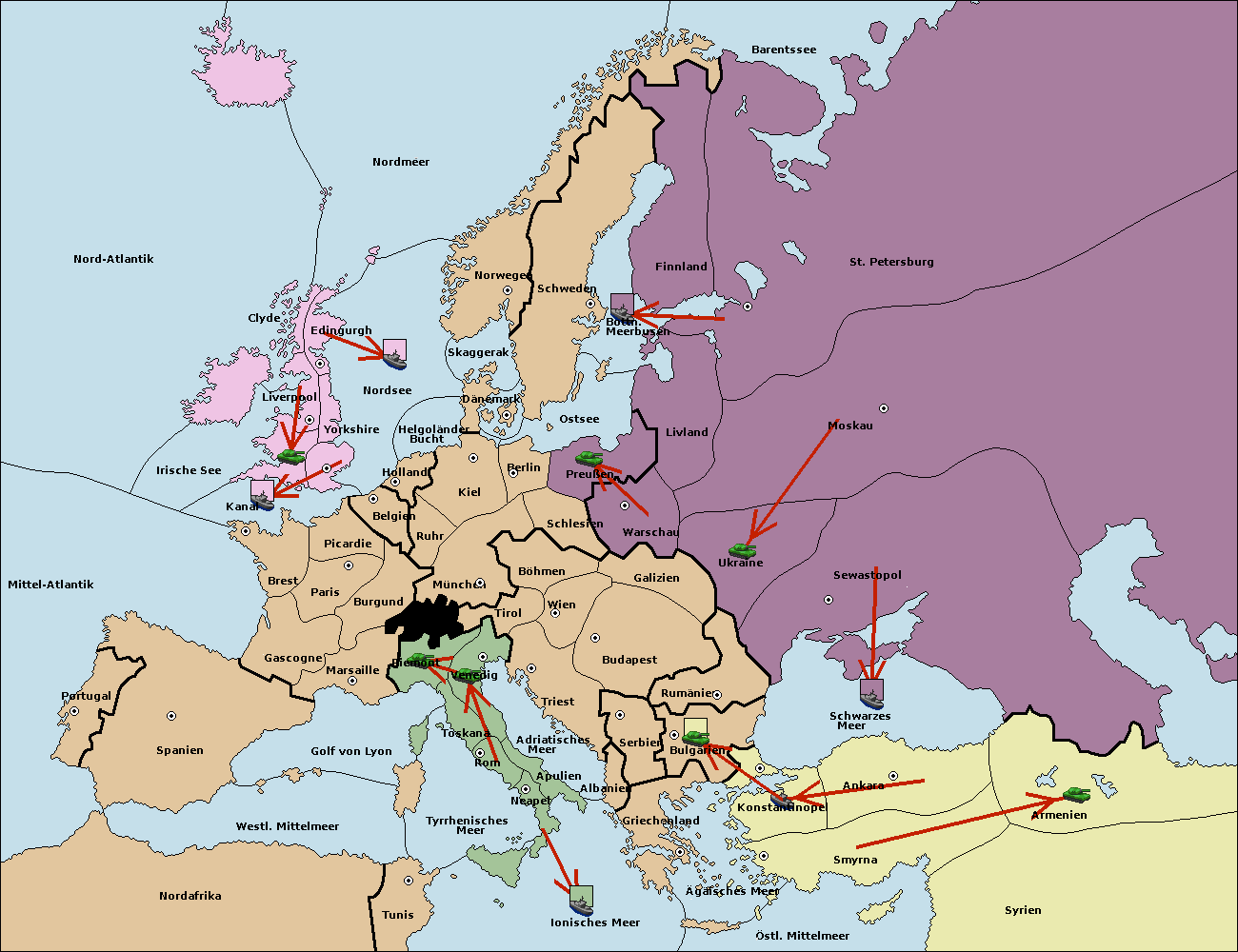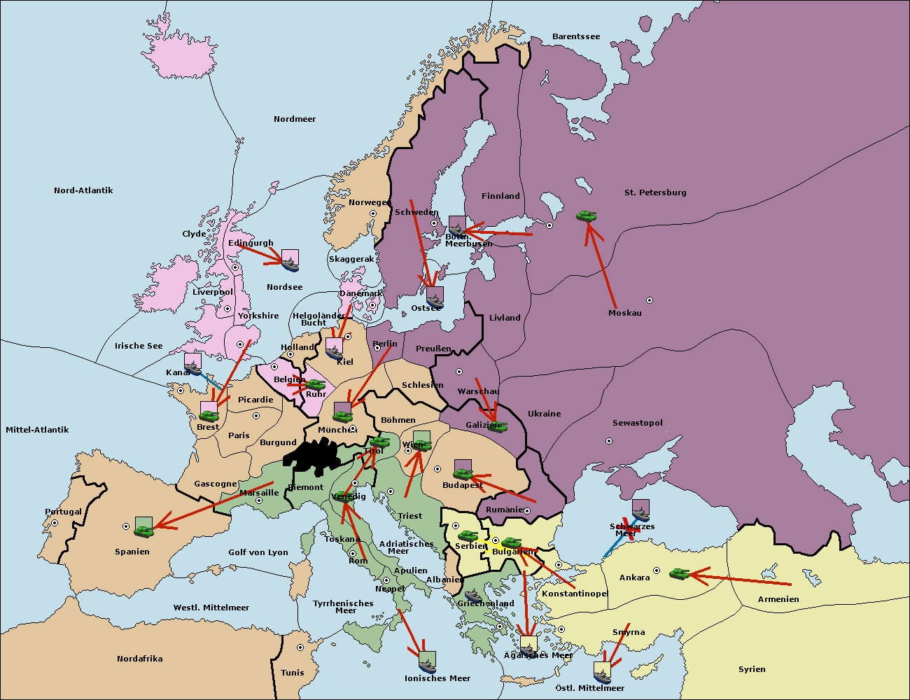 • Die Armee in St. Petersburg move nach Berlin via Concoy.
