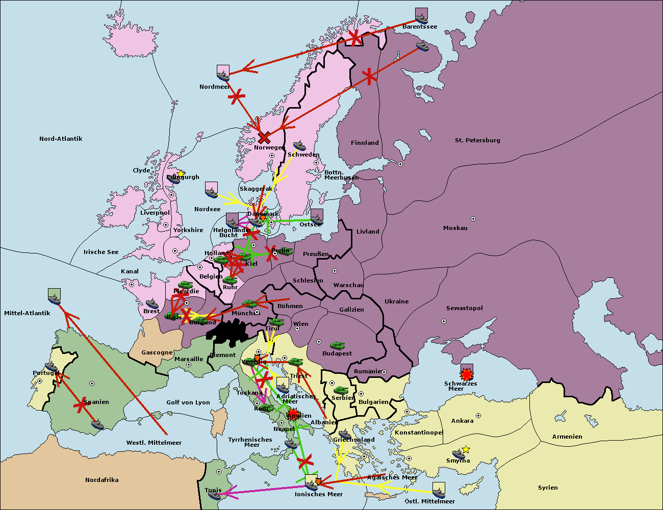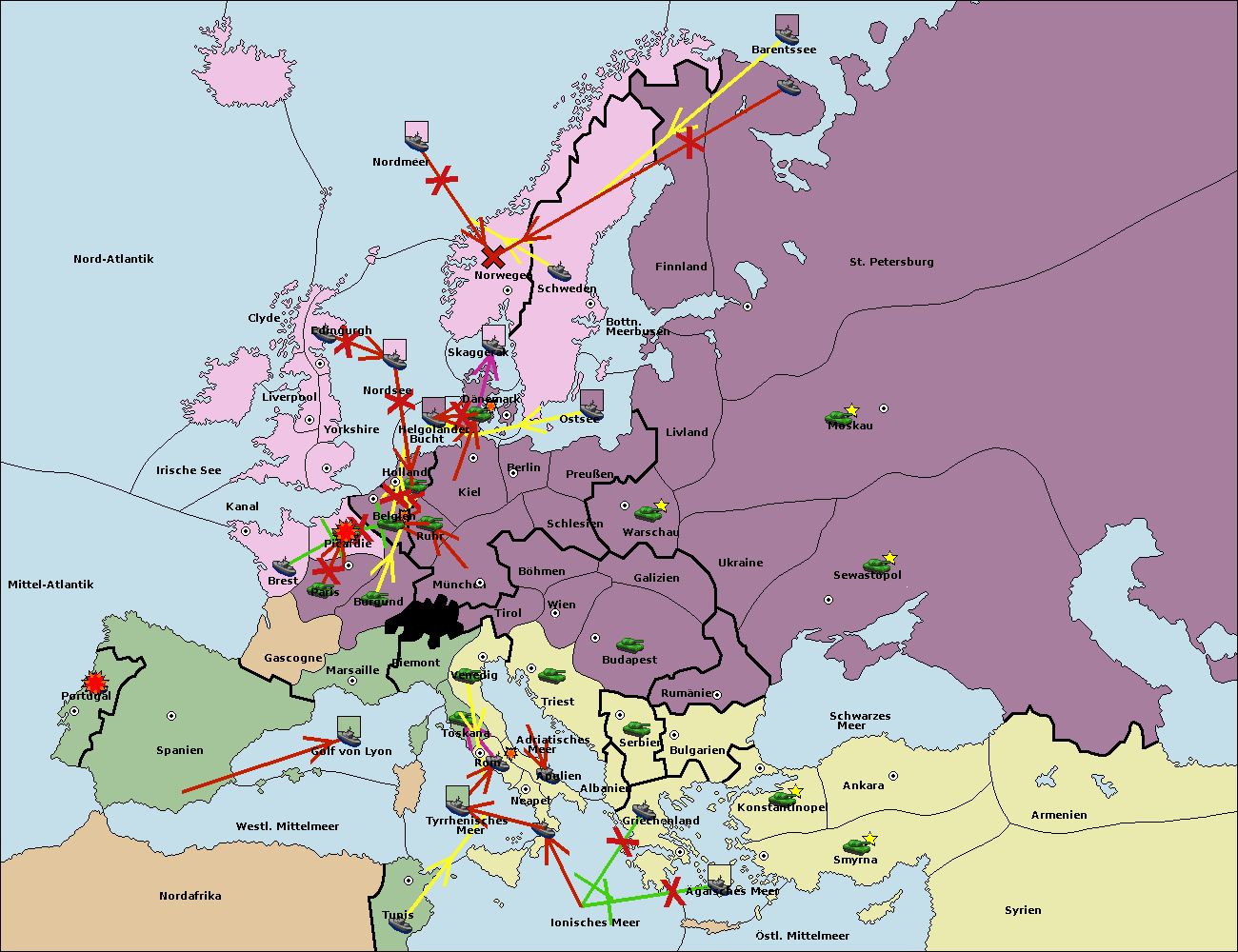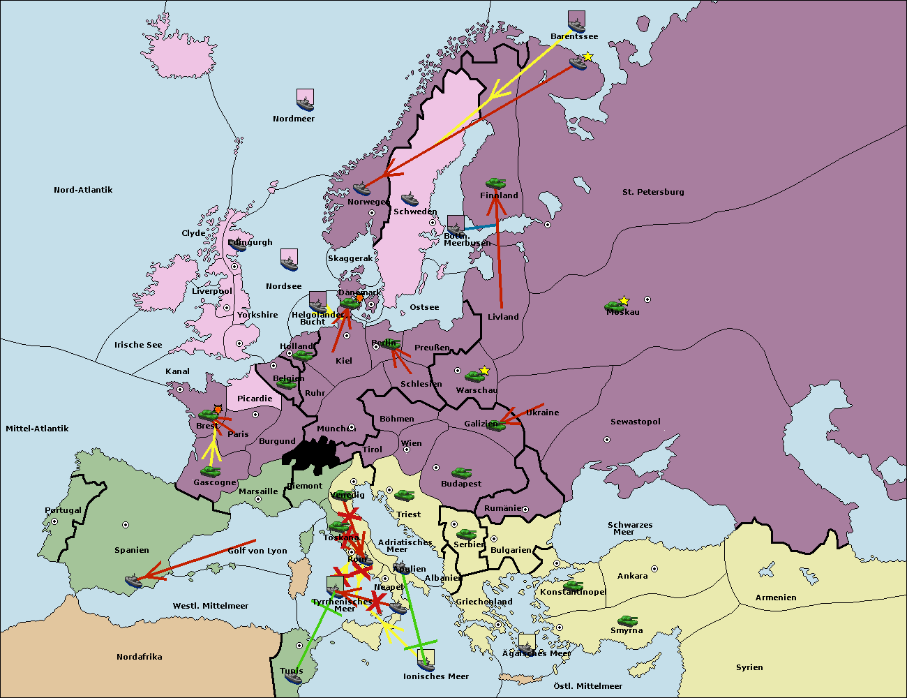 • Die Flotte in St. Petersburg (Nordküste) move nach Barentssee.
