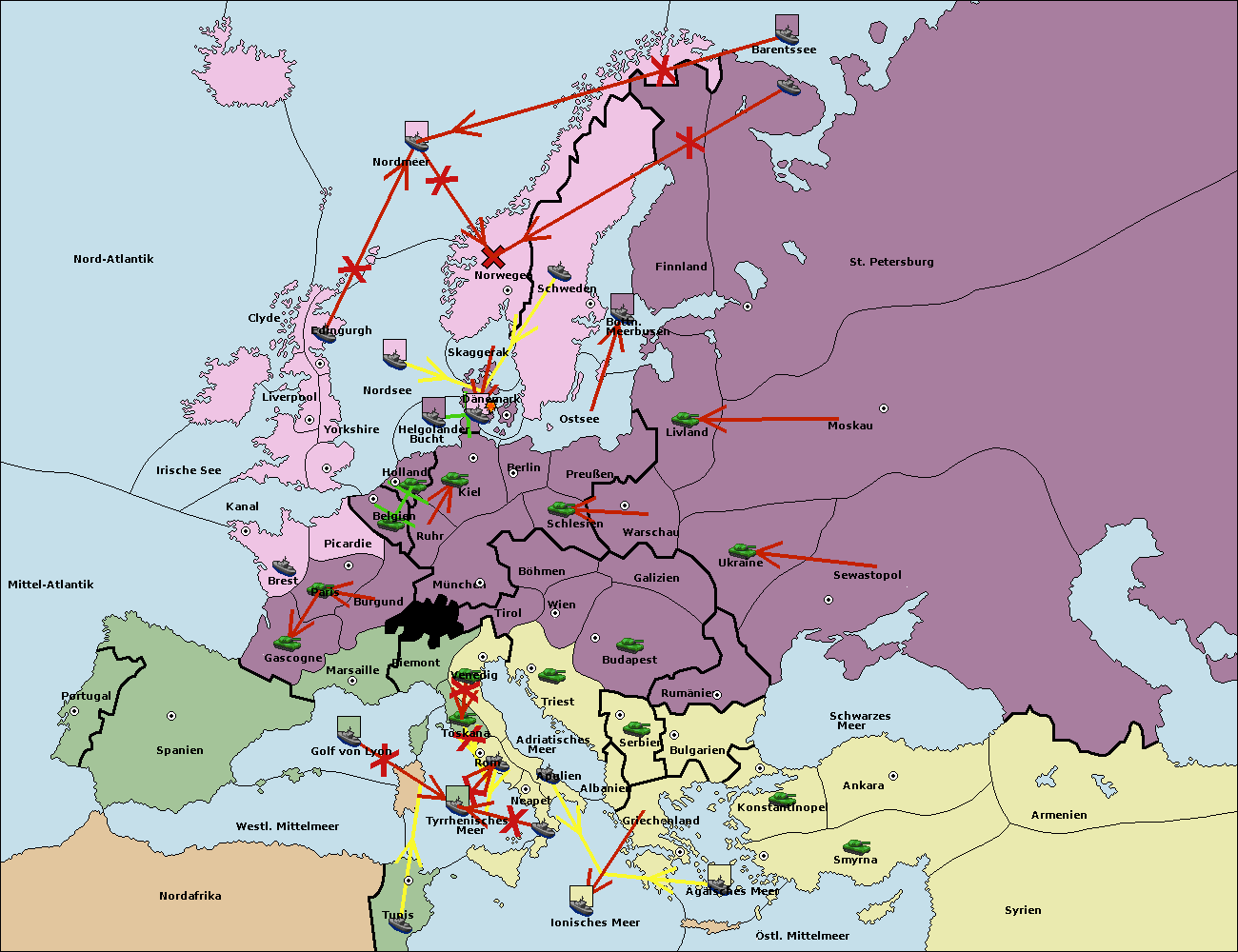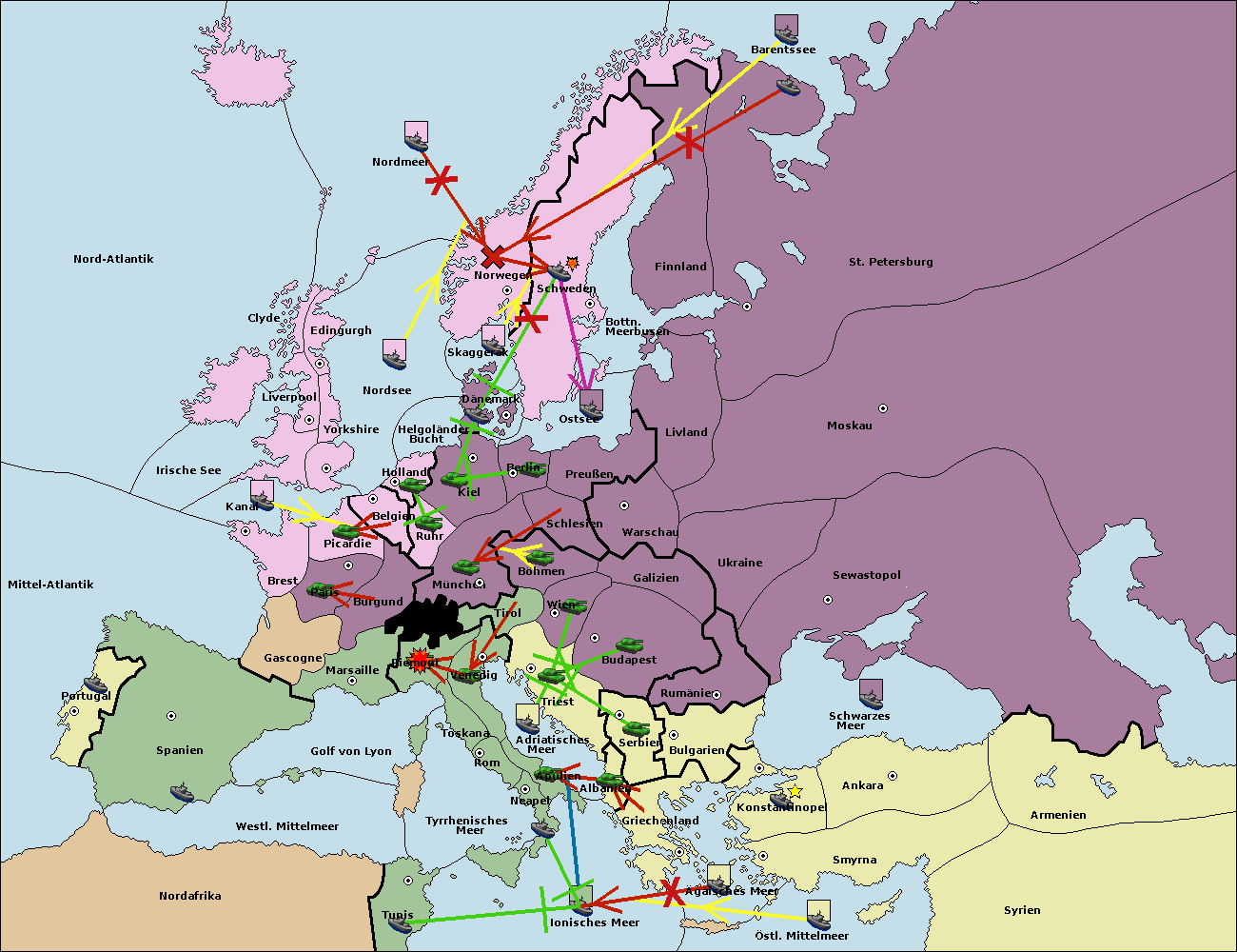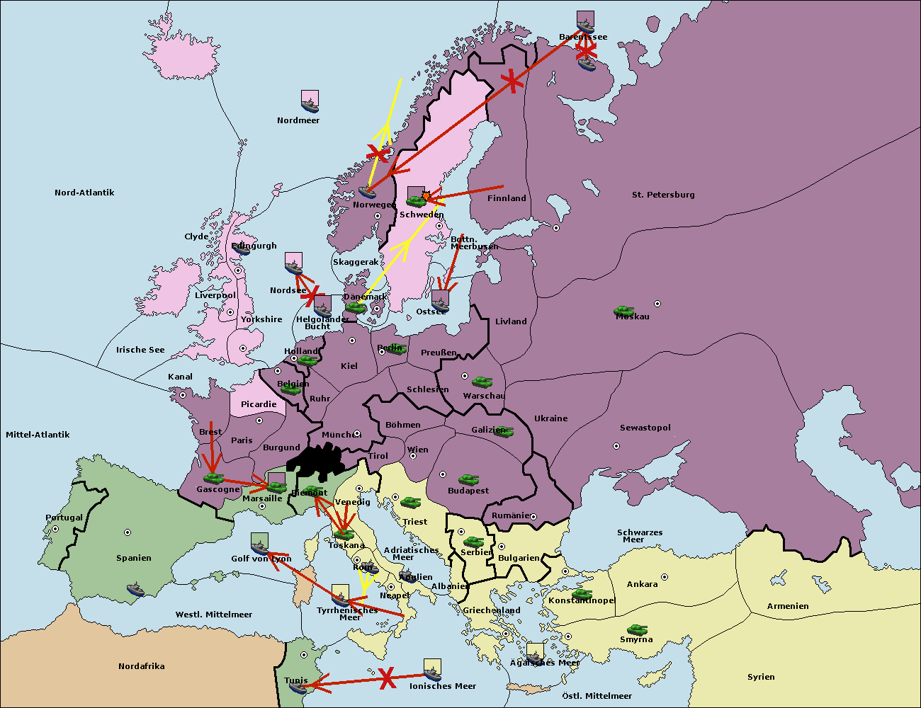 • Die Flotte in St. Petersburg (Nordküste) move nach Norwegen.