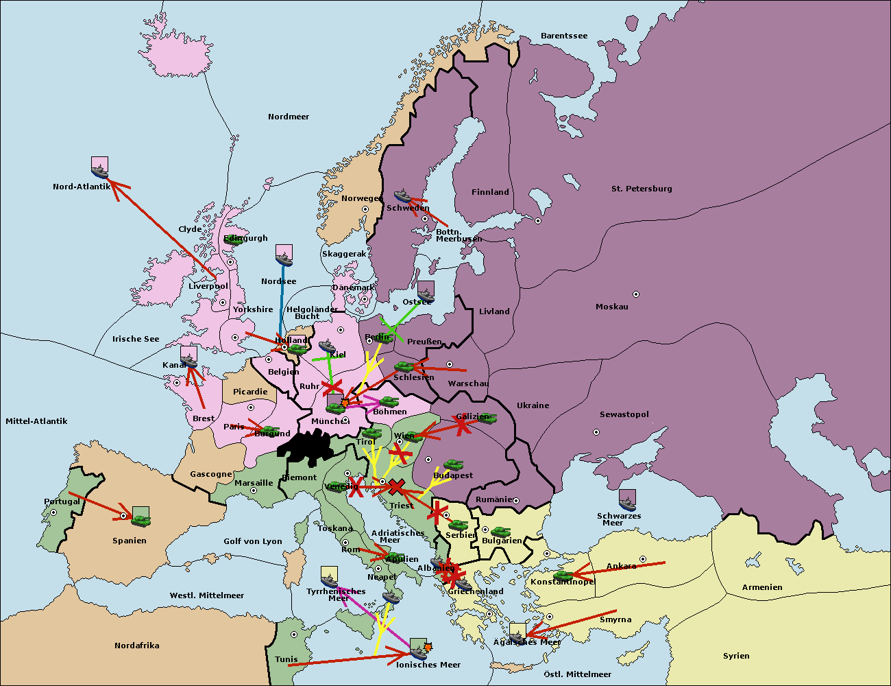 • Die Armee in Wien support move nach Triest von Venedig. (gescheitert)