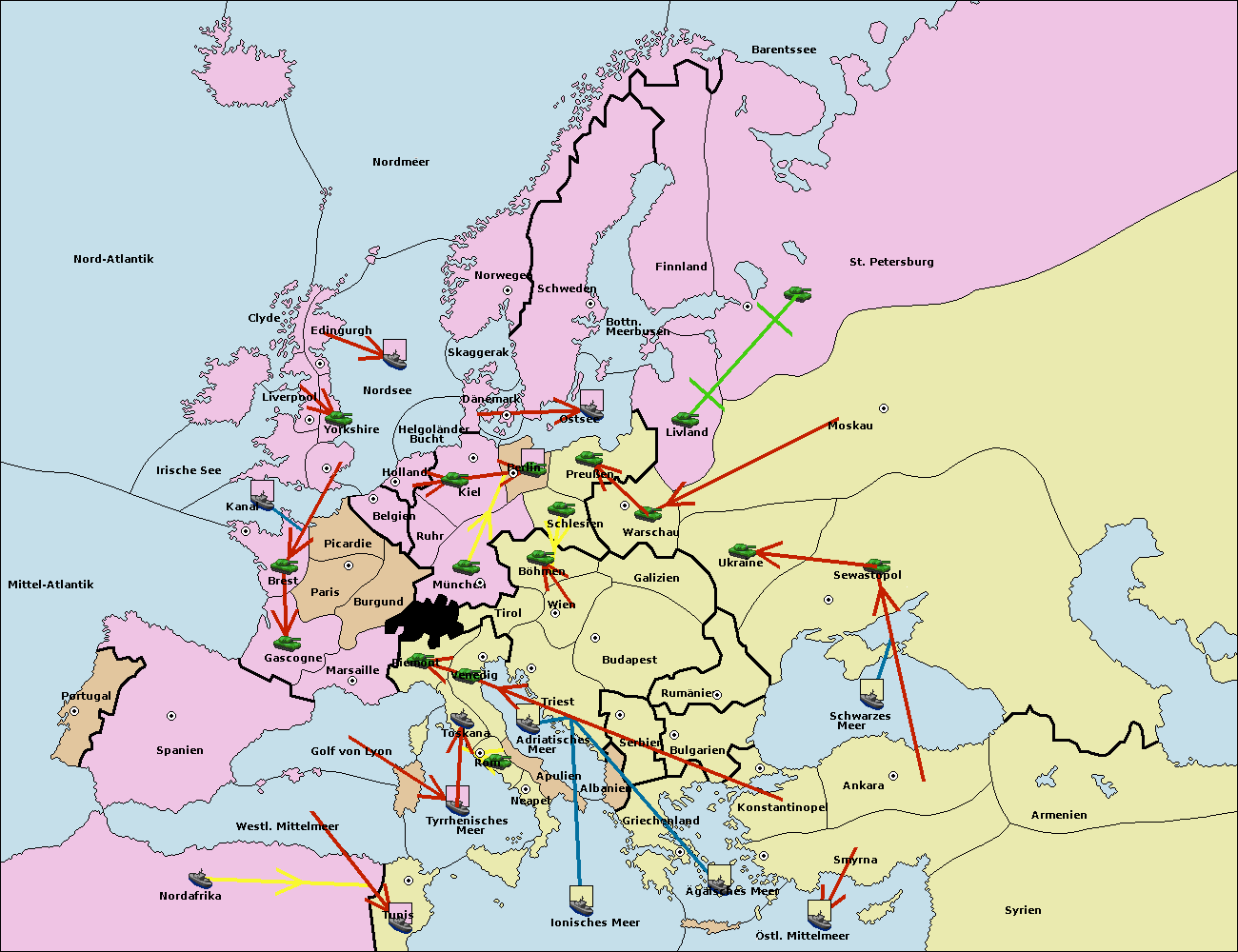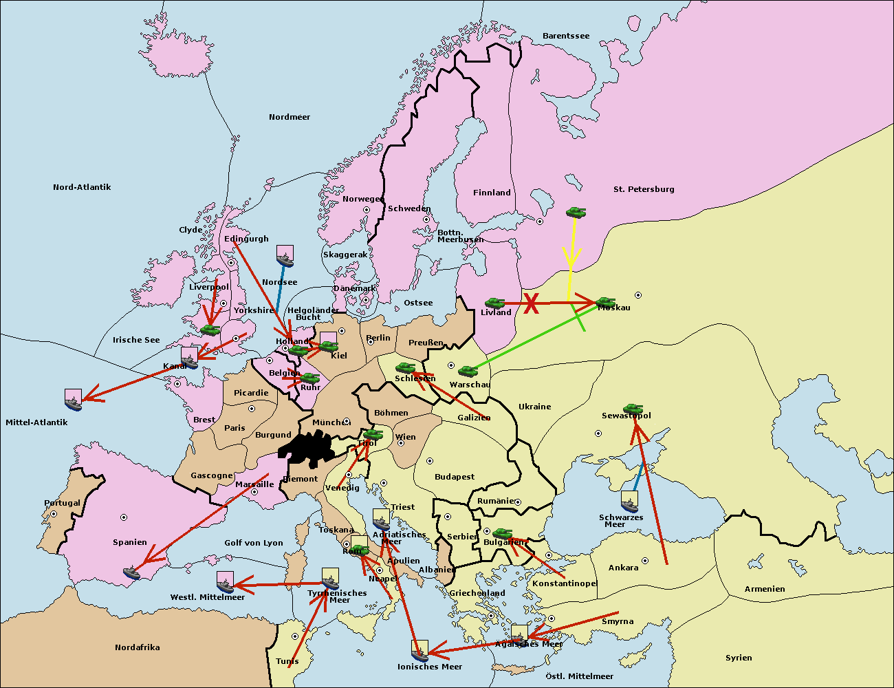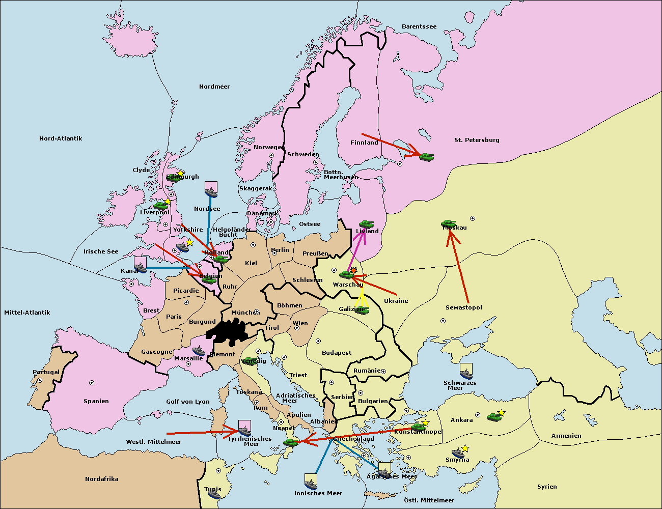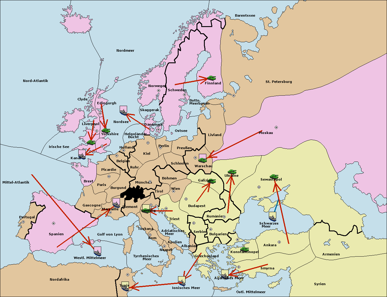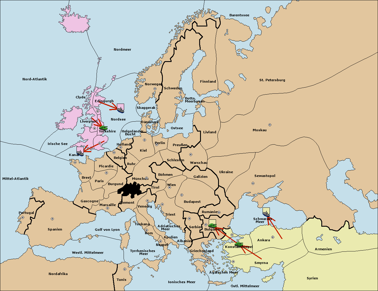 • Die Flotte in Bulgarien (Südküste) move nach Griechenland.