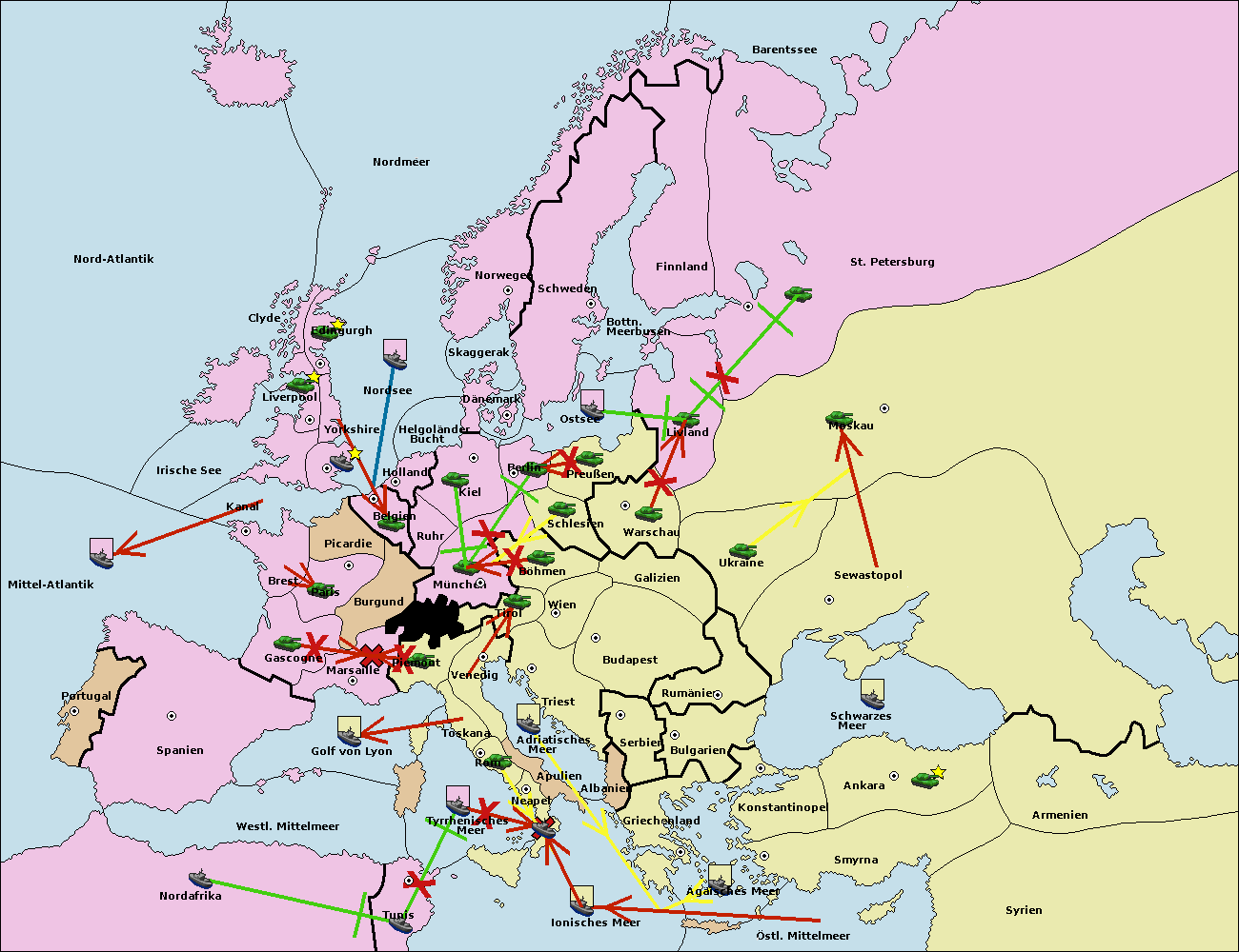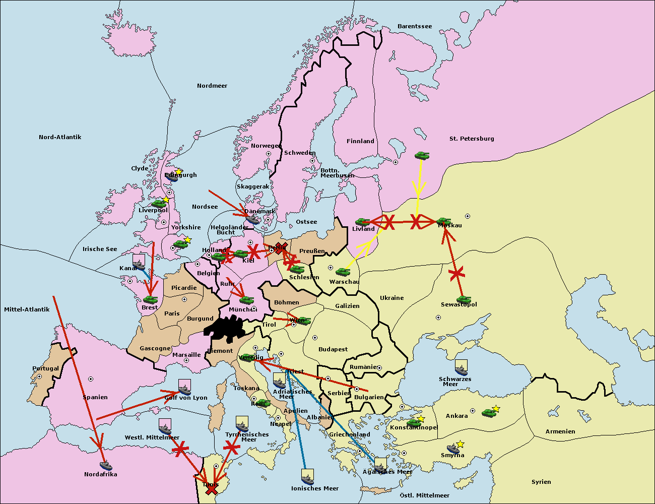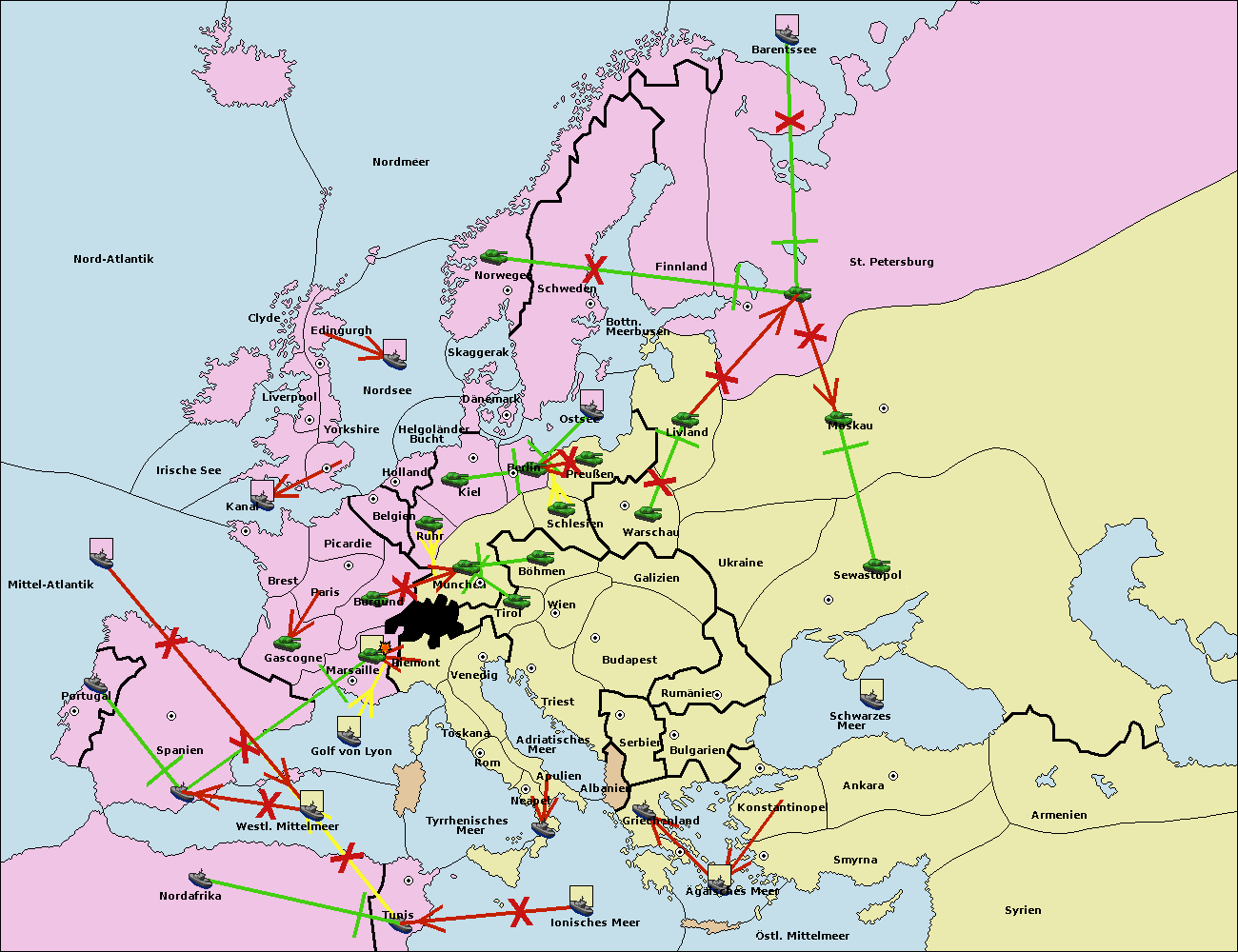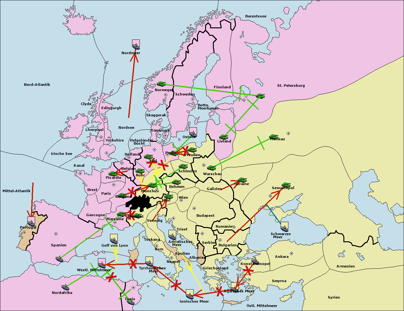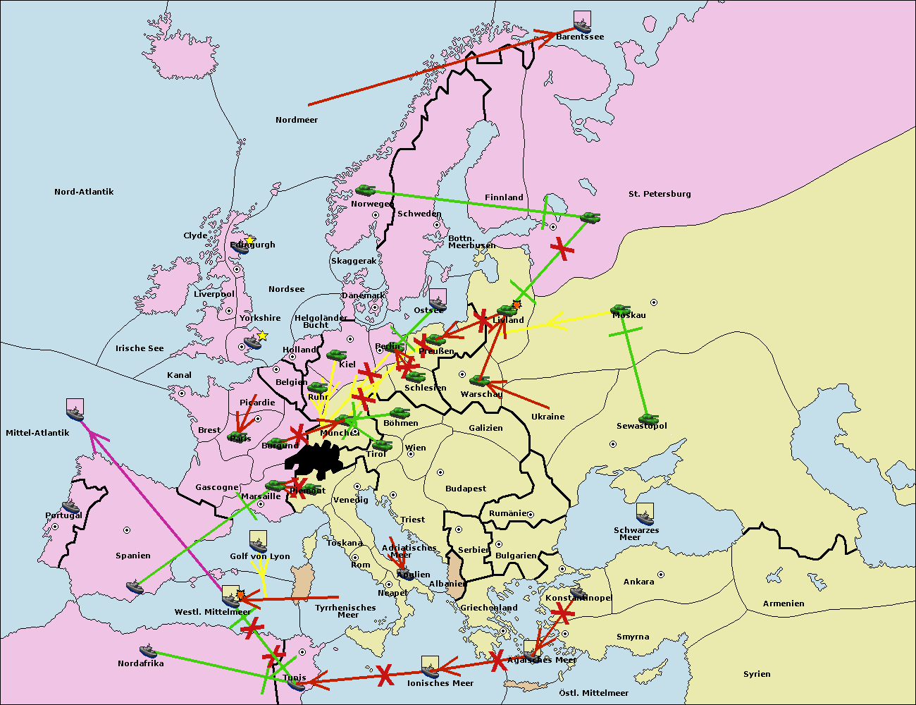 • Die Flotte in Bulgarien (Südküste) move nach Griechenland.