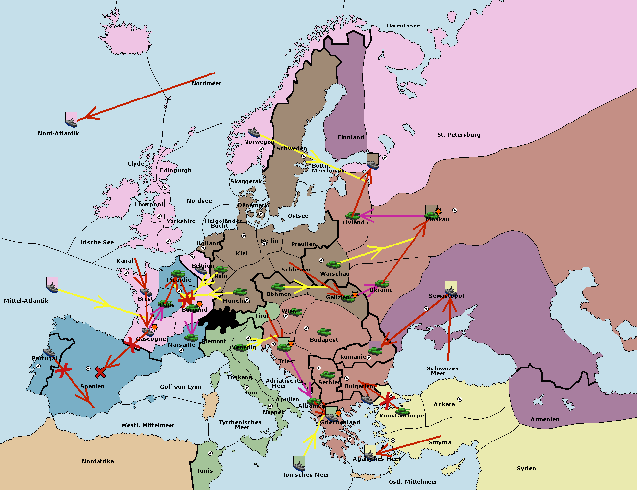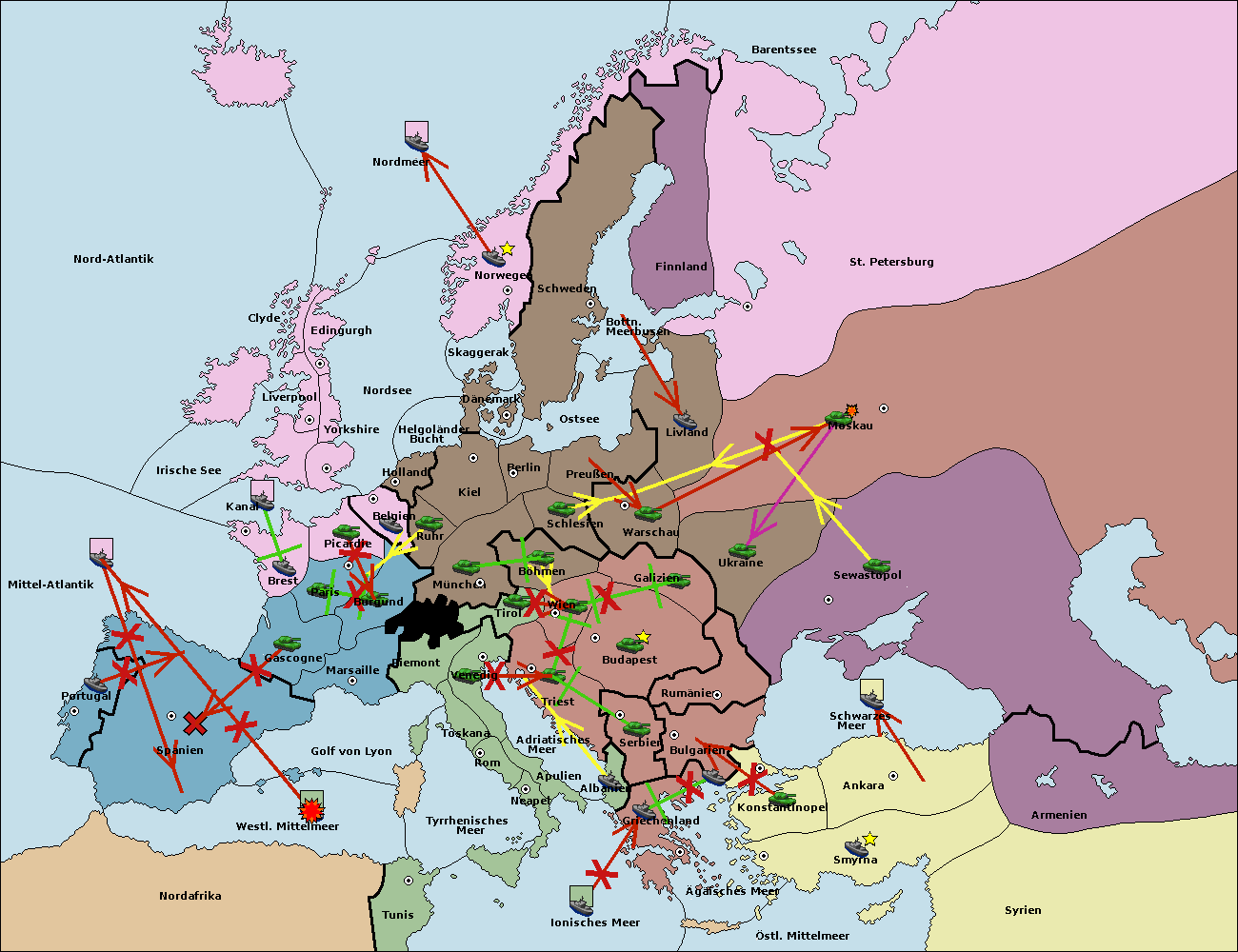 • Die Flotte in Spanien (Südküste) move nach westl. Mittelmeer.