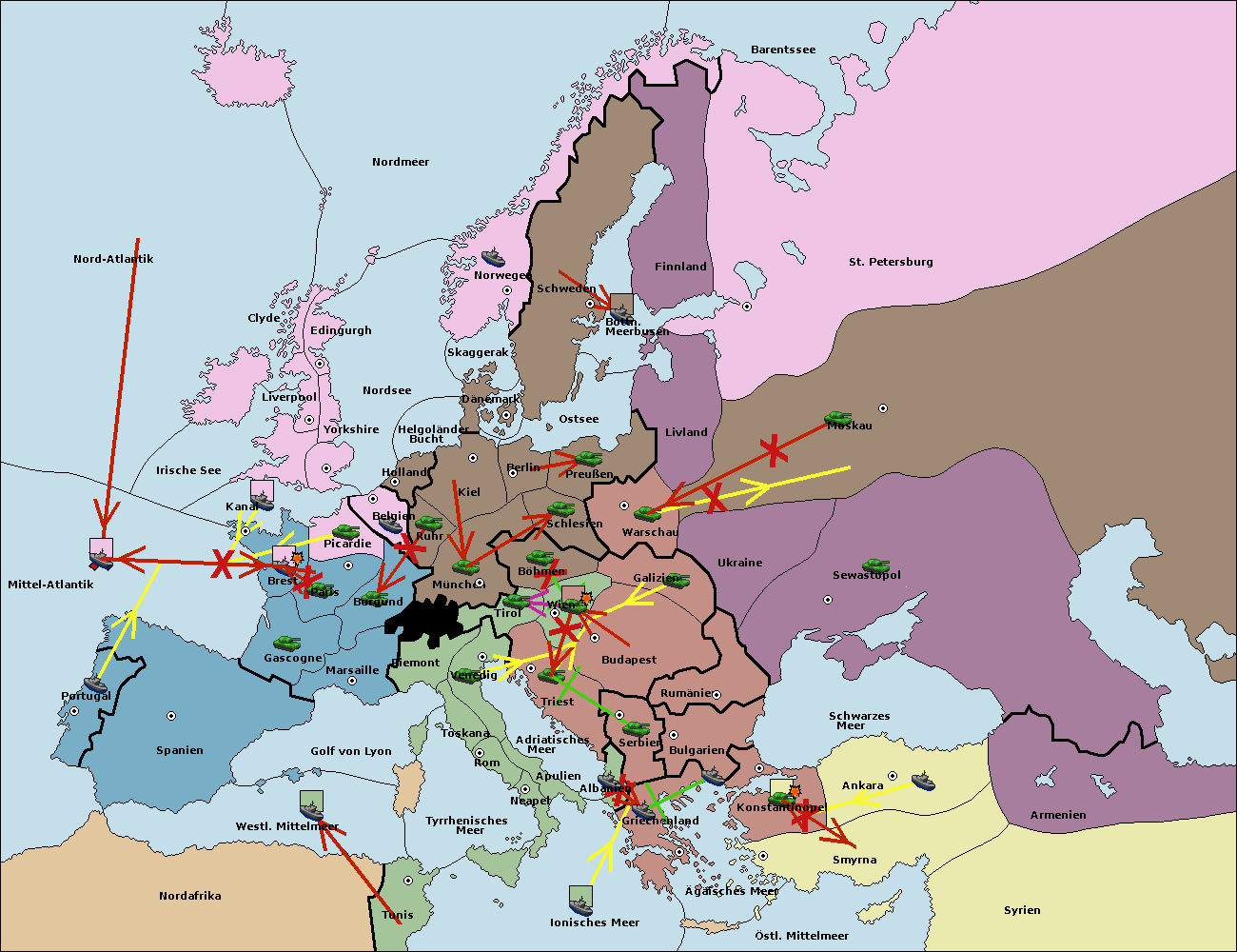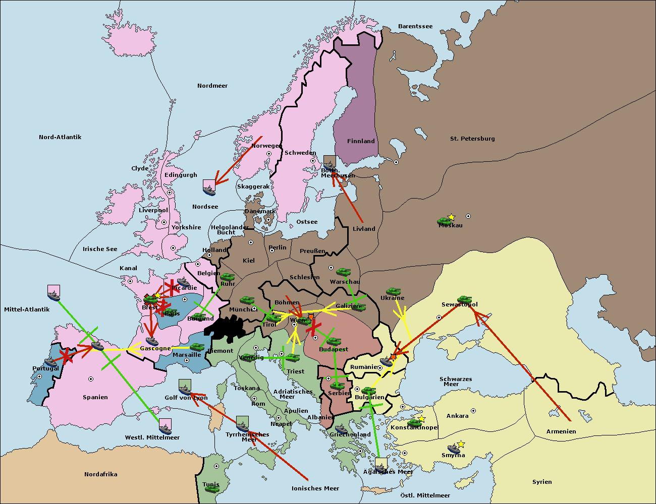 • Die Armee in Budapest support move nach Triest von Serbien.