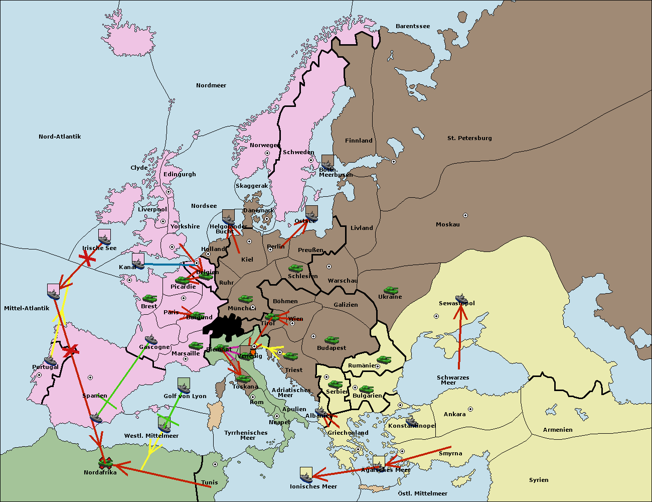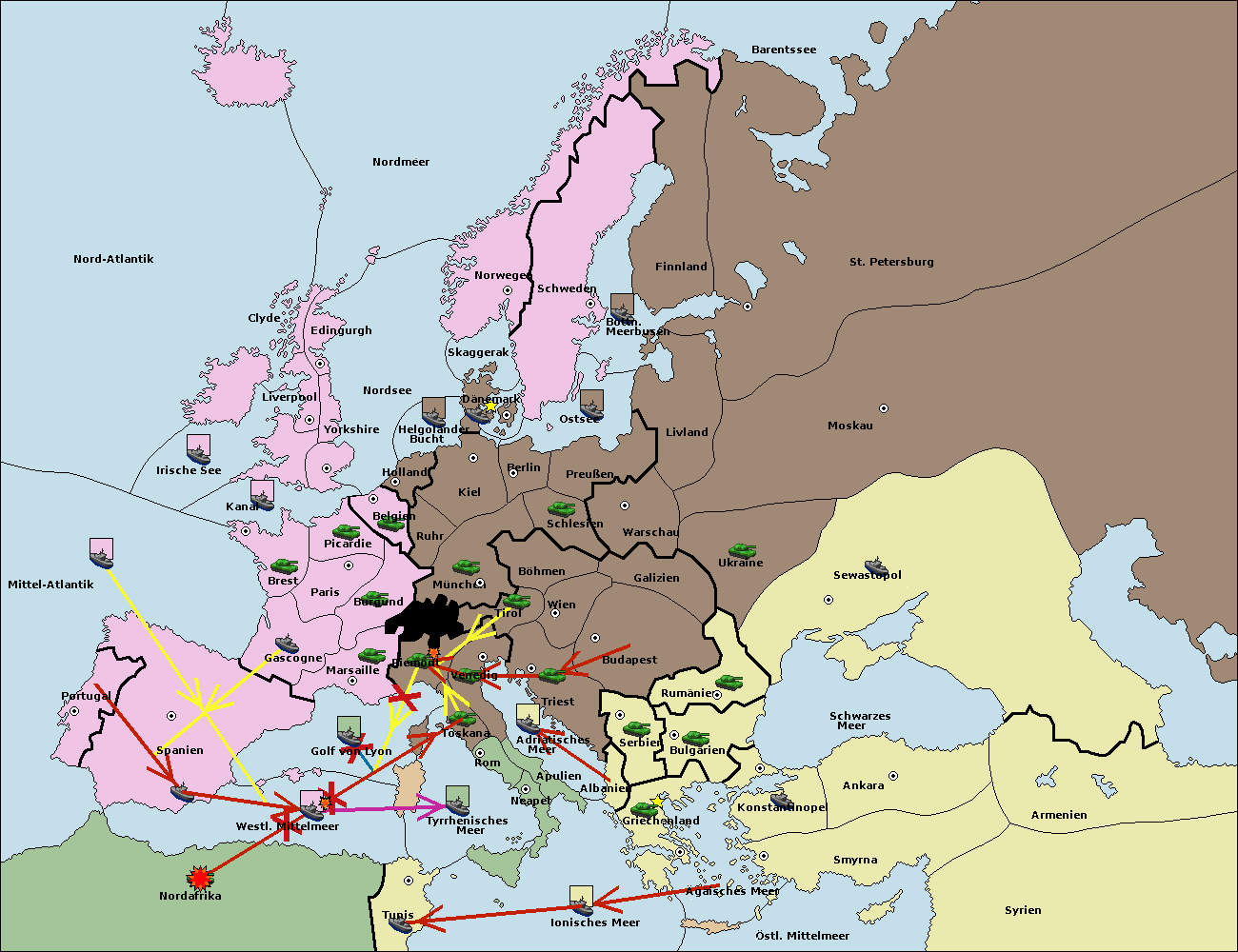 • Die Flotte in Tunis move nach Nord Afrika. (gescheitert)
