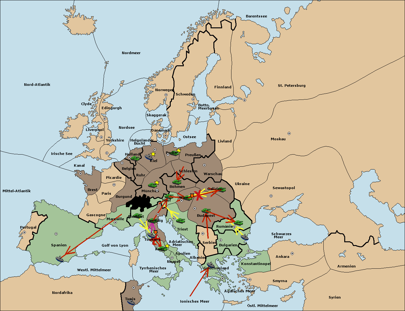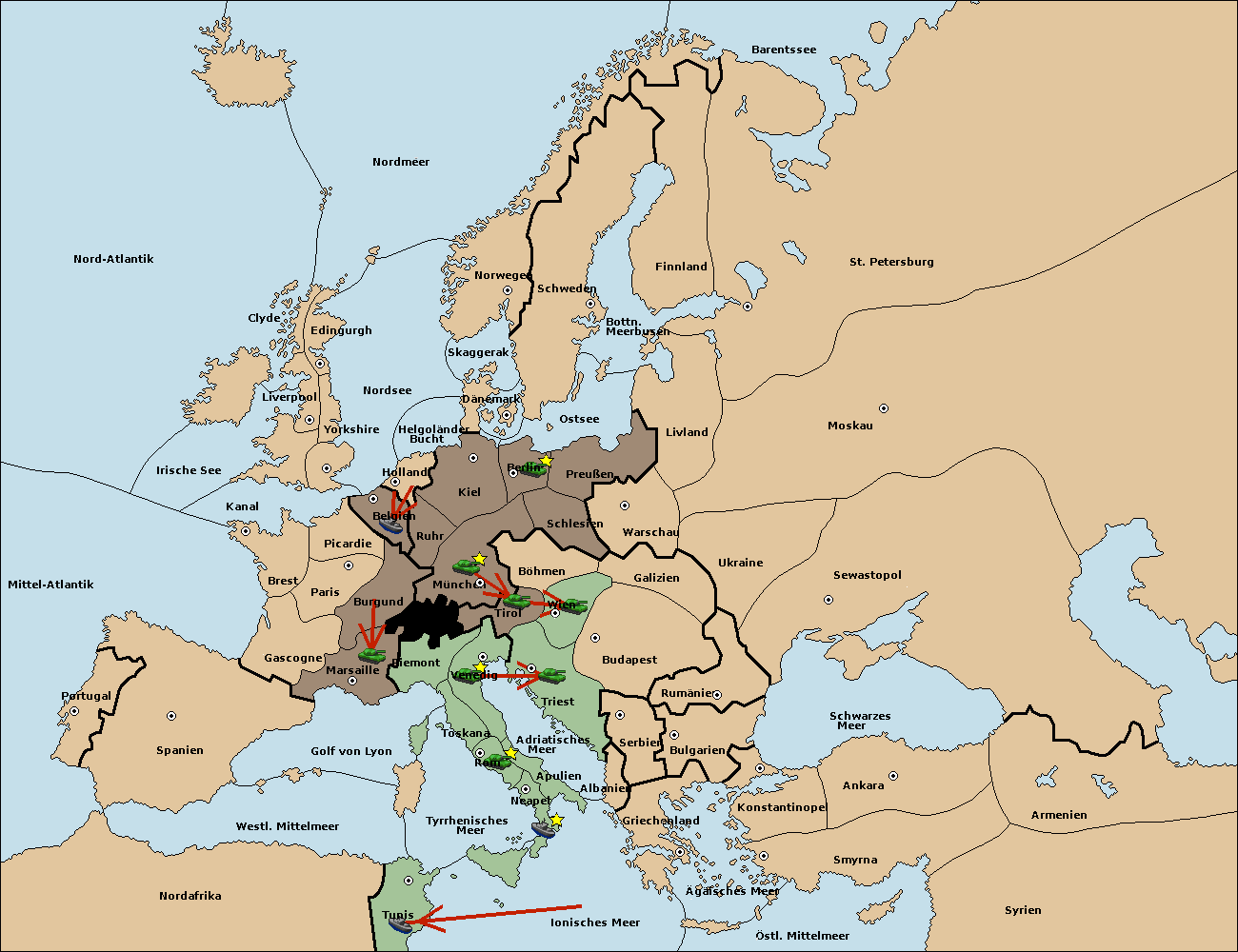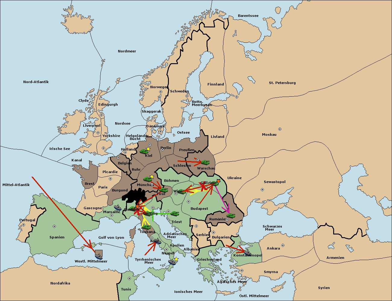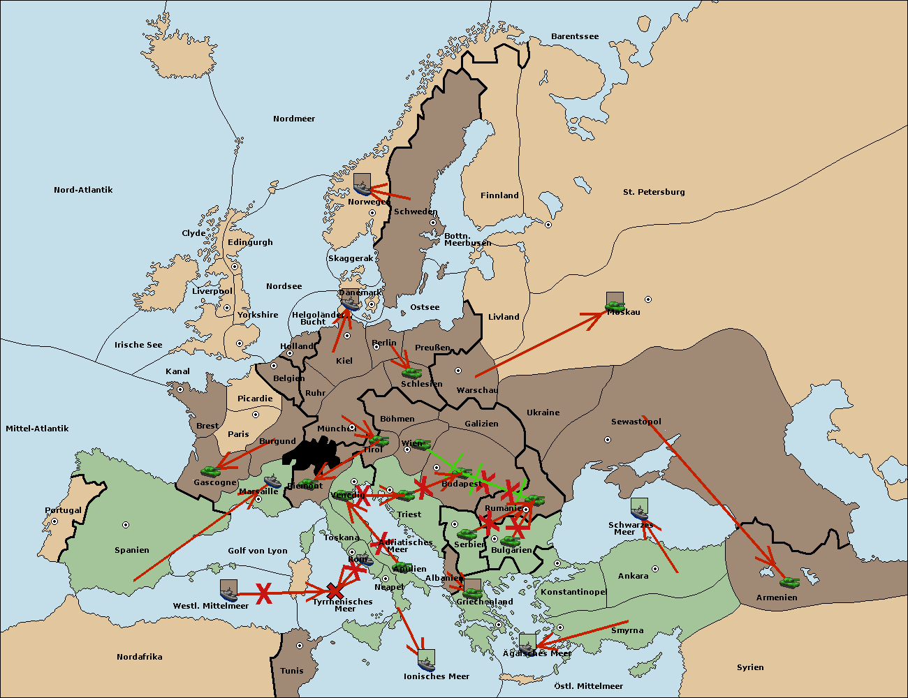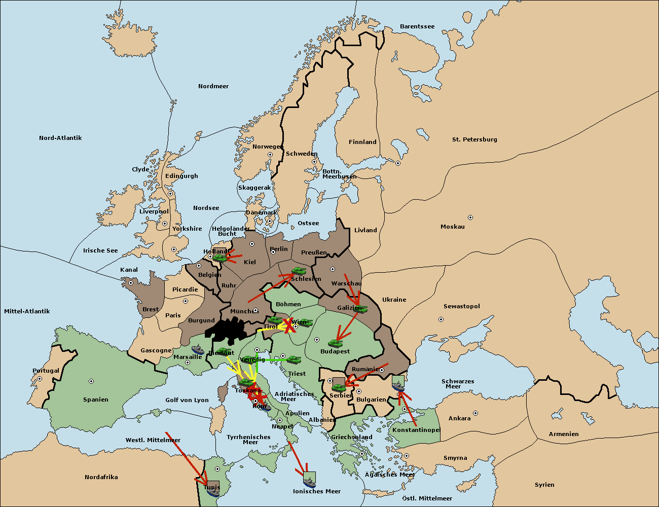 • Die Armee in Triest support move nach Tirol von München. (gescheitert) (verdrängt)