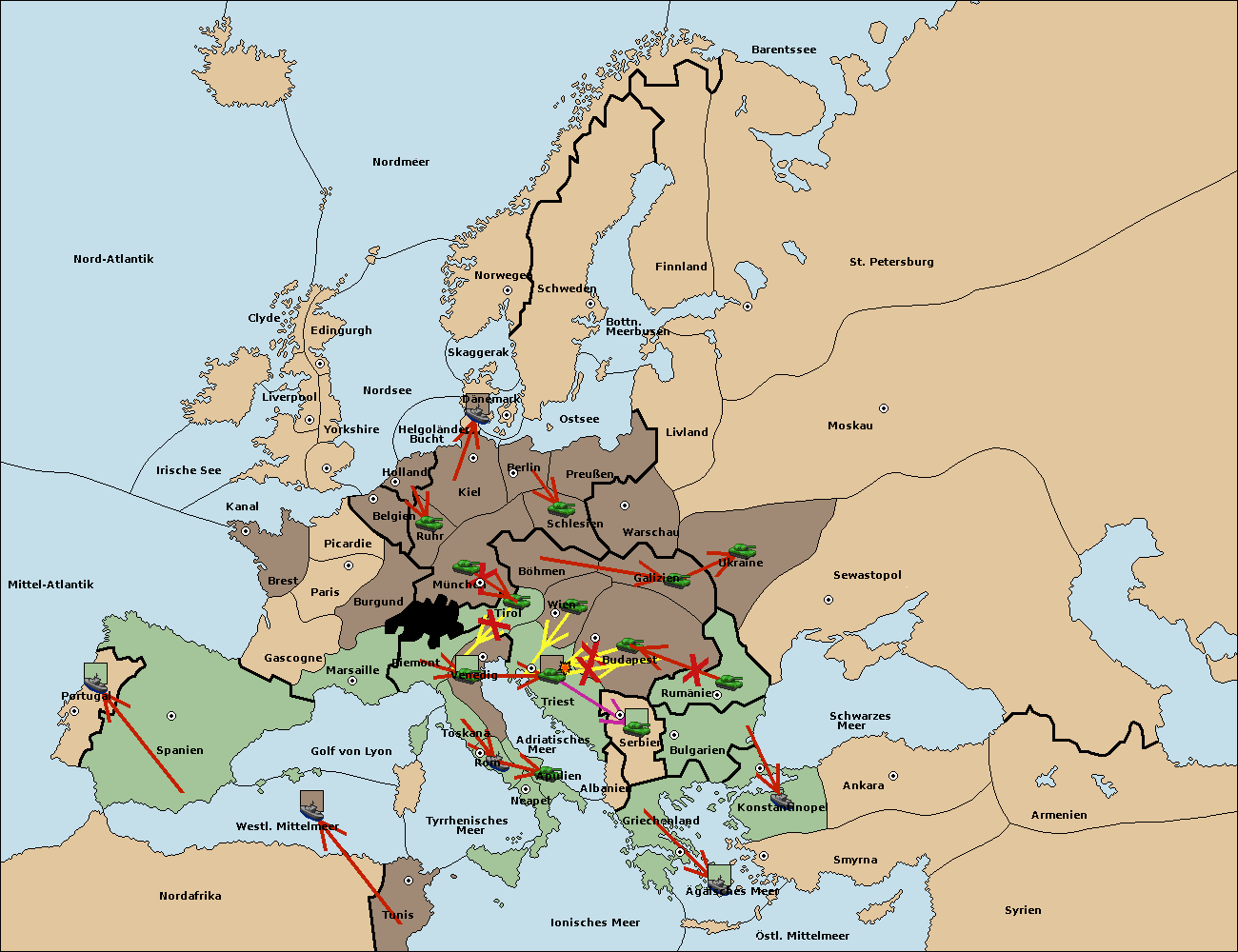 • Die Armee in Triest move nach Budapest. (gescheitert) (verdrängt)