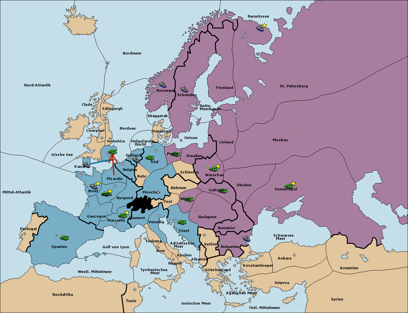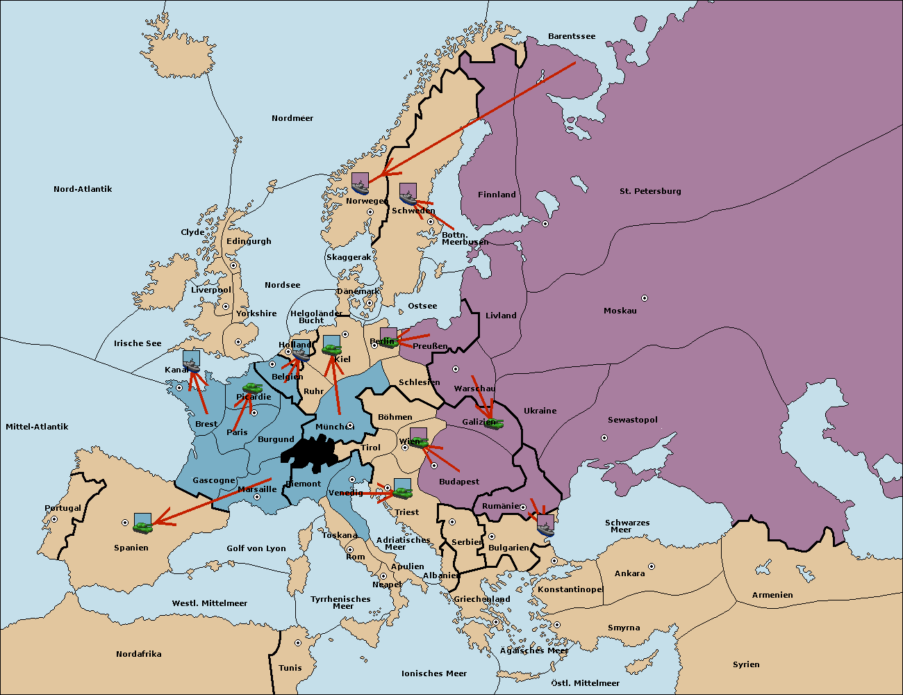 • Die Flotte in St. Petersburg (Nordküste) move nach Norwegen.