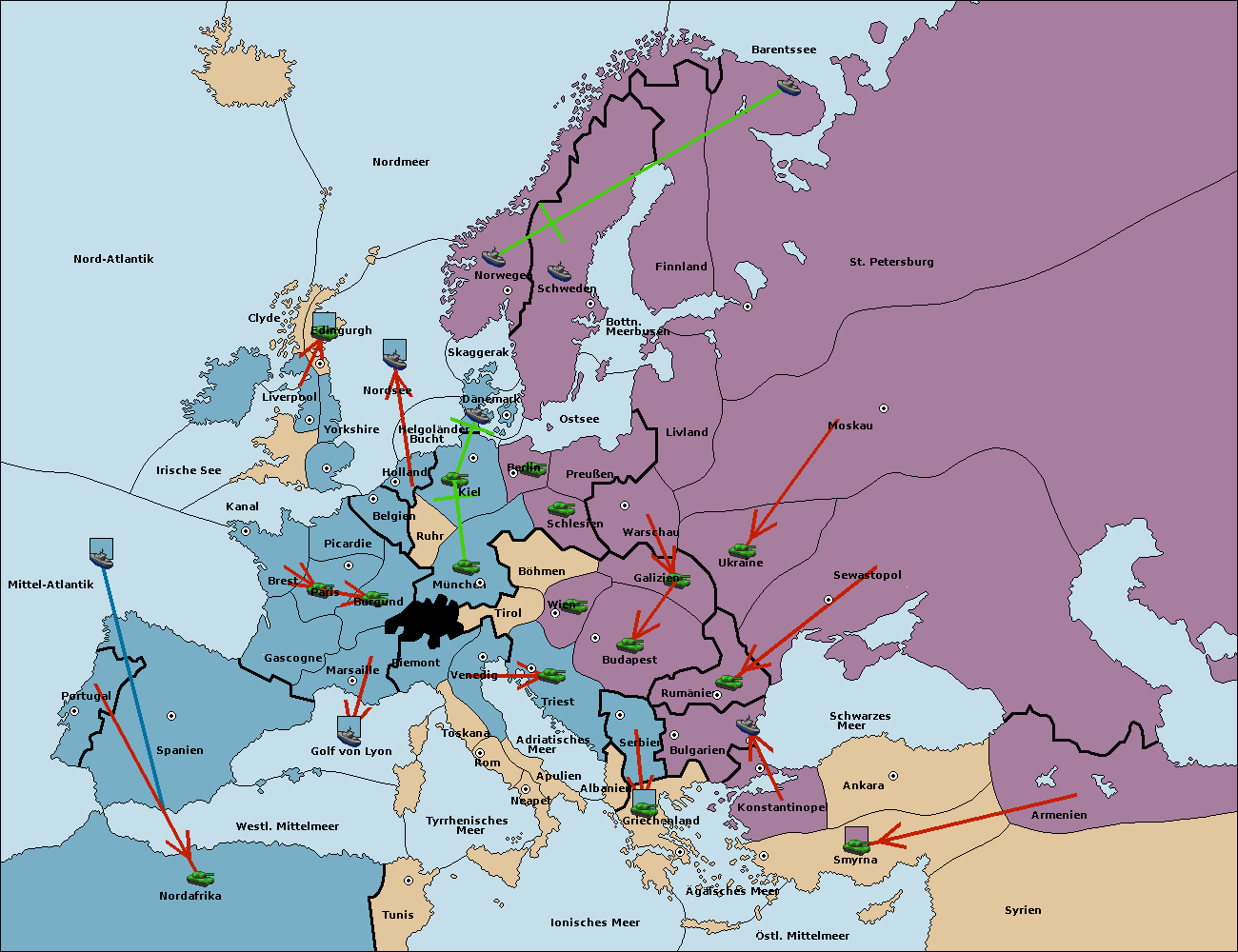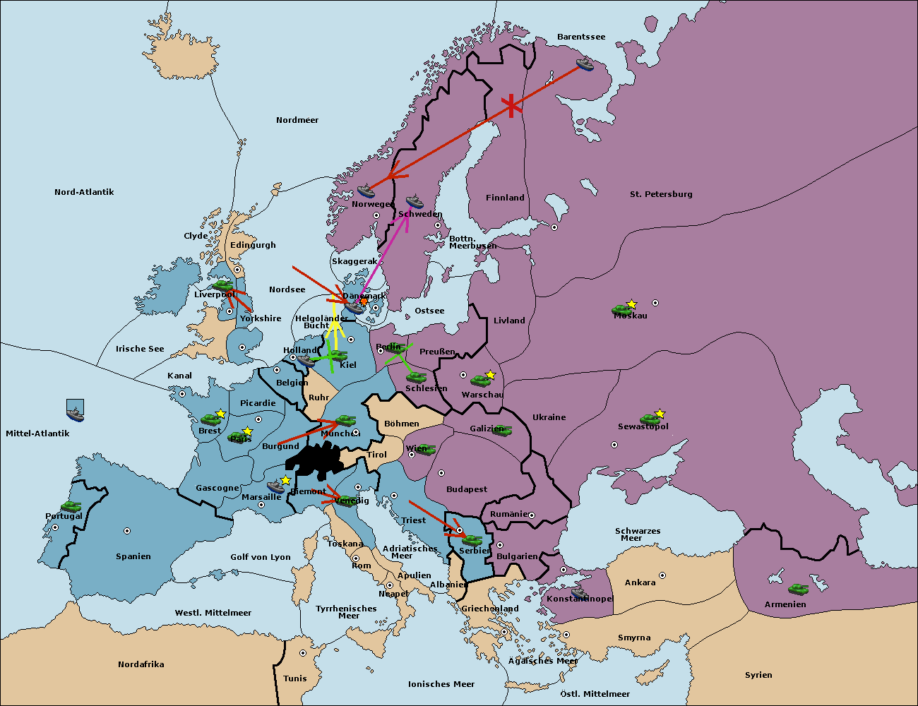 • Die Flotte in St. Petersburg (Nordküste) move nach Norwegen. (gescheitert)