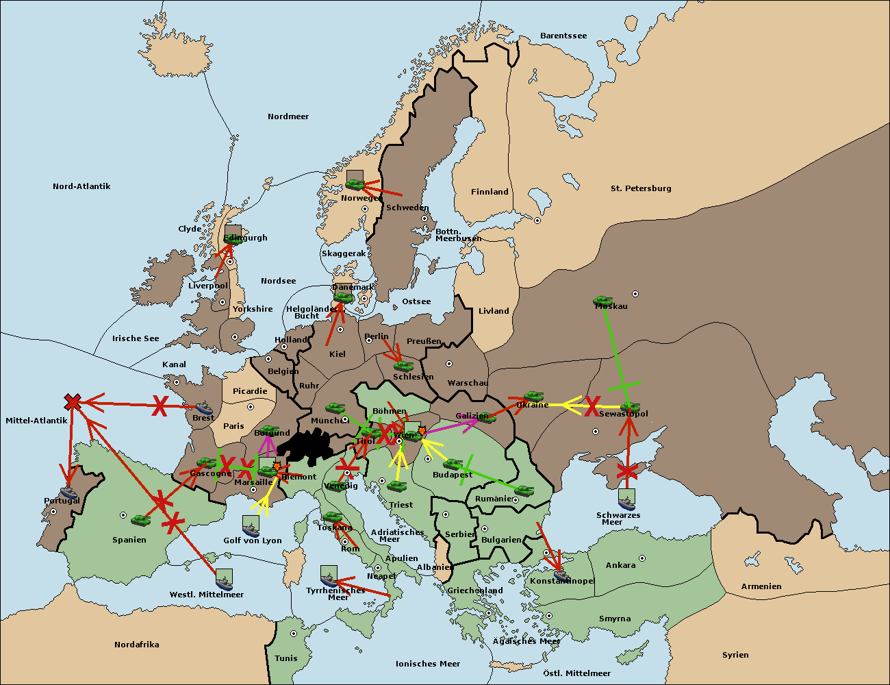 • Die Armee in Sewastopol support move nach Ukraine von Galizien. (gescheitert)