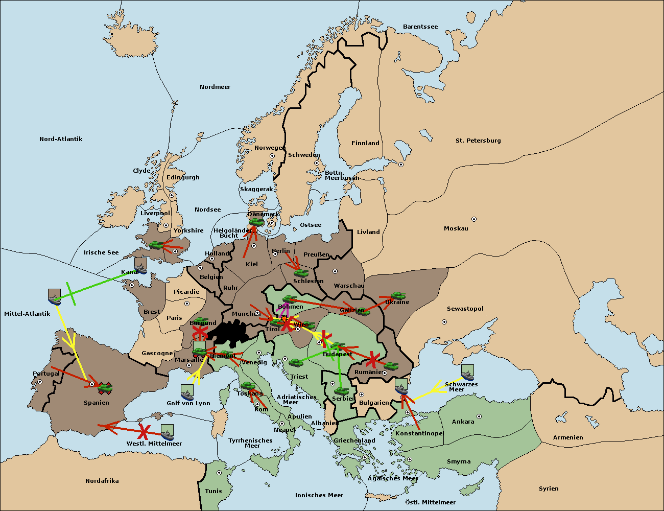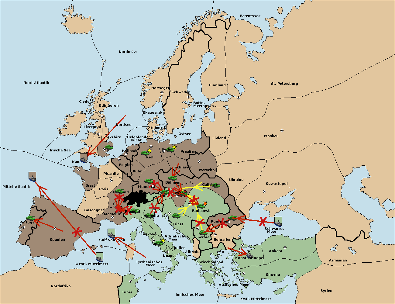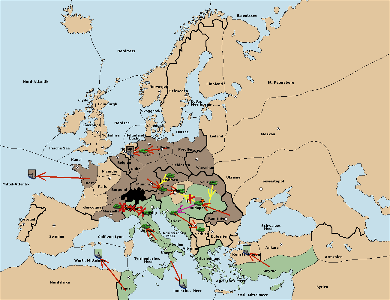 • Die Armee in Budapest support move nach Wien von Tirol. (gescheitert)