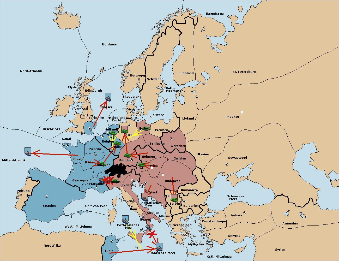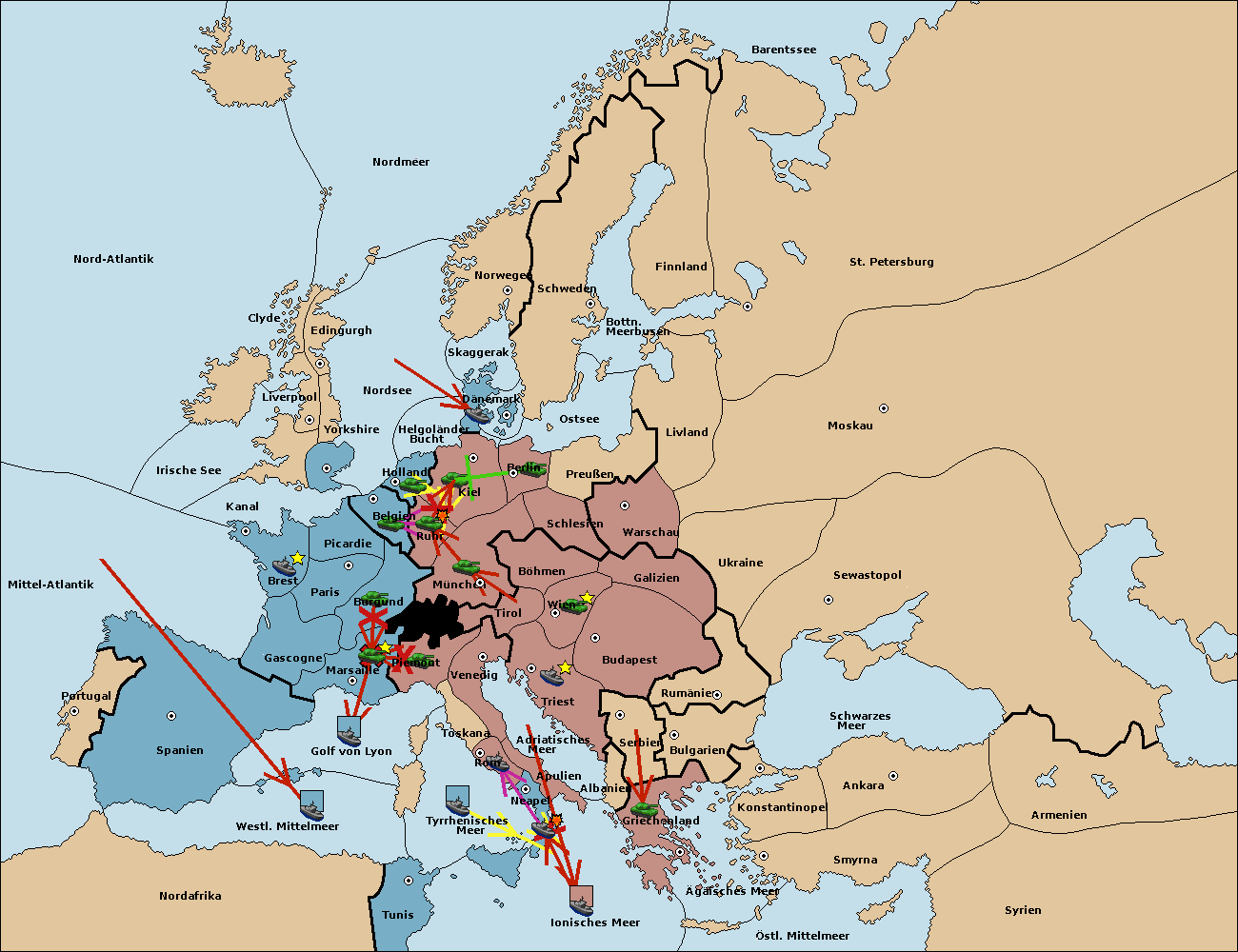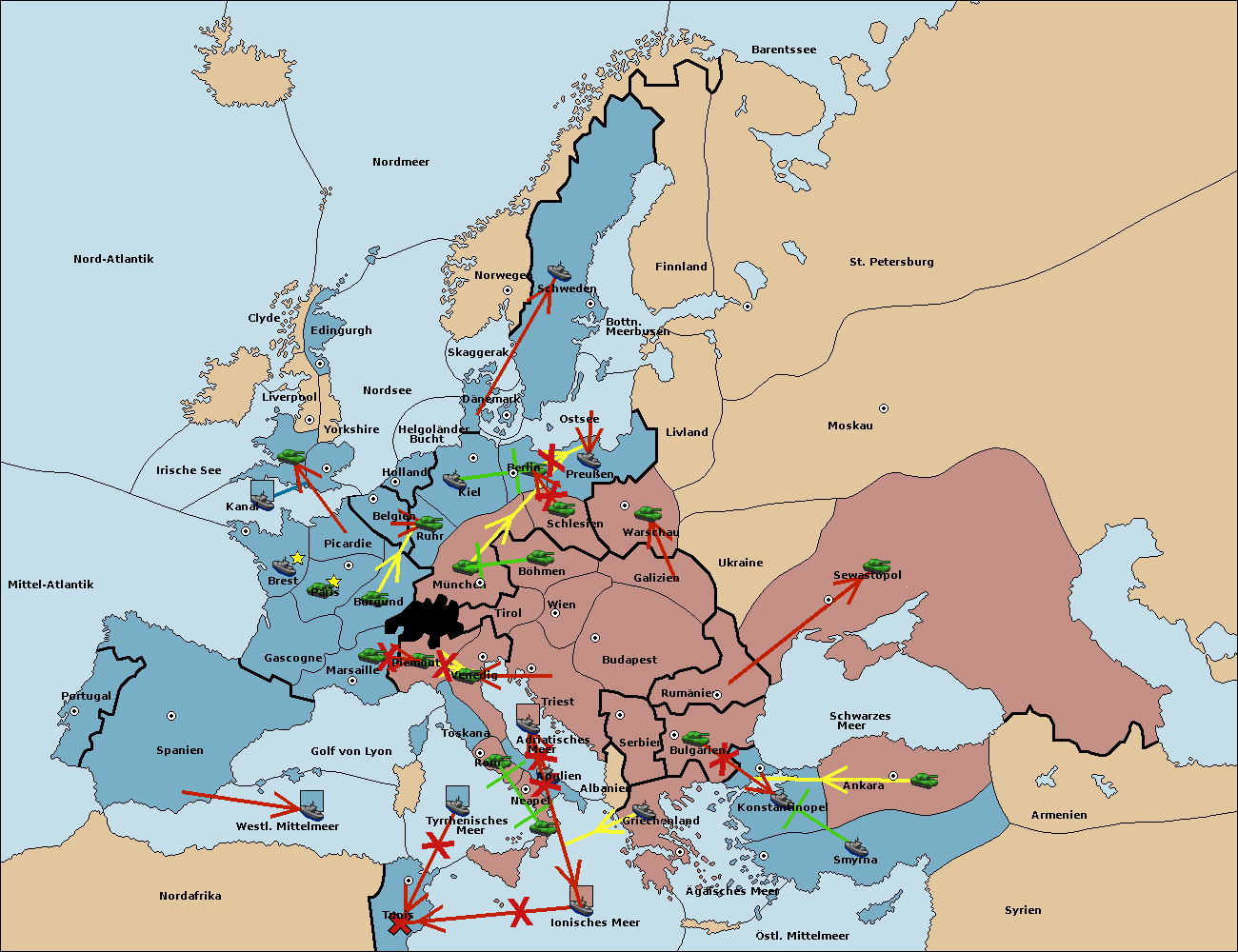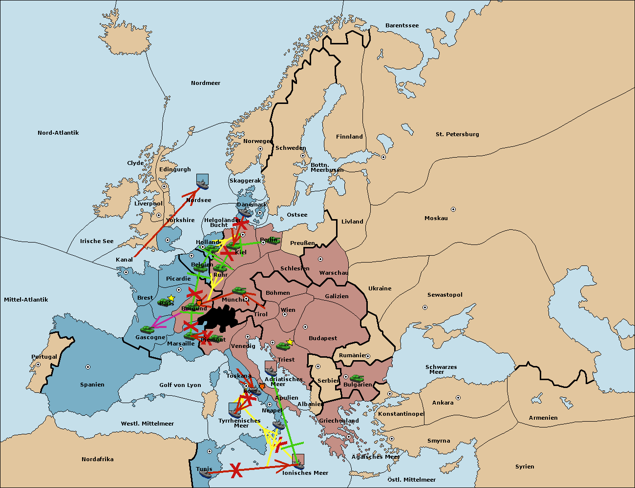 • Die Armee in München wird zerstörtFlotte in München gebaut.