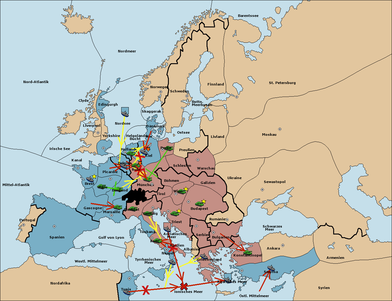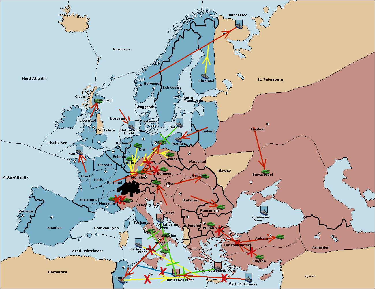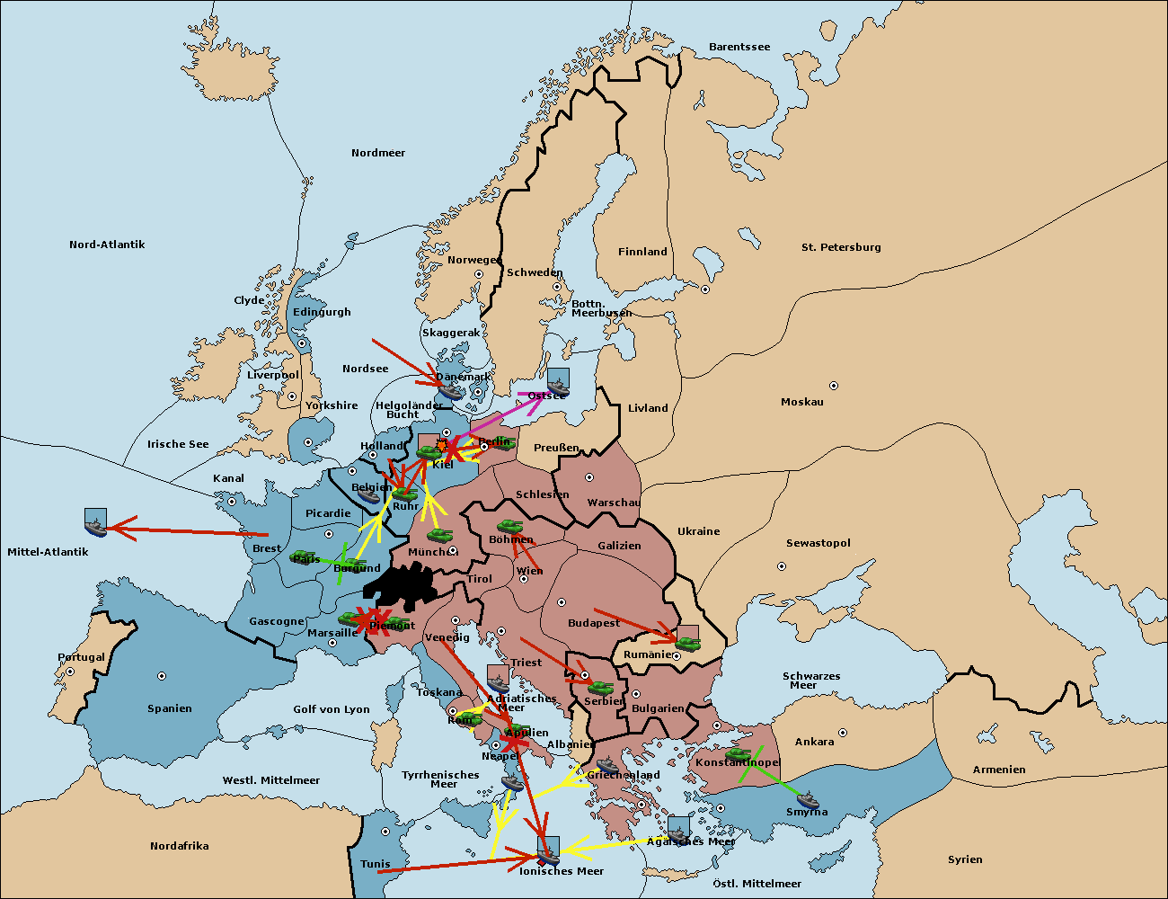 • Die Armee in München wird zerstörtFlotte in München gebaut.