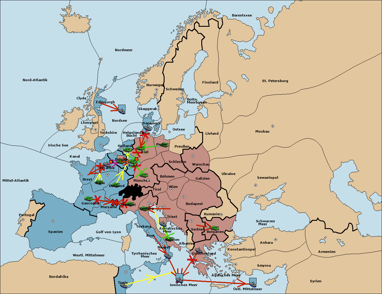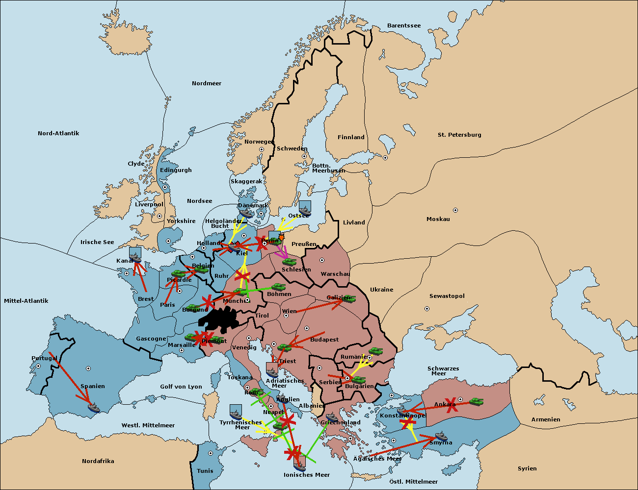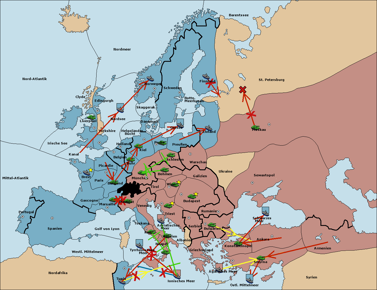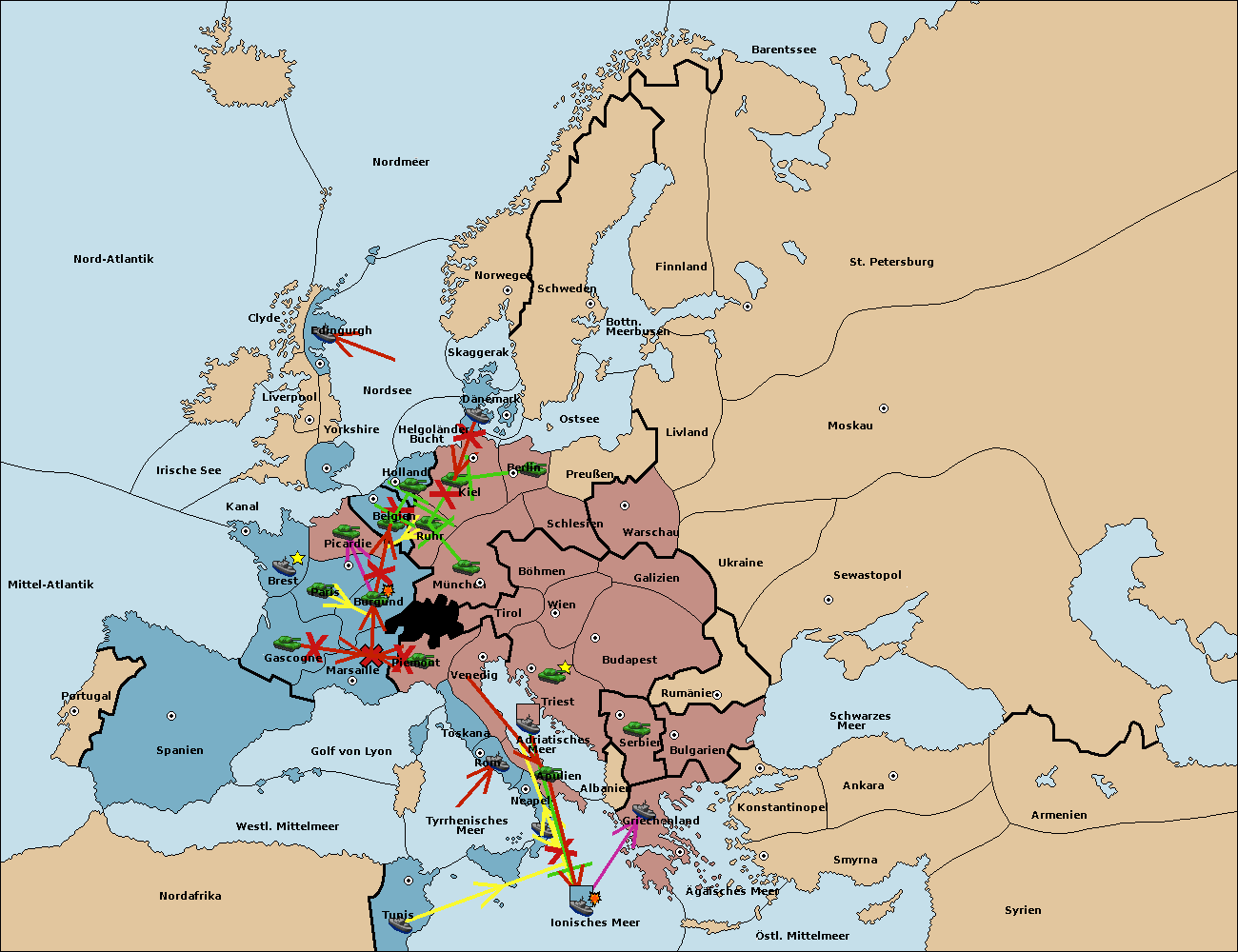 • Die Armee in München wird zerstörtFlotte in München gebaut.